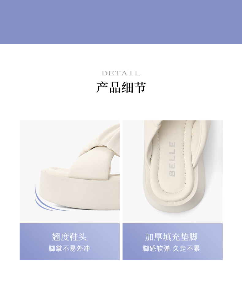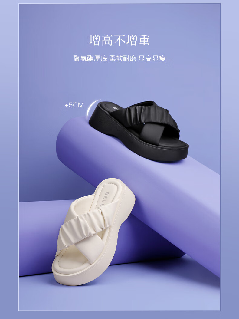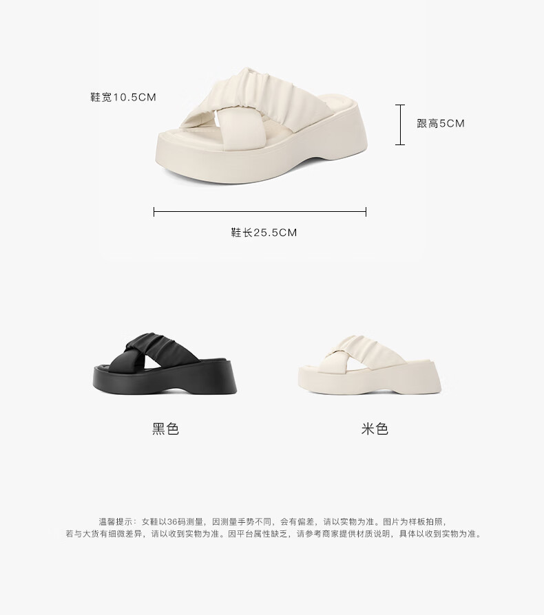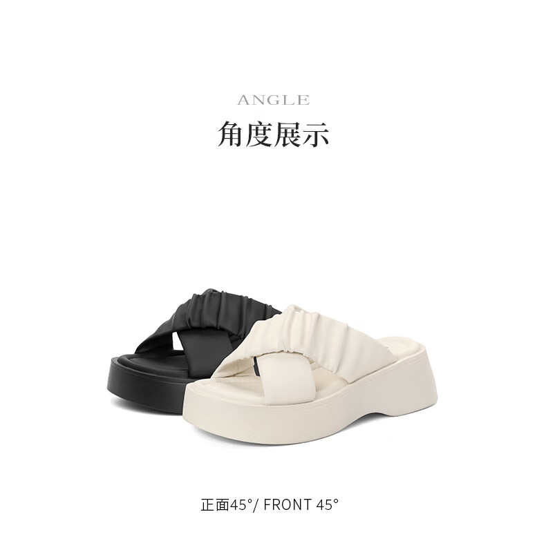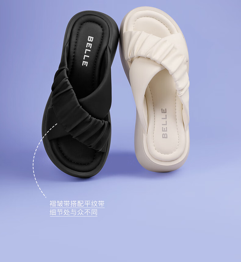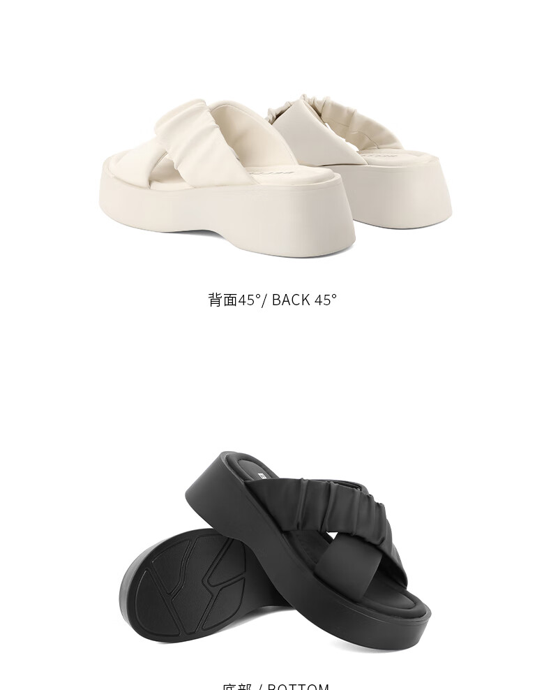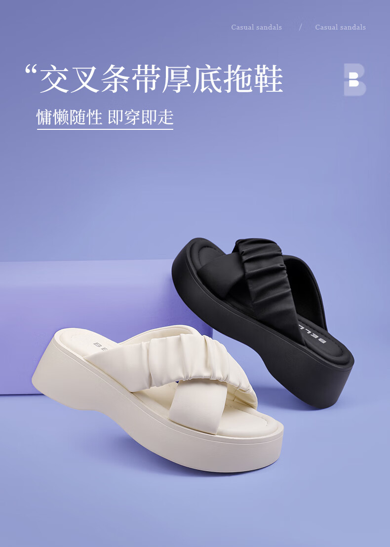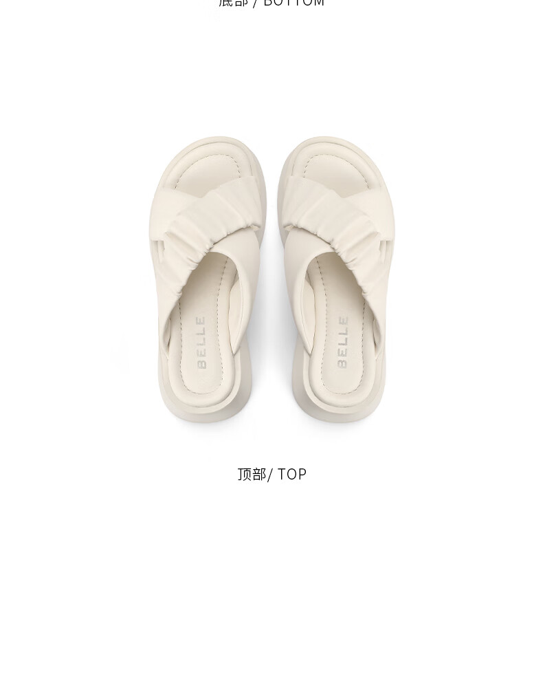 百丽交叉鞋面拖鞋女2023夏季新款厚底一脚蹬拖鞋B1292BT3 米色(建议拍大一码) 39
