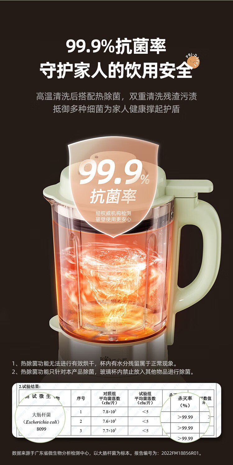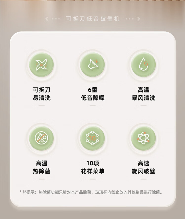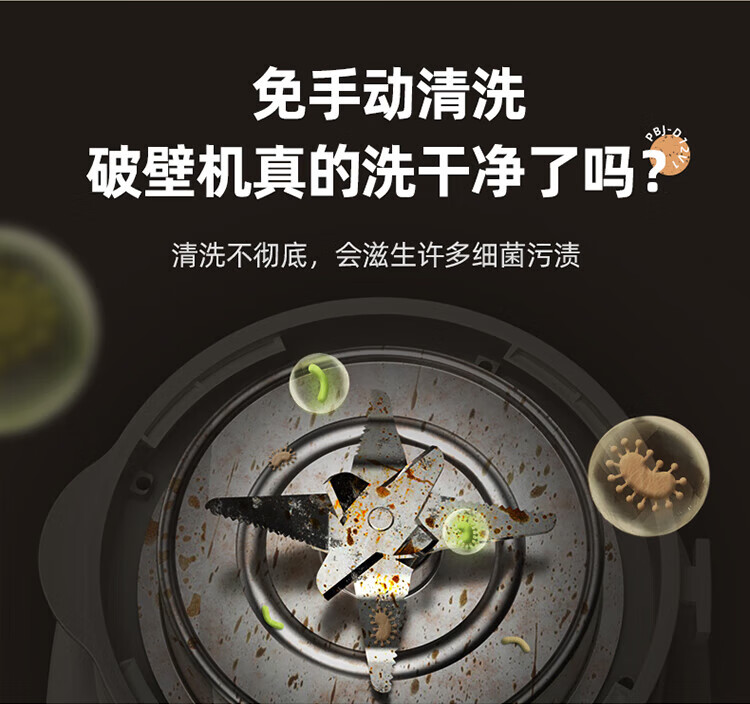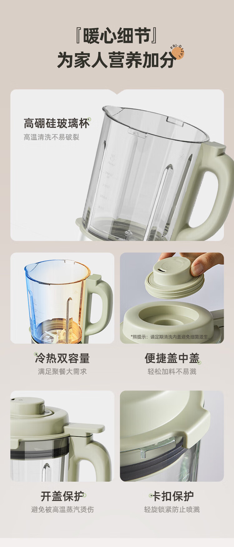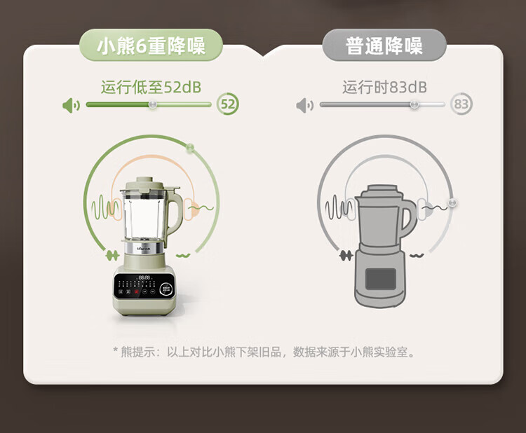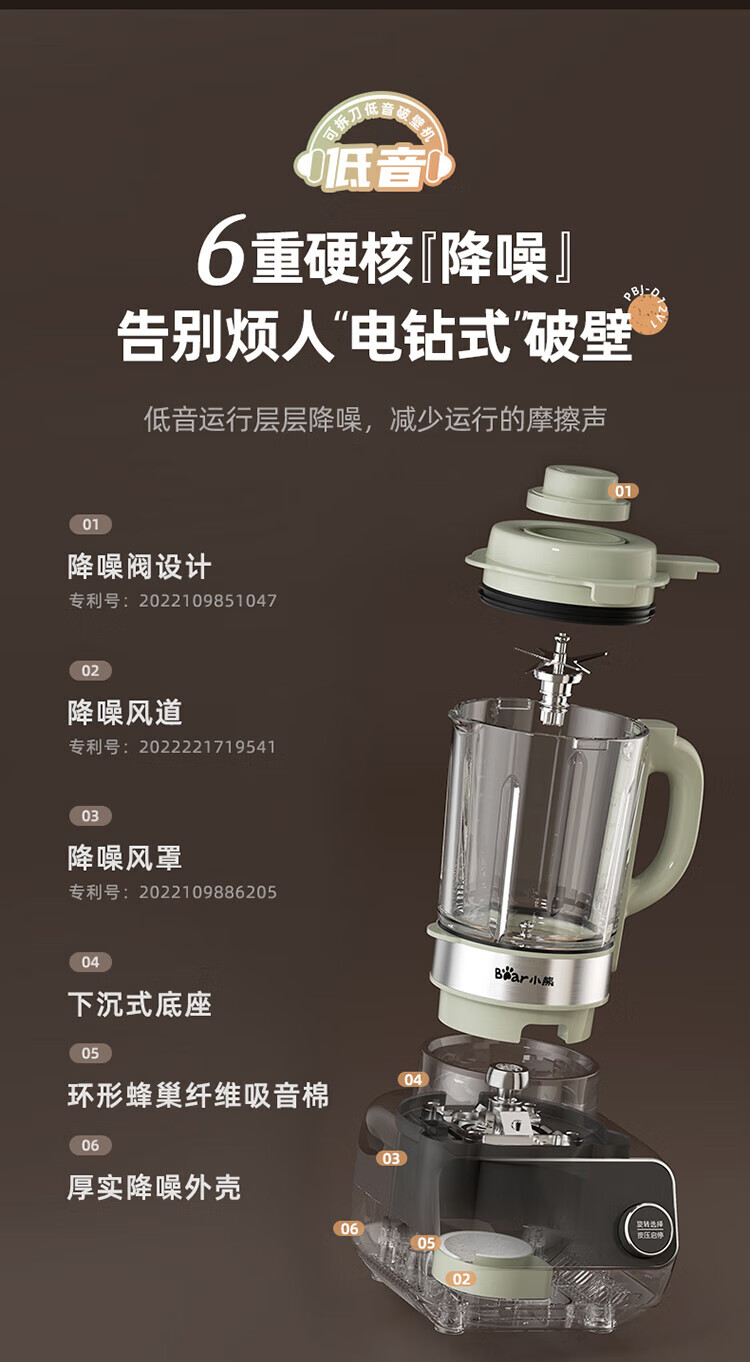 小熊(Bear)低音破壁机 可拆刀洗 家用多功能小型豆浆机 热除菌清洗 碎冰降噪智能预约 52分贝 PBJ-D12V1 可拆刀款