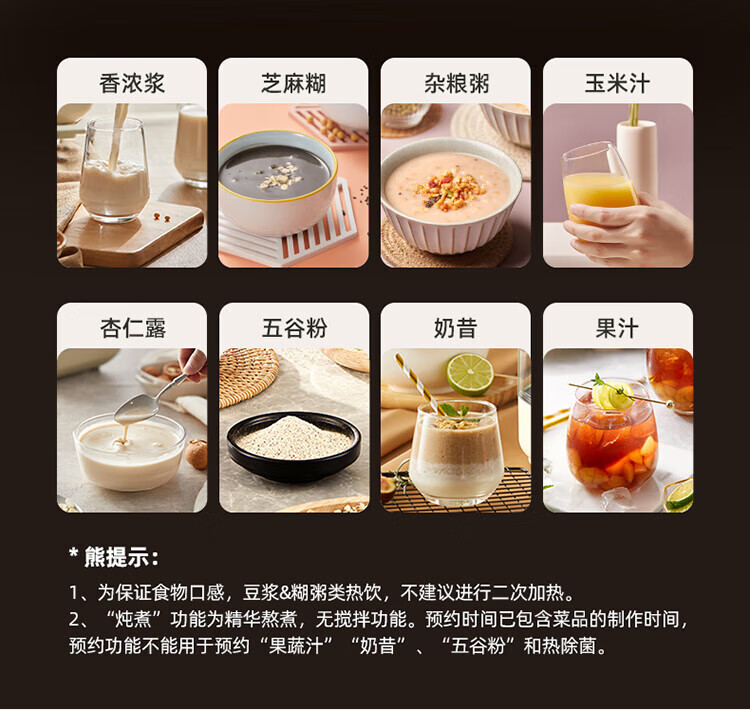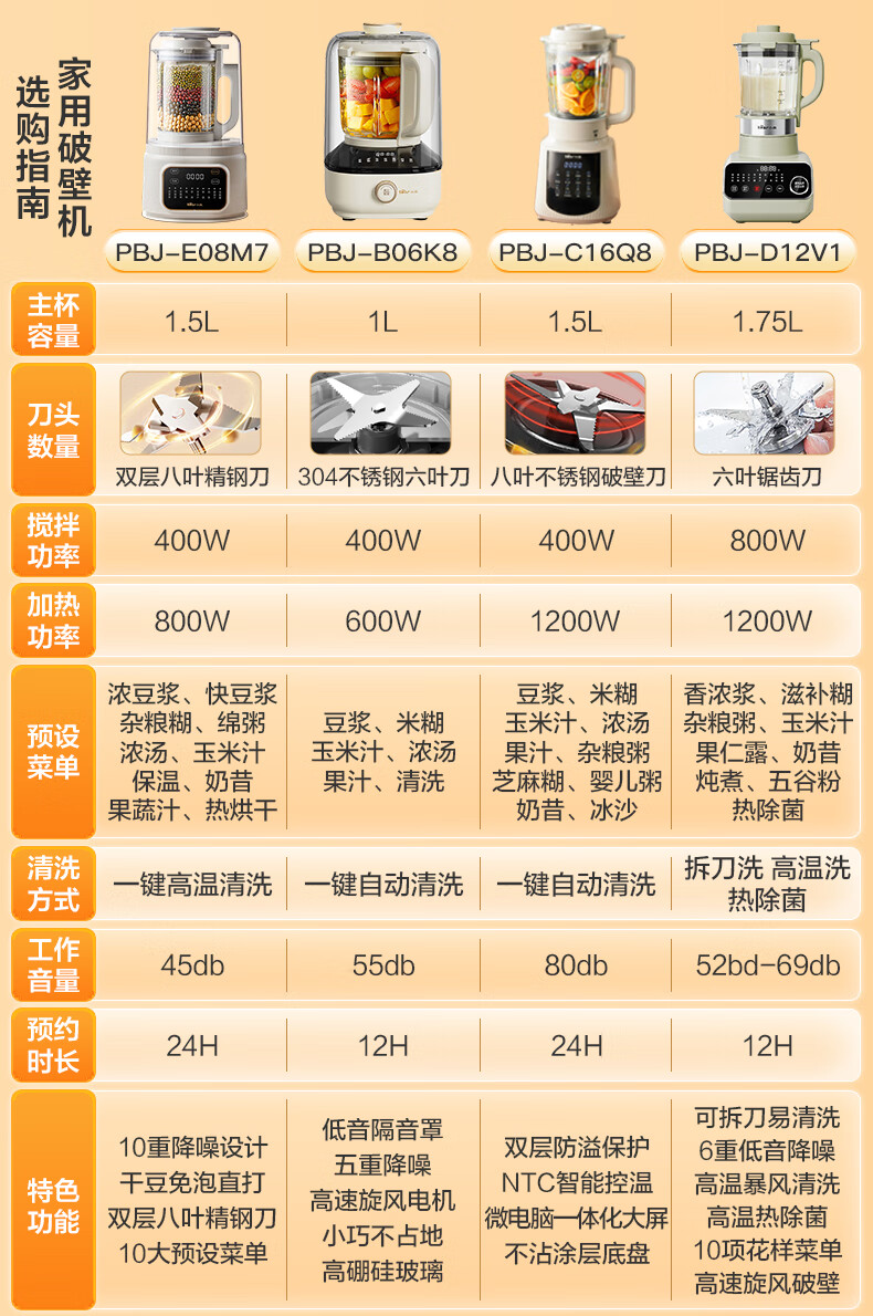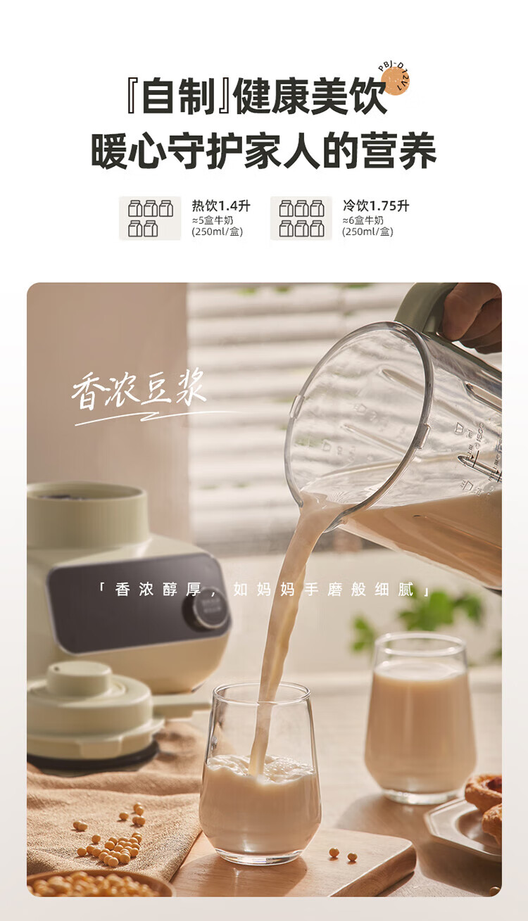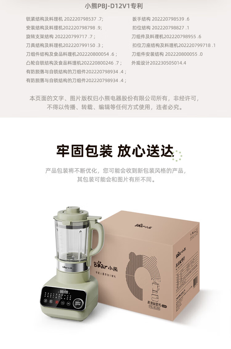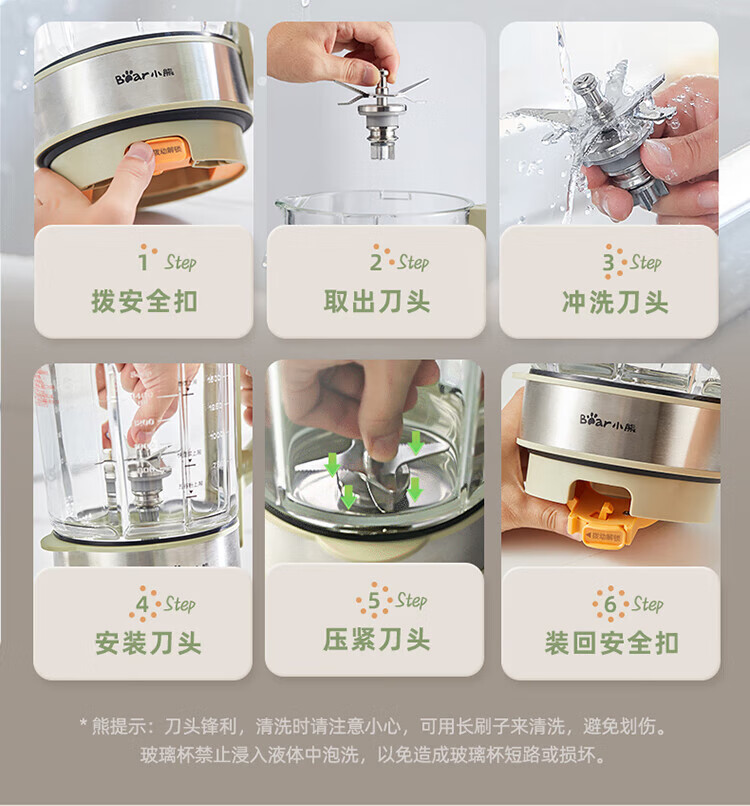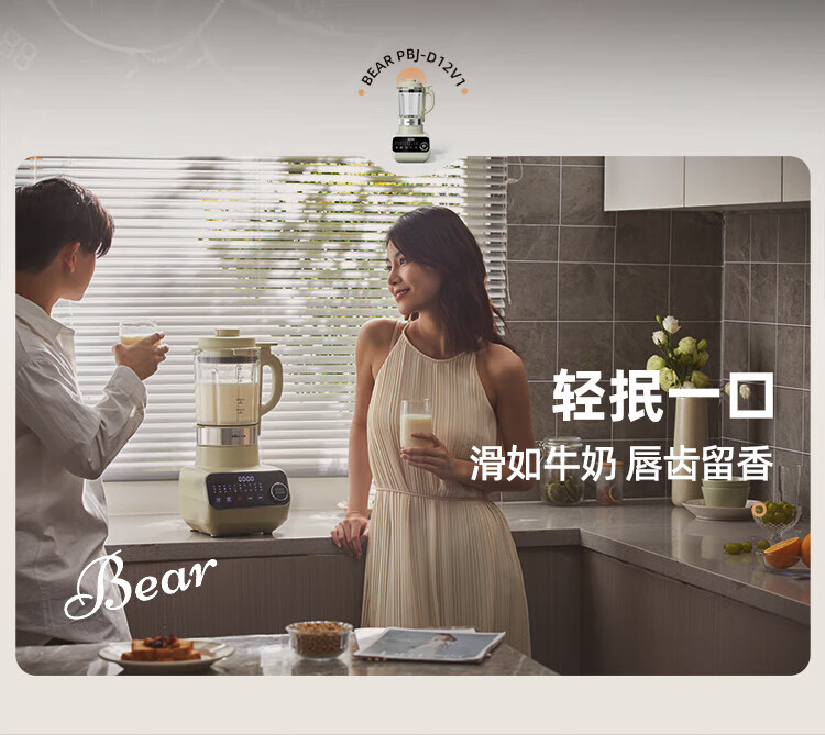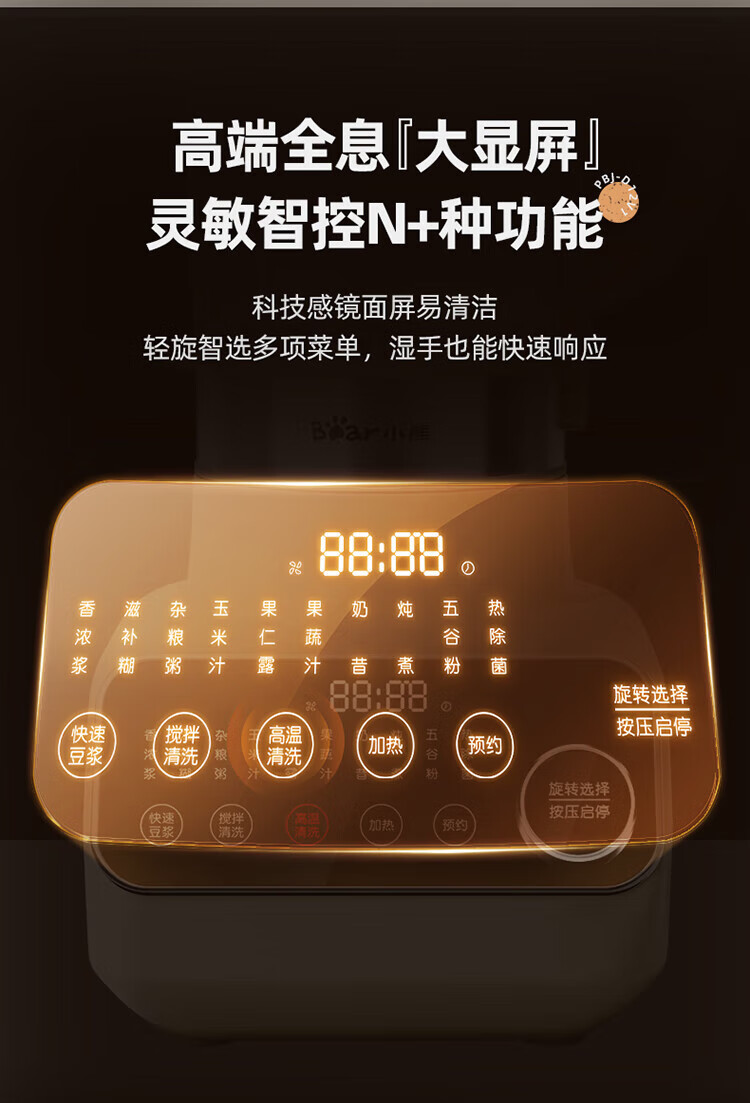 小熊(Bear)低音破壁机 可拆刀洗 家用多功能小型豆浆机 热除菌清洗 碎冰降噪智能预约 52分贝 PBJ-D12V1 可拆刀款