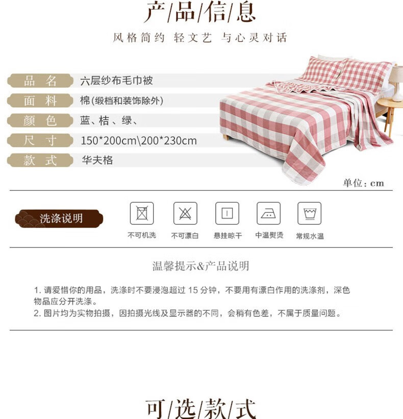 Tri-polar40纱支六层纱布毛巾被空调被 TP2903 大蓝格 200*230cm