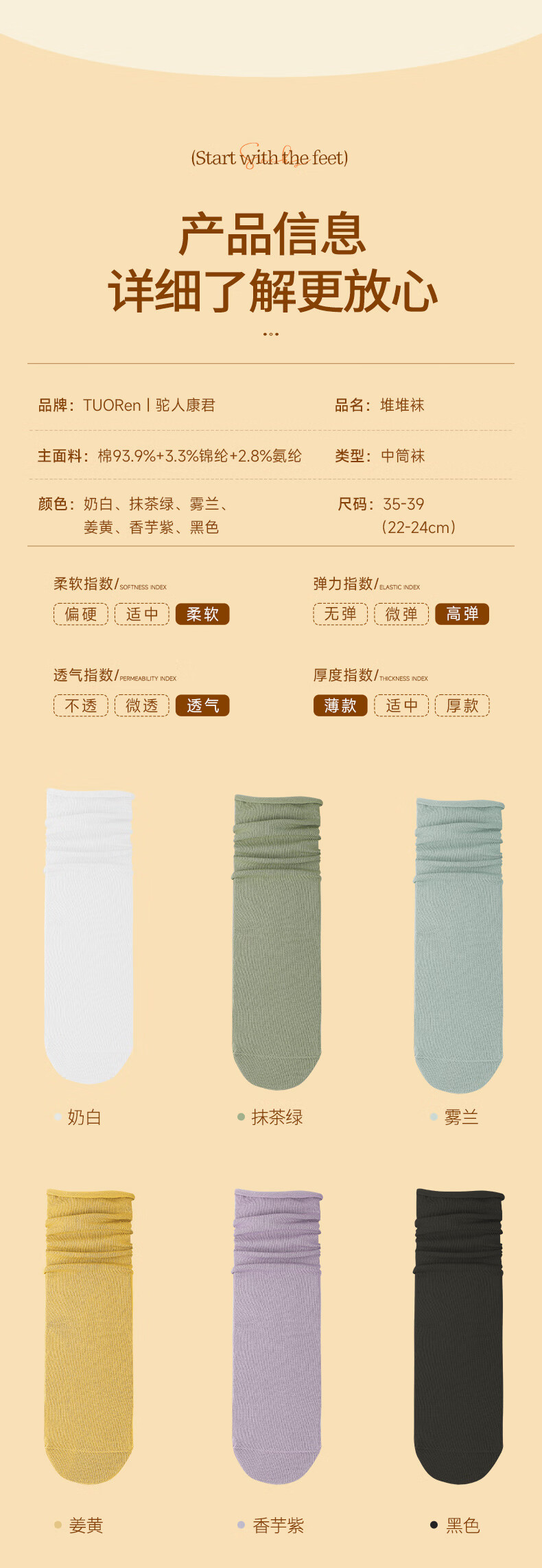 驼人康君女袜春夏堆堆袜中高筒袜松口女士长袜透气 搭配小皮鞋ins潮6双装