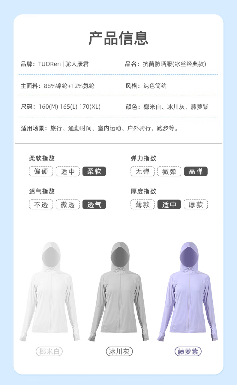 驼人康君防晒衣开衫女2023新款冰感夏季冰丝女外套防晒服 藤萝紫 M
