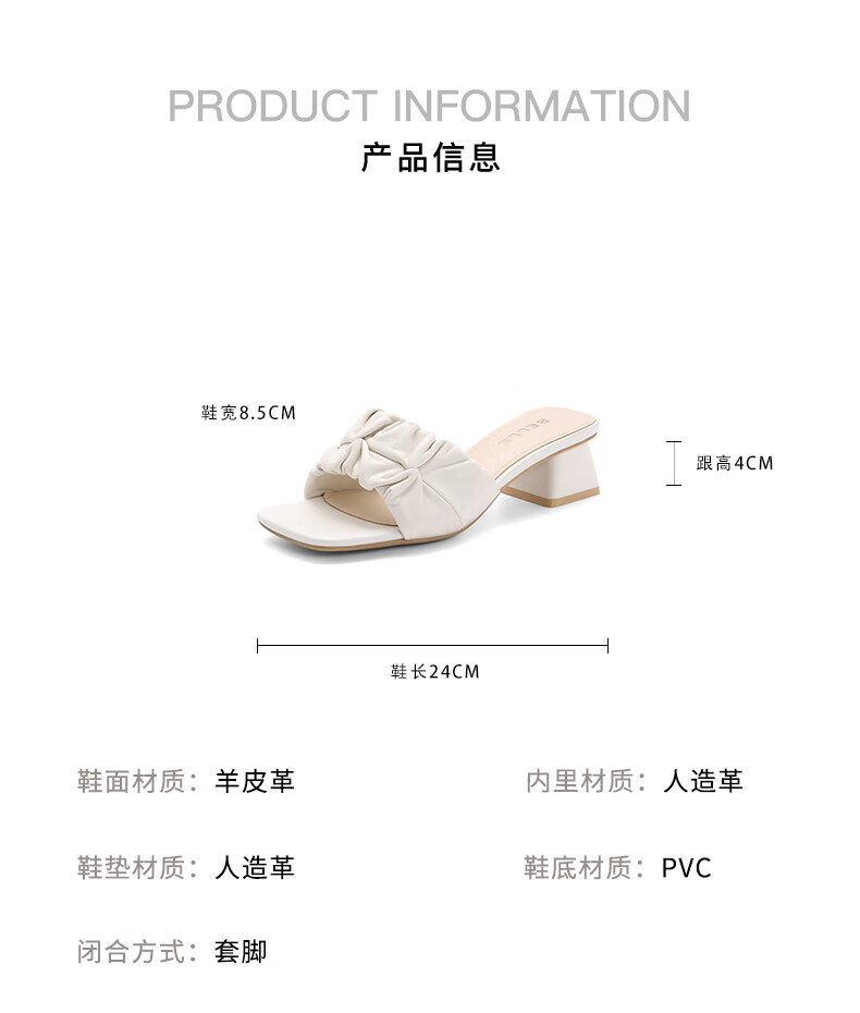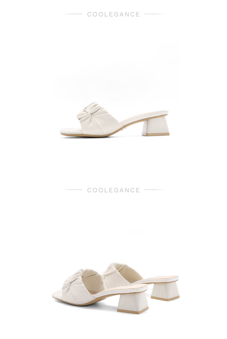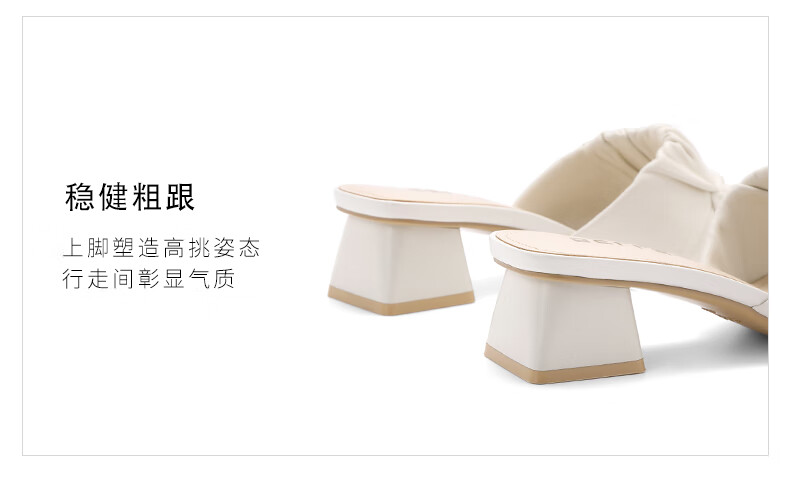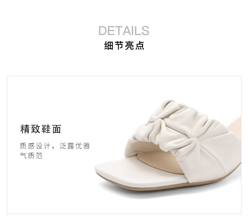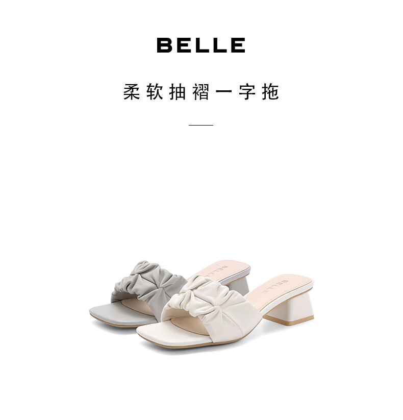 百丽温柔气质一字拖女2023夏季新商场同款优雅凉拖Z6Q1DBT3 米白 39