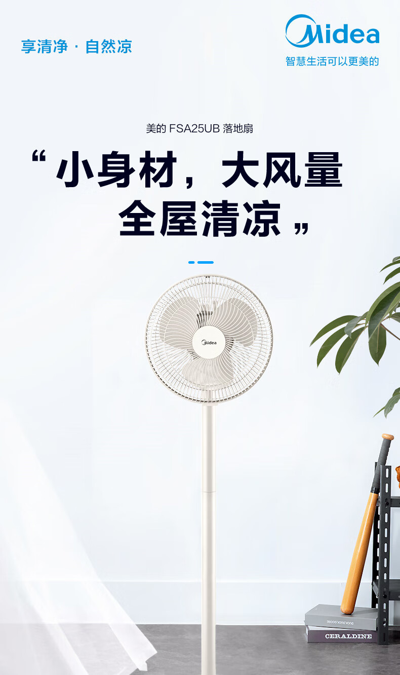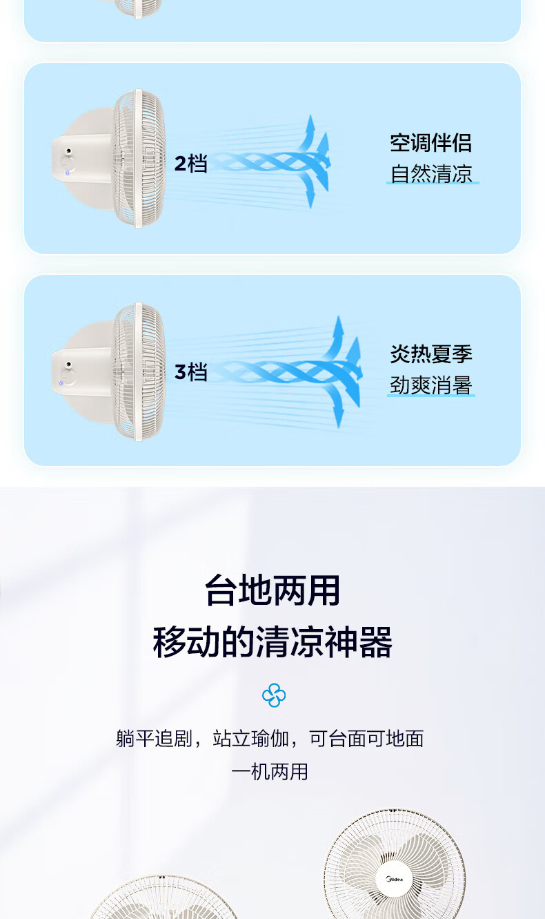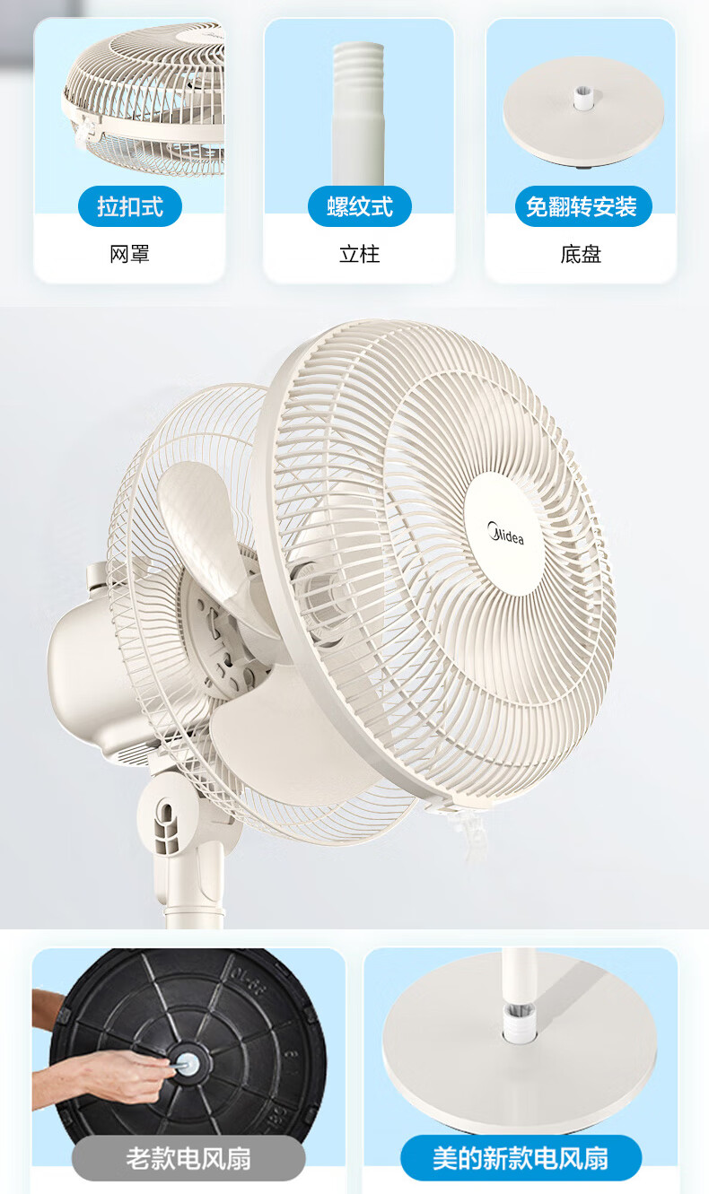 美的(Midea)电风扇落地扇家用小型台地两用立式台式电扇FSA25UB 米白