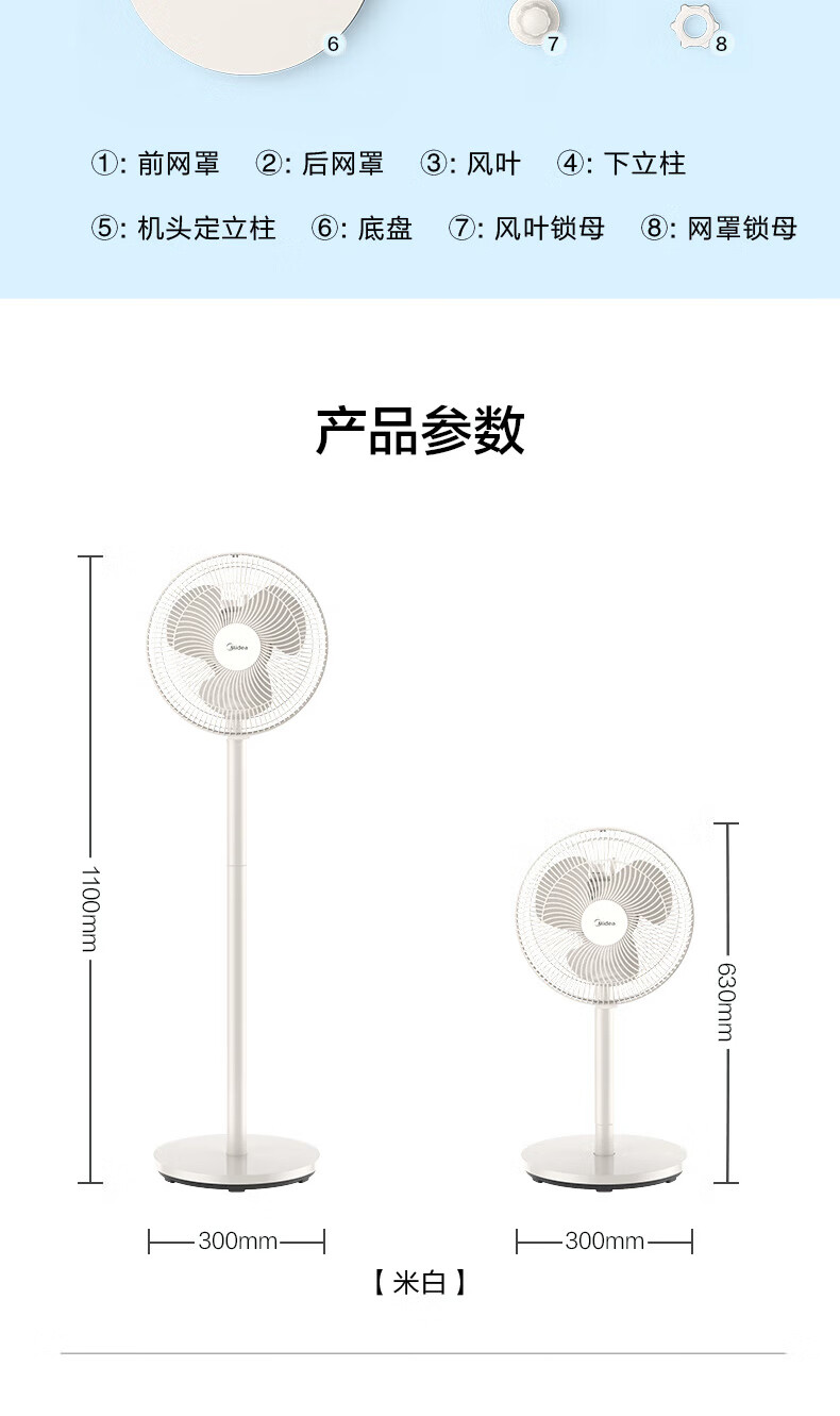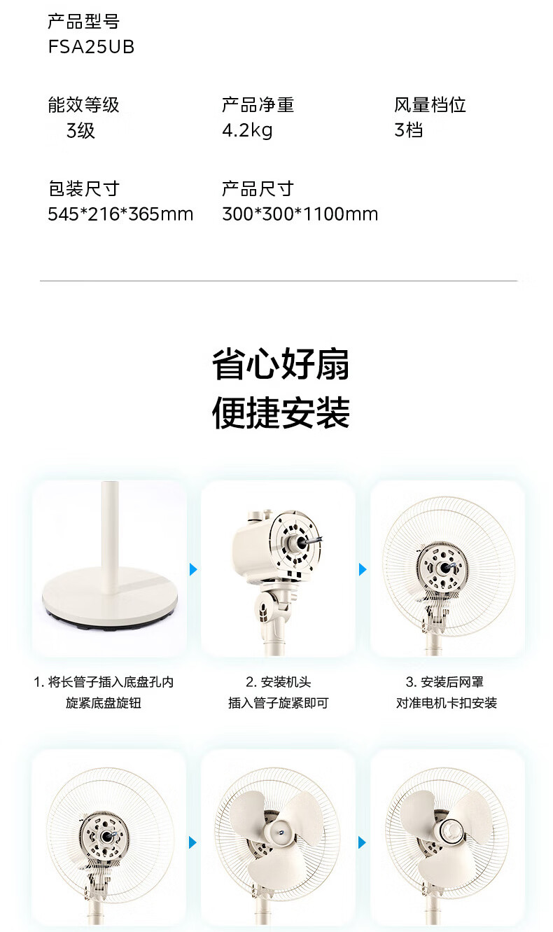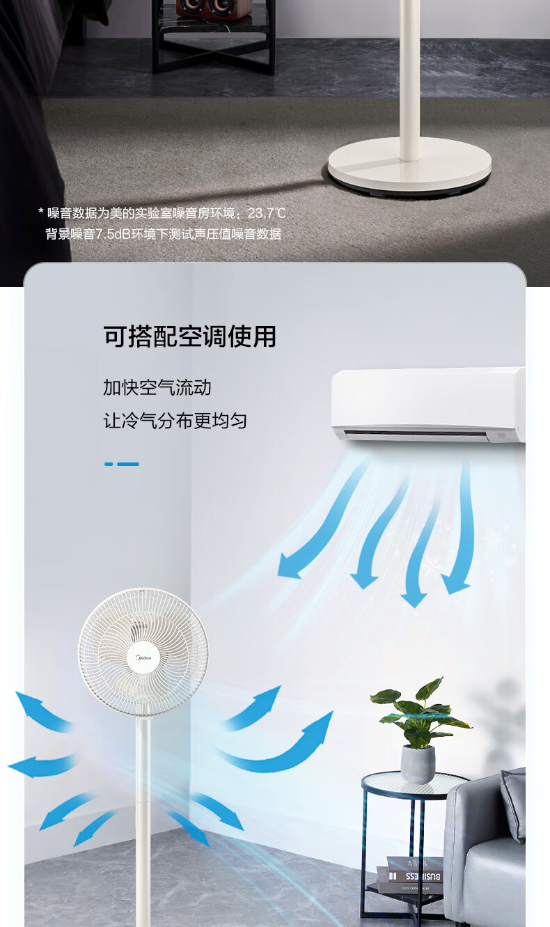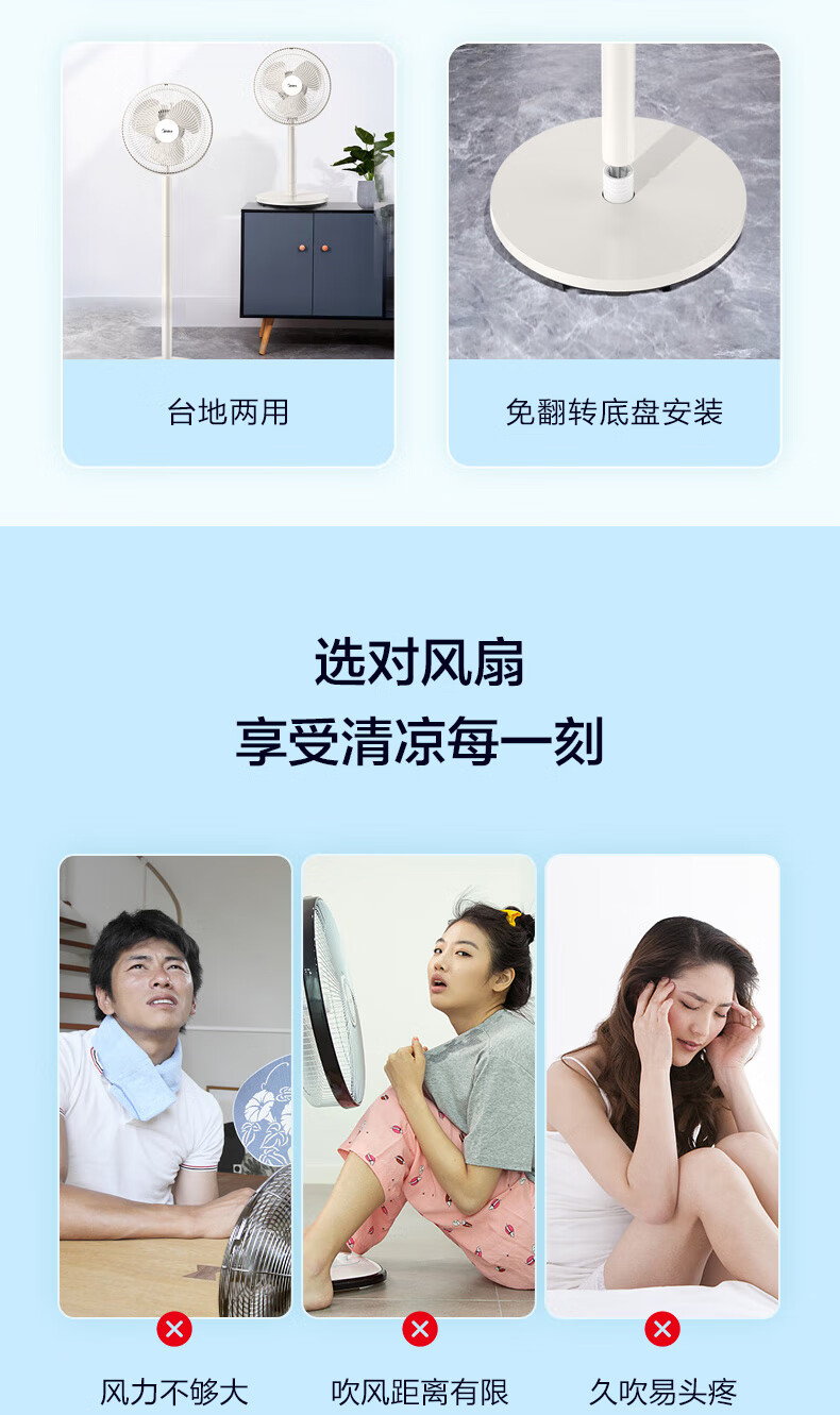 美的(Midea)电风扇落地扇家用小型台地两用立式台式电扇FSA25UB 米白