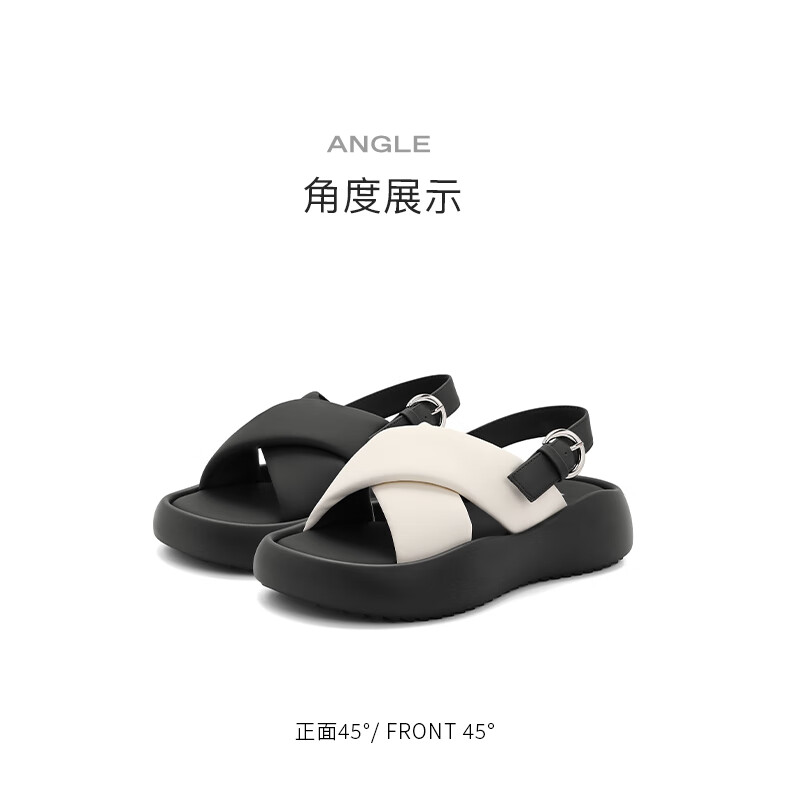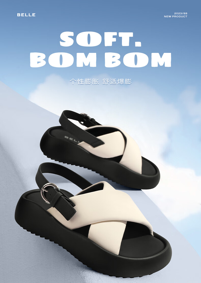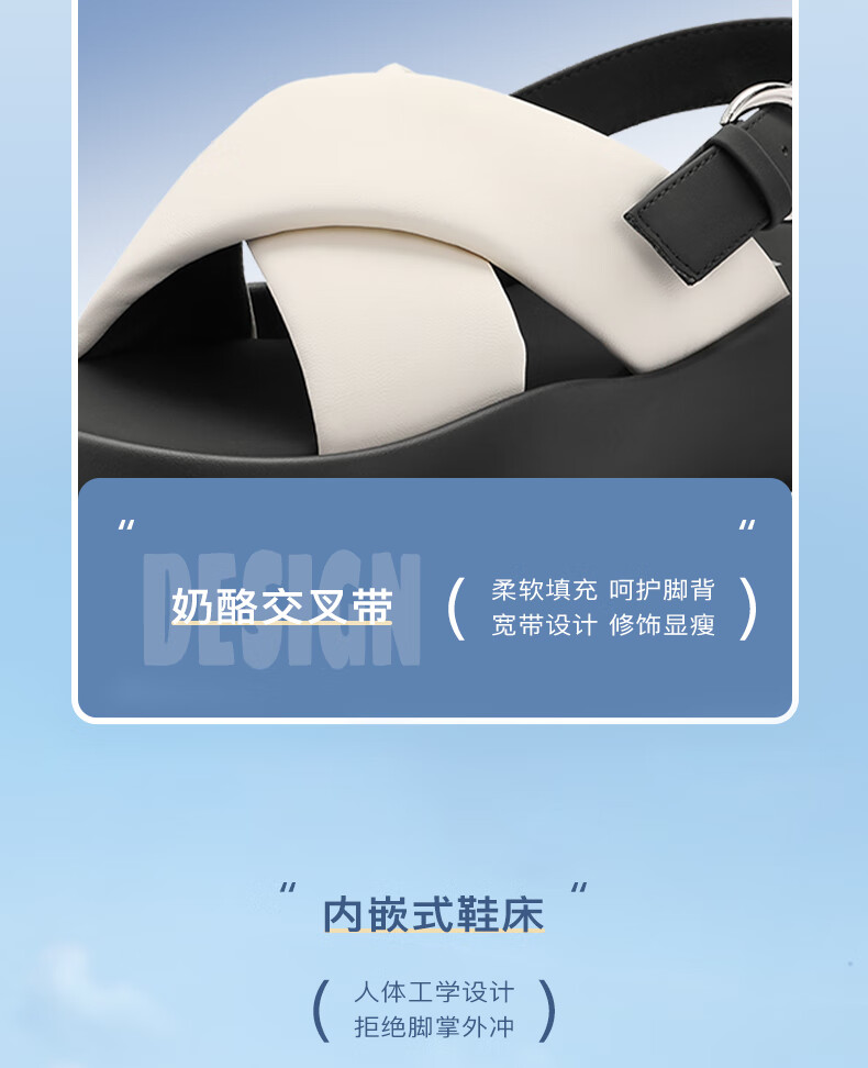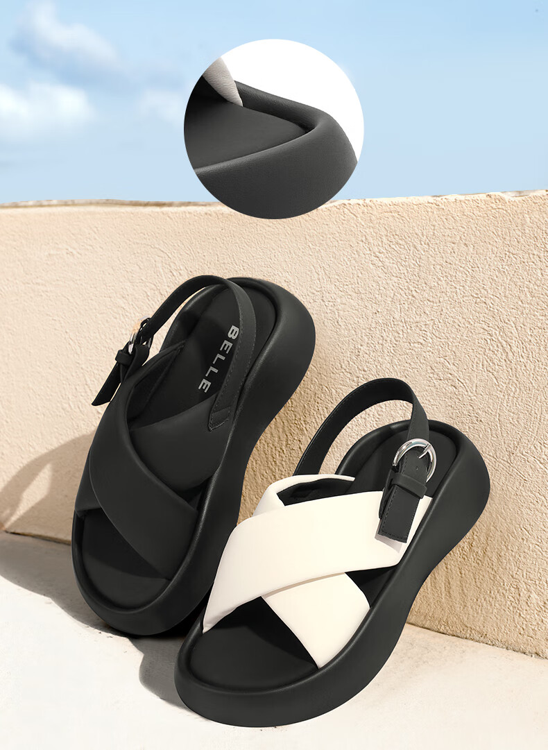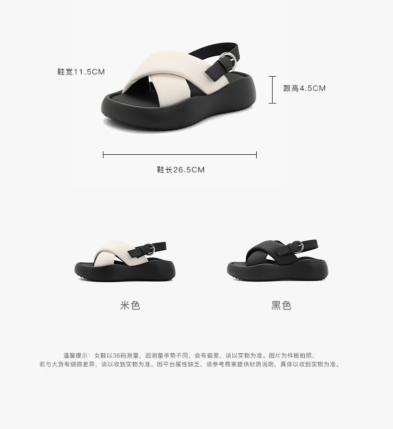 百丽交叉带凉鞋女2023夏季新商场同款厚底沙滩凉鞋Z8V1DBL3 米色 37