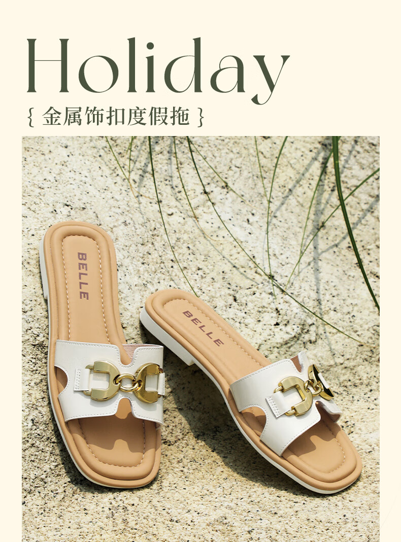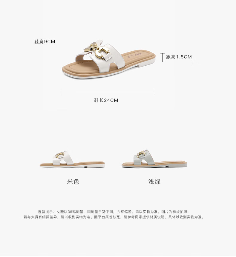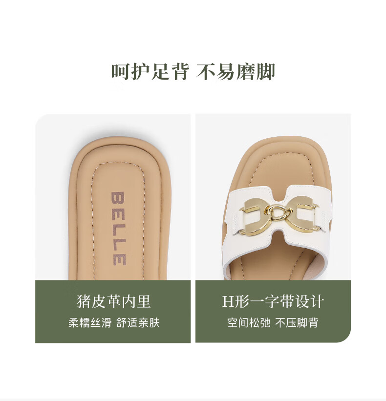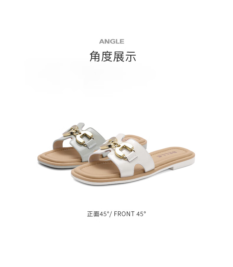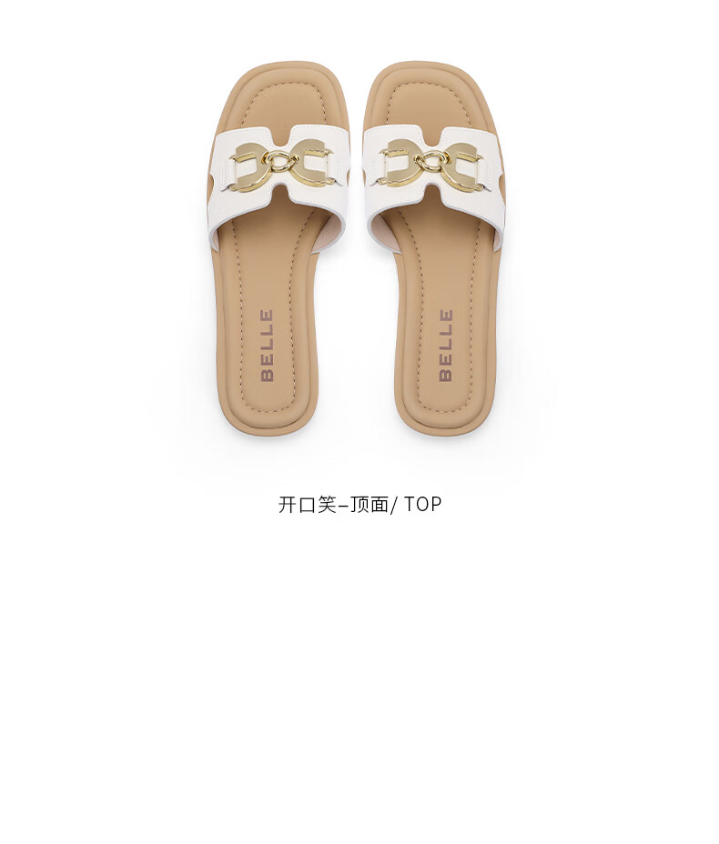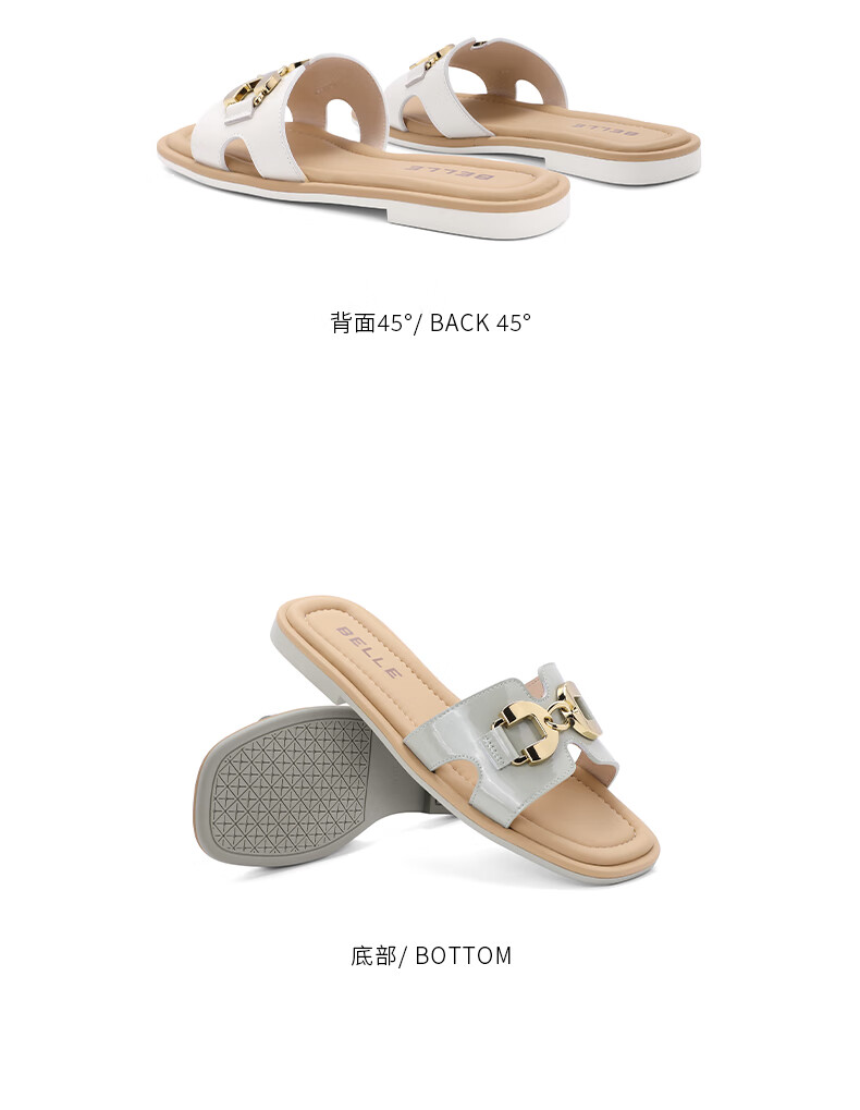 百丽链扣一字拖女2023夏季新商场同款牛皮革慵懒凉拖Z9A1DBT3 米白 38