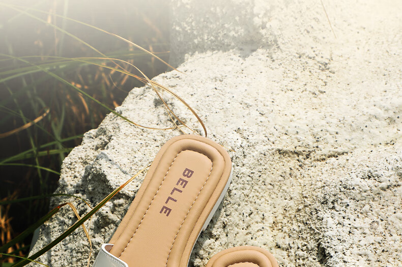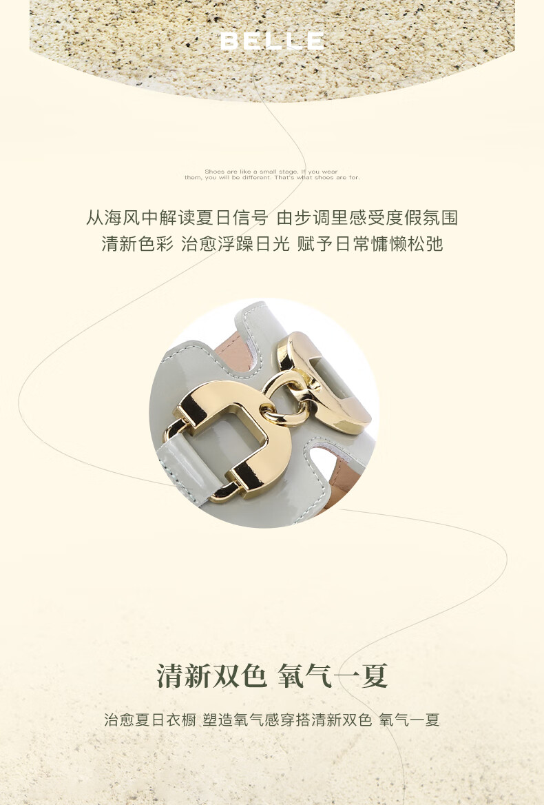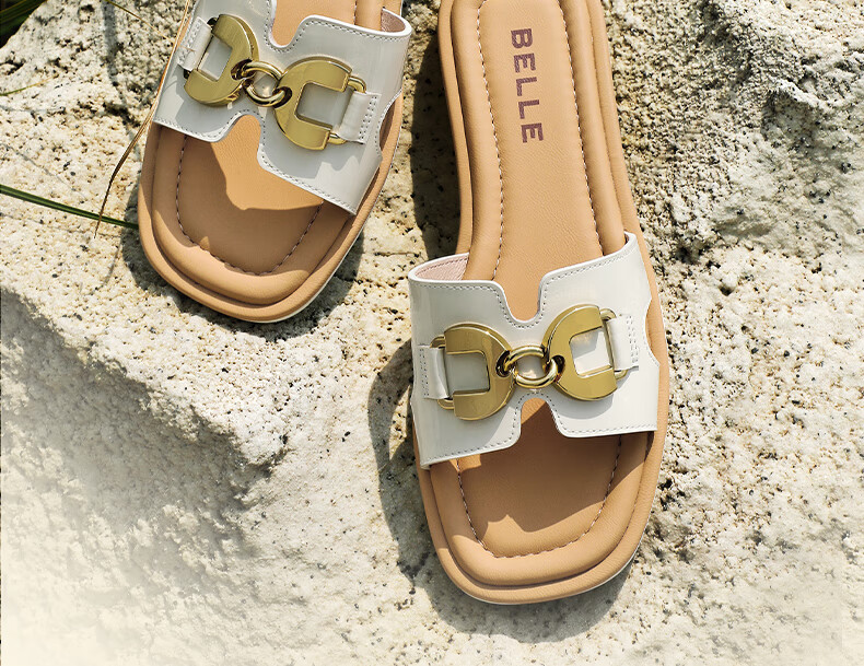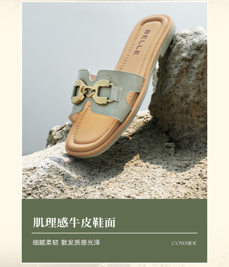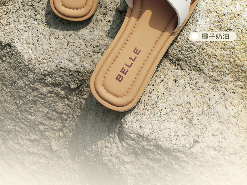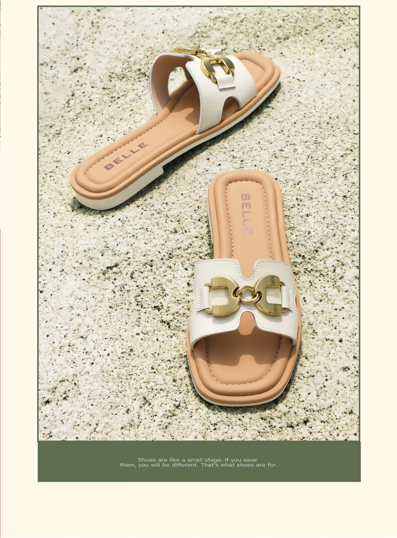 百丽链扣一字拖女2023夏季新商场同款牛皮革慵懒凉拖Z9A1DBT3 米白 38