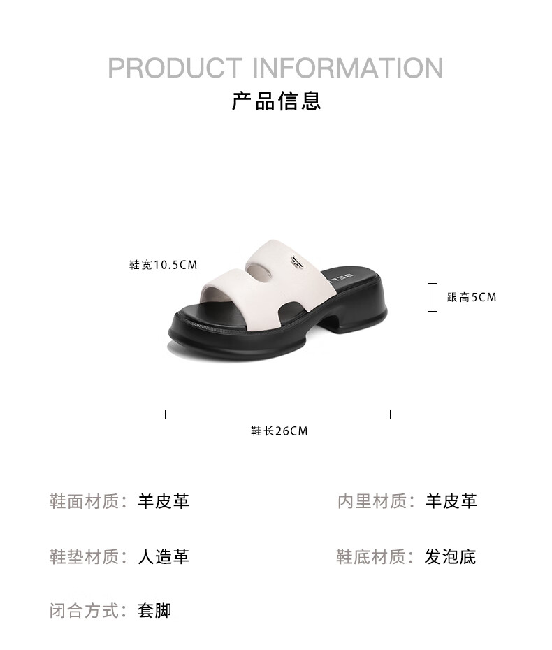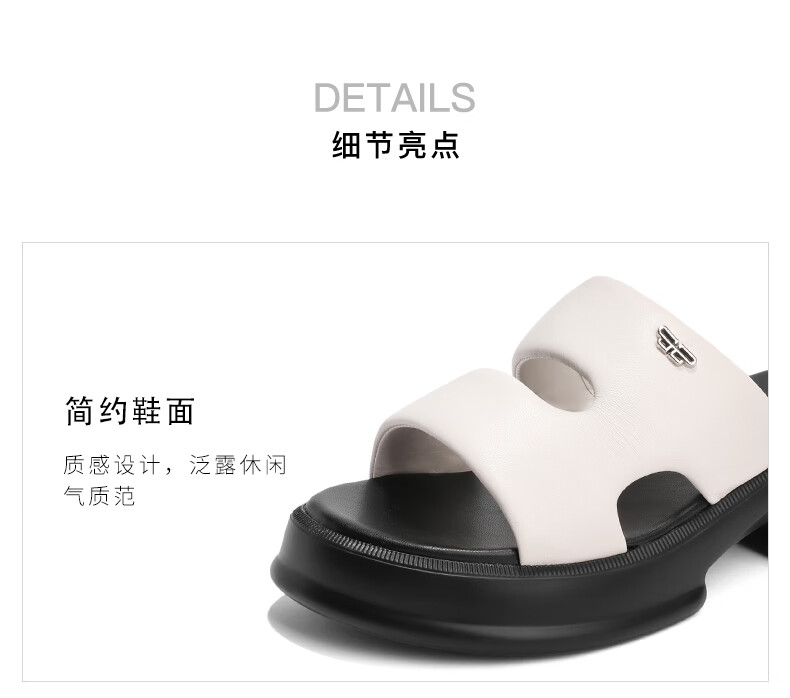 百丽休闲拖鞋女2023夏季新款柔软厚底凉拖B1179BT3 白色 37