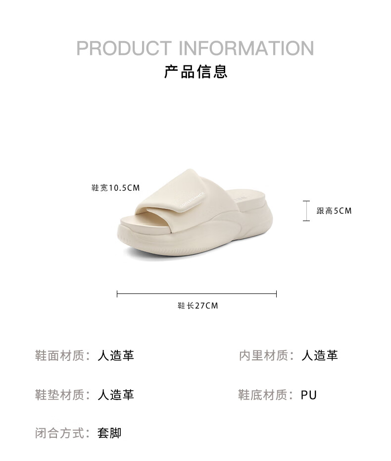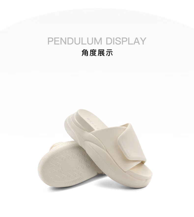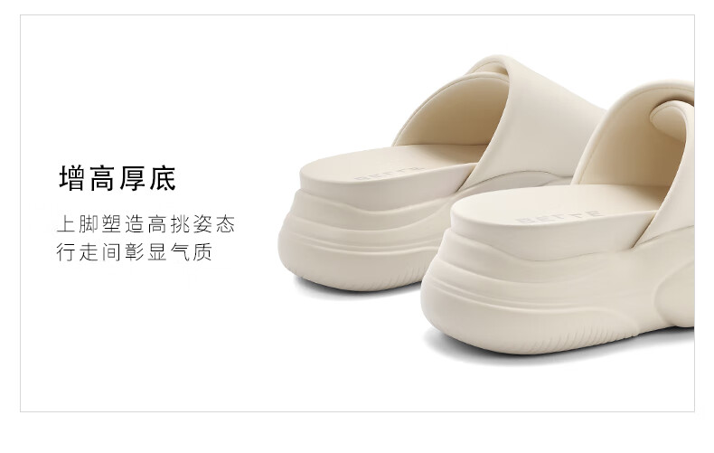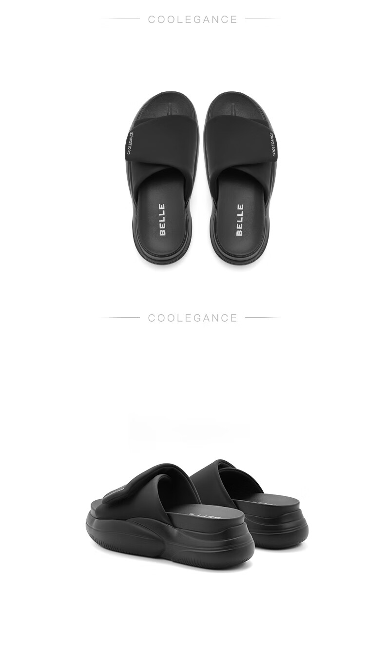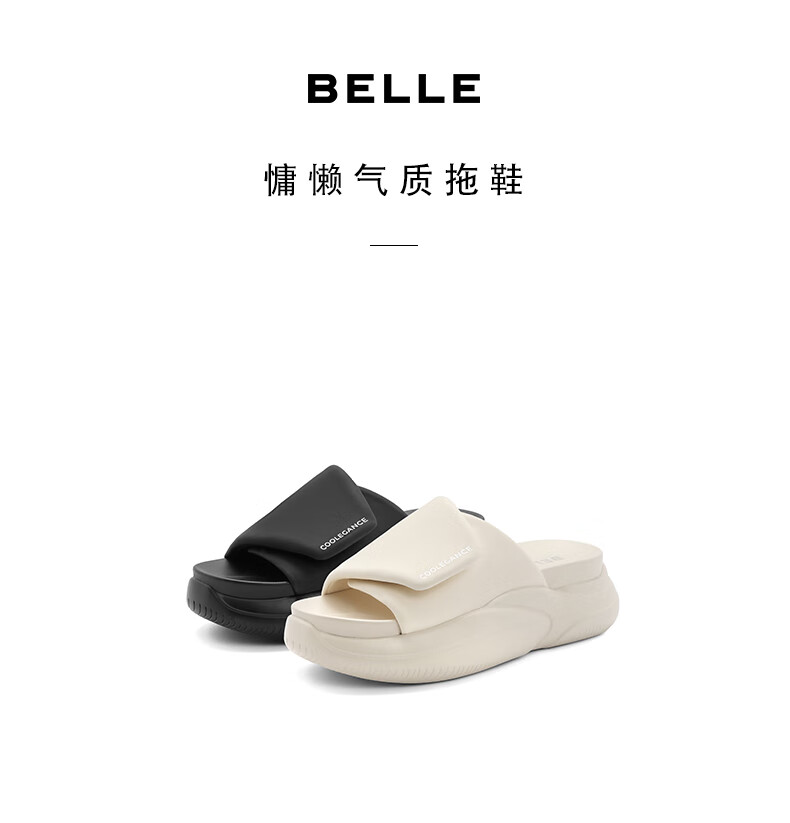 百丽休闲一字拖女2023夏季新款厚底增高外穿老爹运动拖鞋B1346BT3 黑色 36