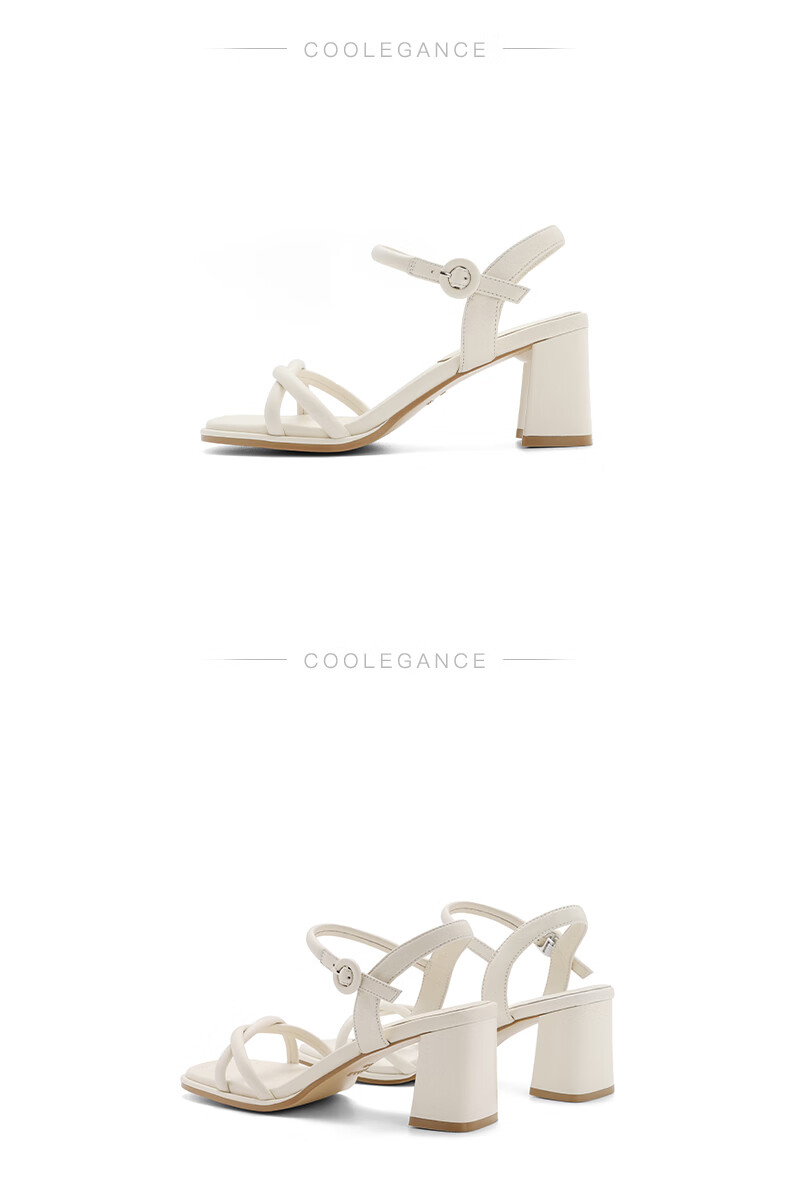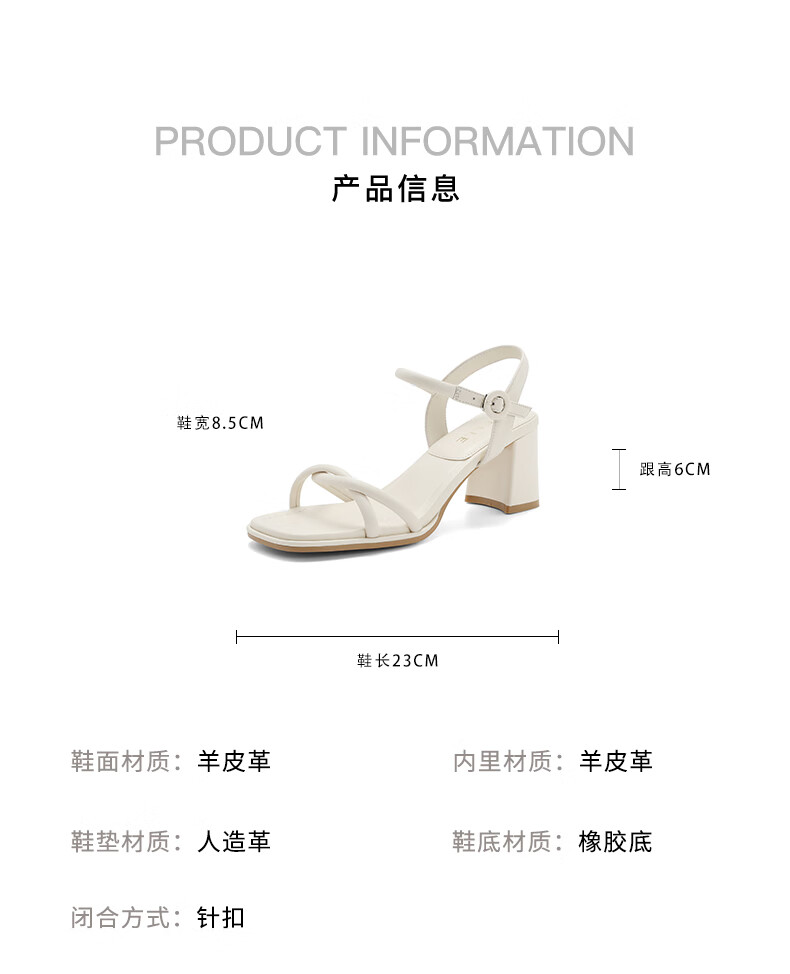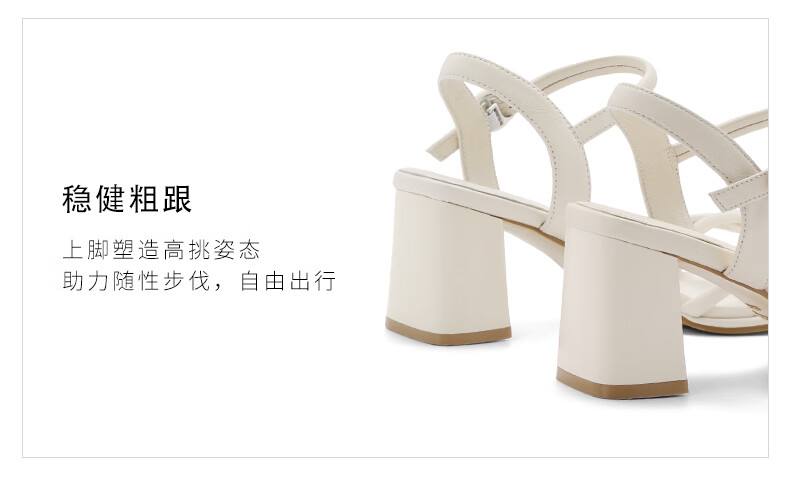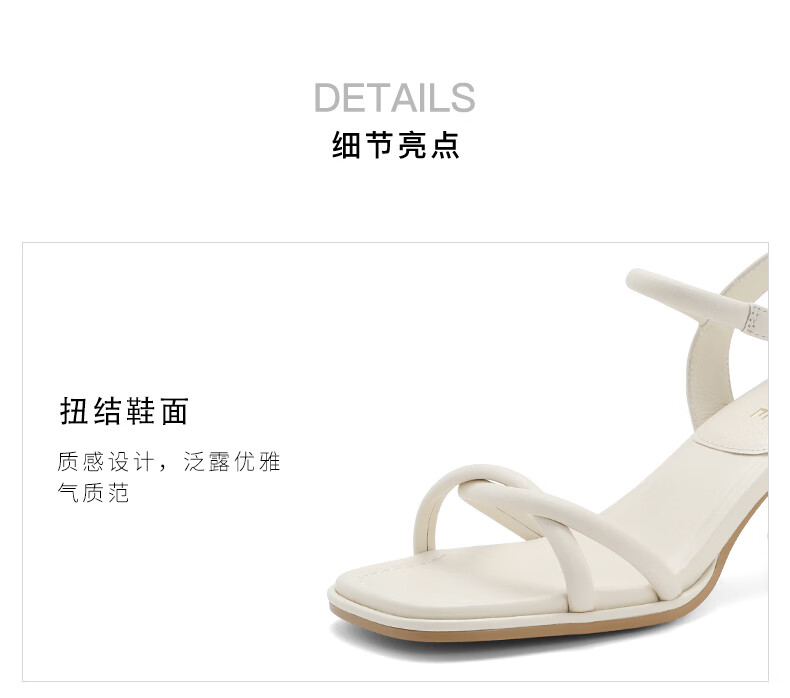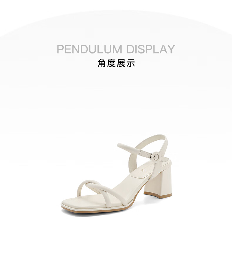 百丽一字带凉鞋女2023夏季新商场同款气质高跟凉鞋Z9L1DBL3 米白 38
