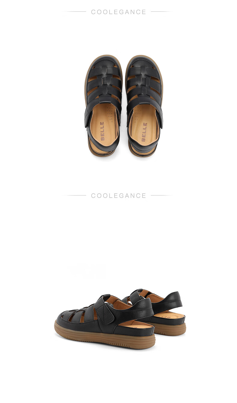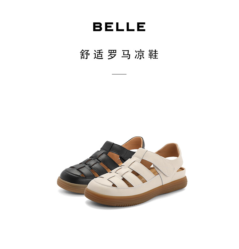 百丽编织罗马凉鞋女2023秋季...