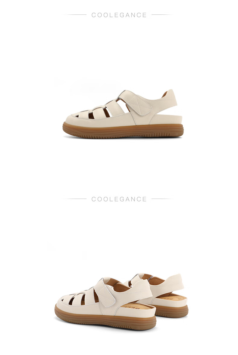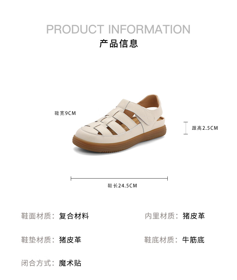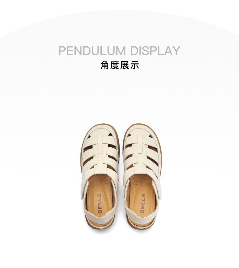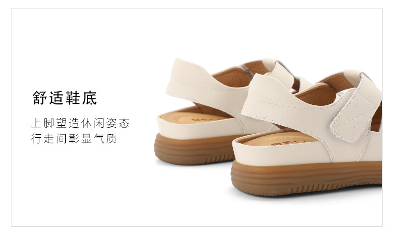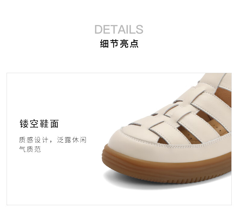 百丽编织罗马凉鞋女2023秋季新款平底镂空包头猪笼鞋B1296CL3 米白 37