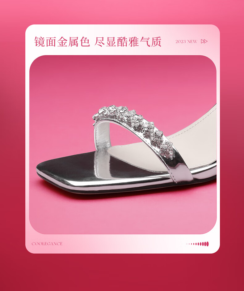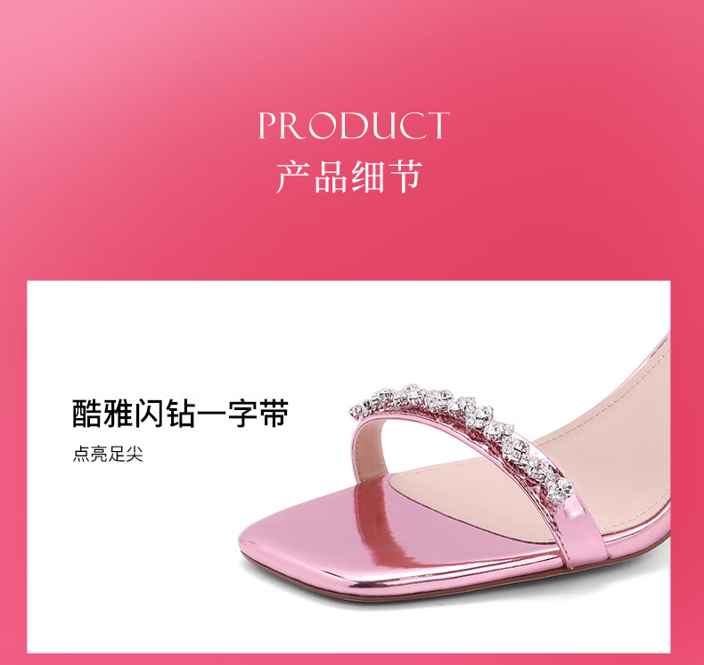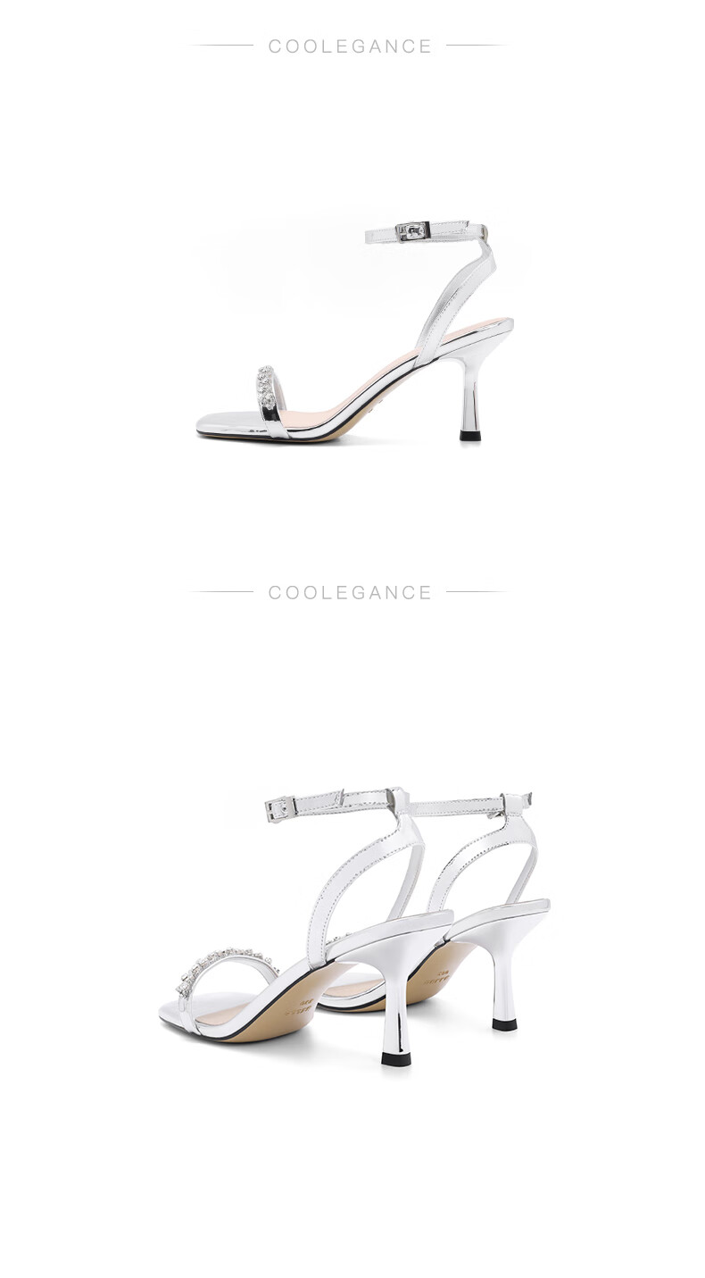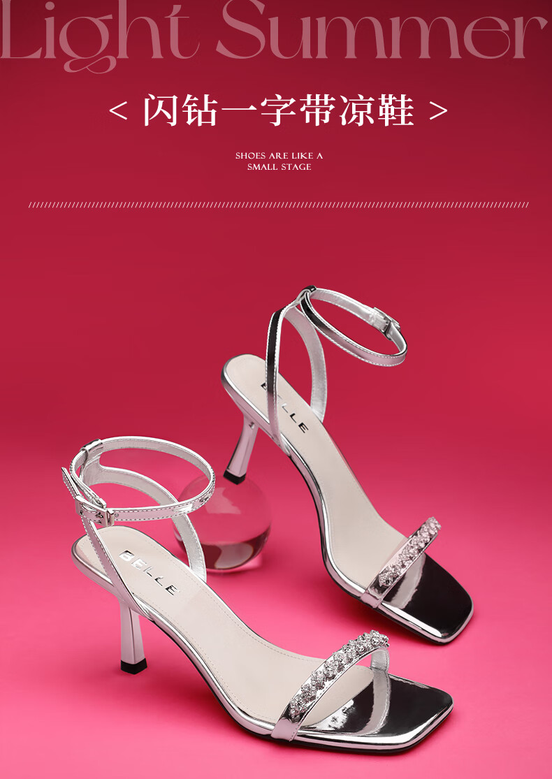 百丽一字带凉鞋女2023夏季新商场同款水钻高跟凉鞋3YTC2BL3 银色 36