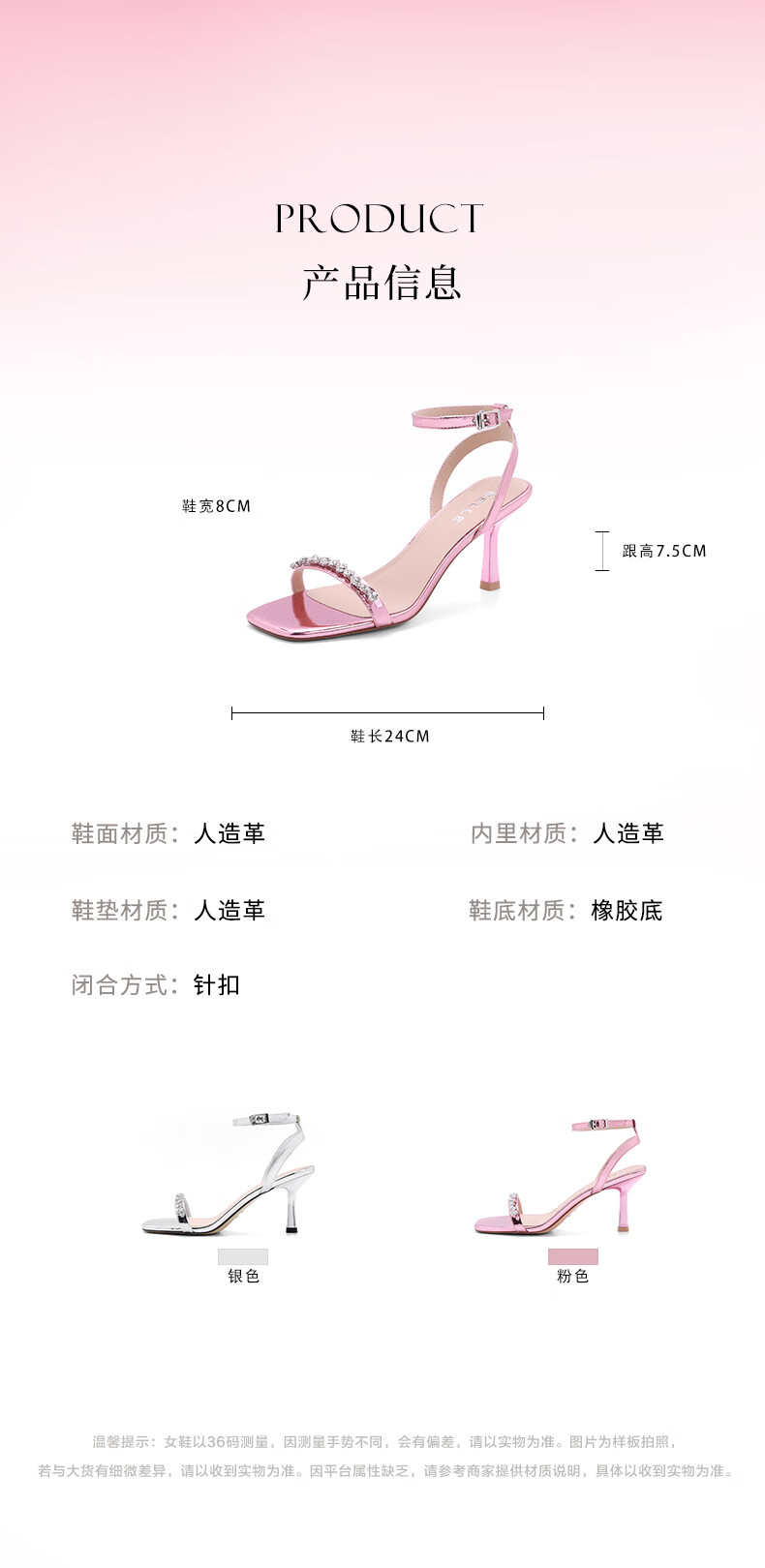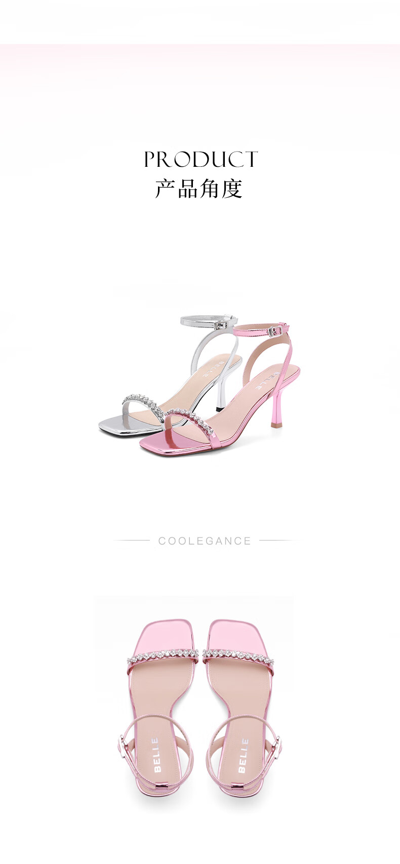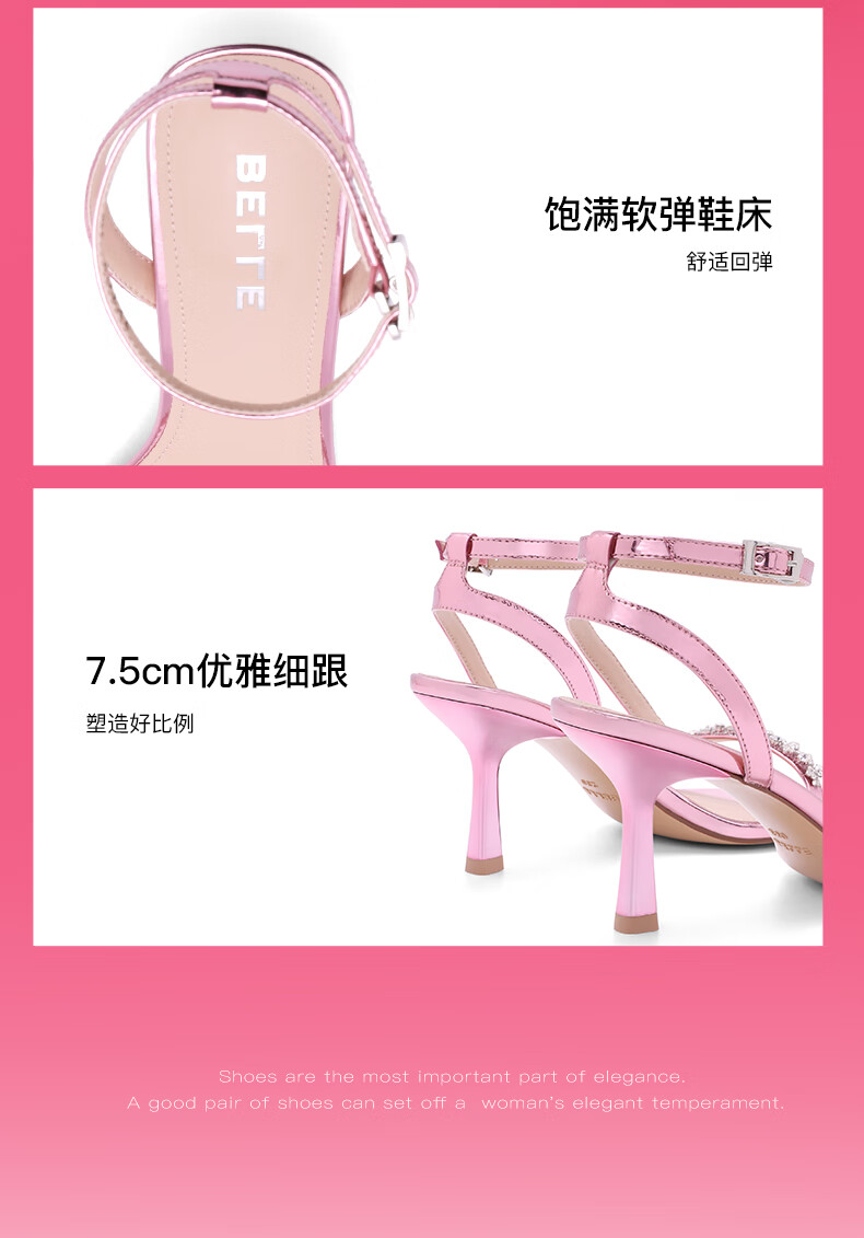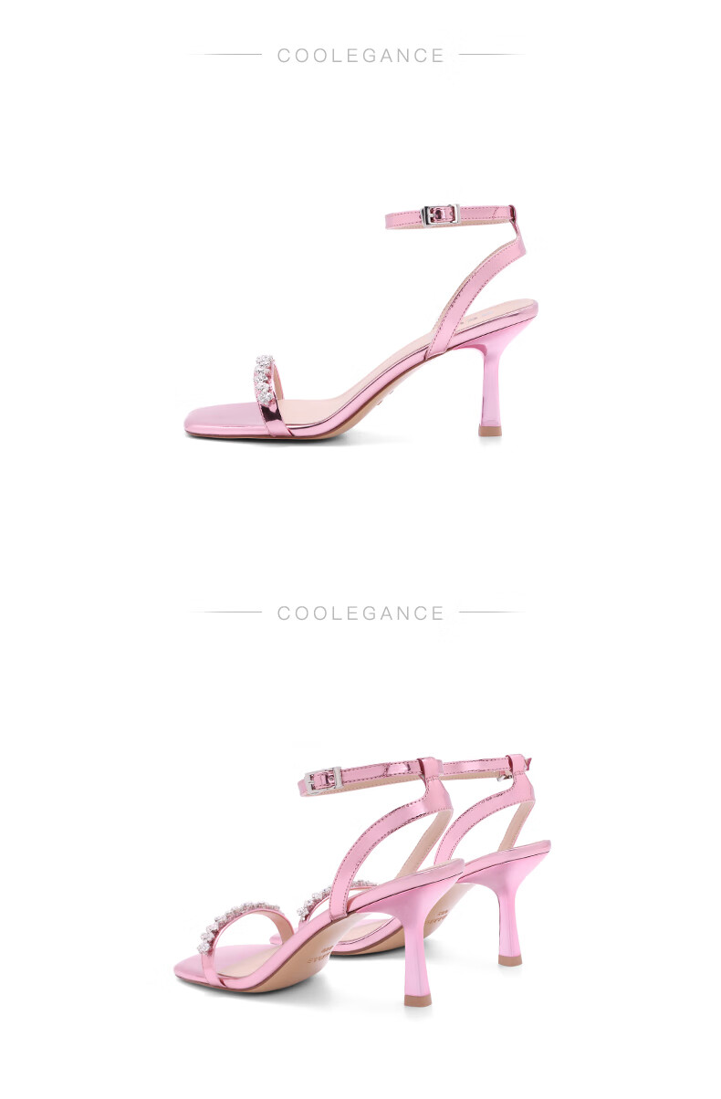 百丽一字带凉鞋女2023夏季新商场同款水钻高跟凉鞋3YTC2BL3 银色 36