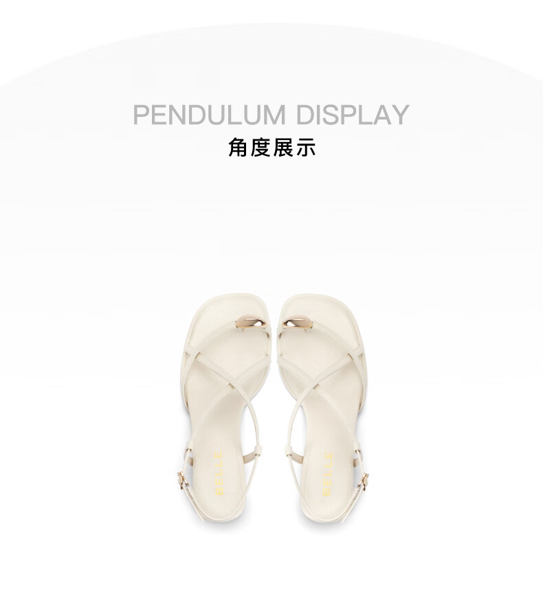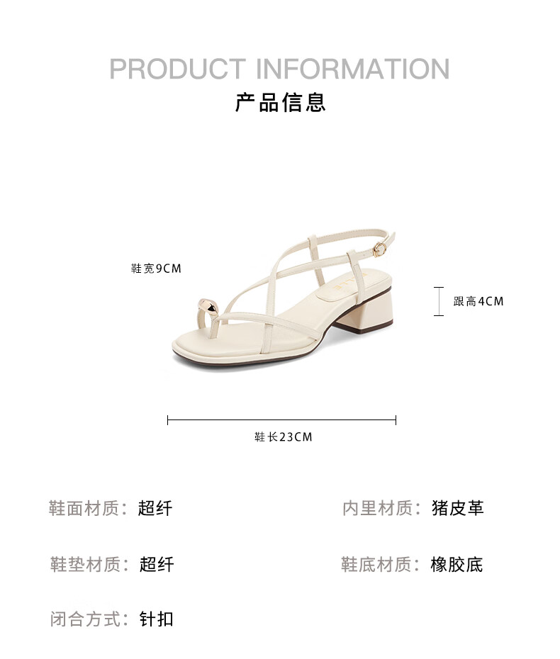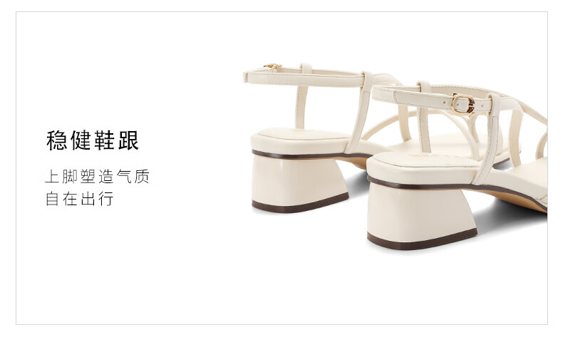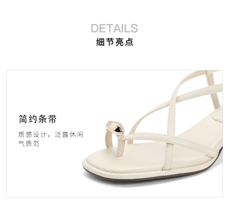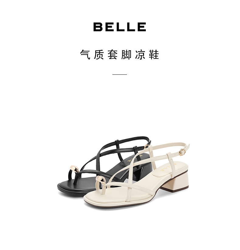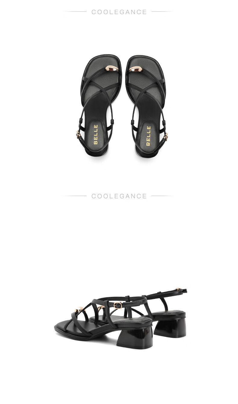 百丽缠绕带休闲凉鞋2023夏季新款方头简约风一字带凉鞋B1452BL3 黑色 37