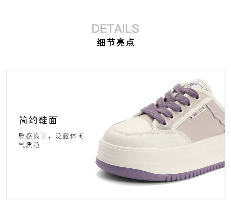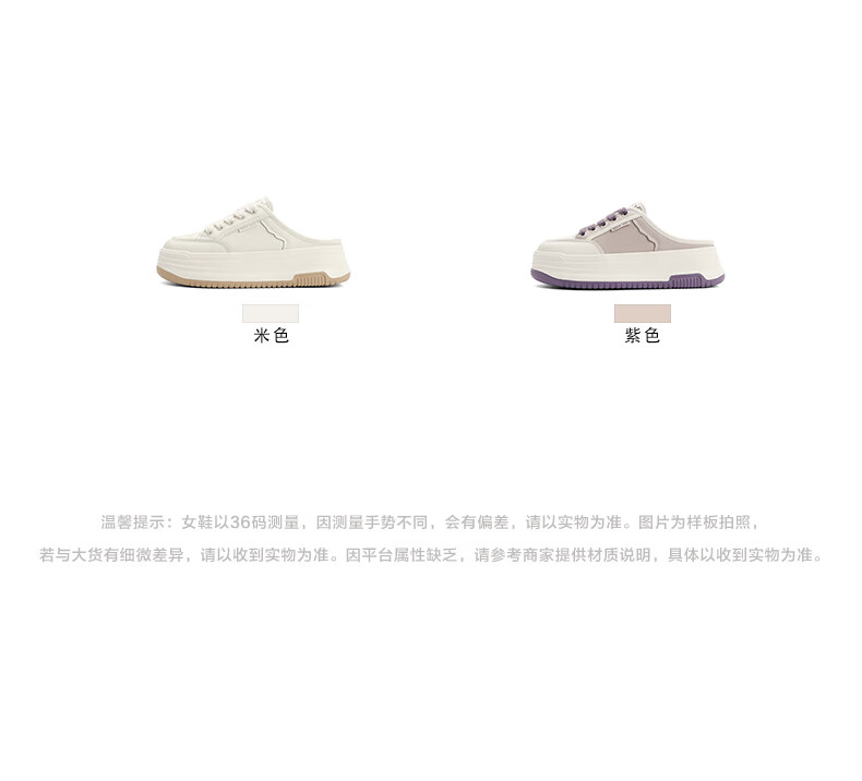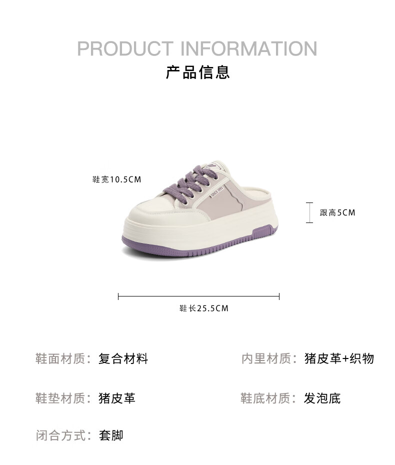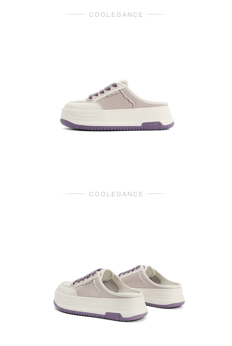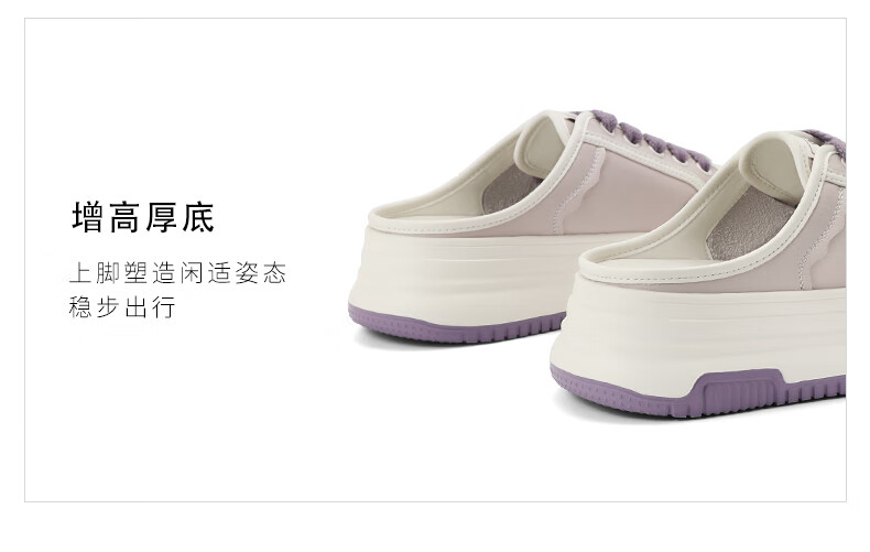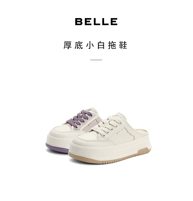 百丽厚底小白拖女2023秋季新款休闲一脚蹬板鞋B1320CH3 紫色 38