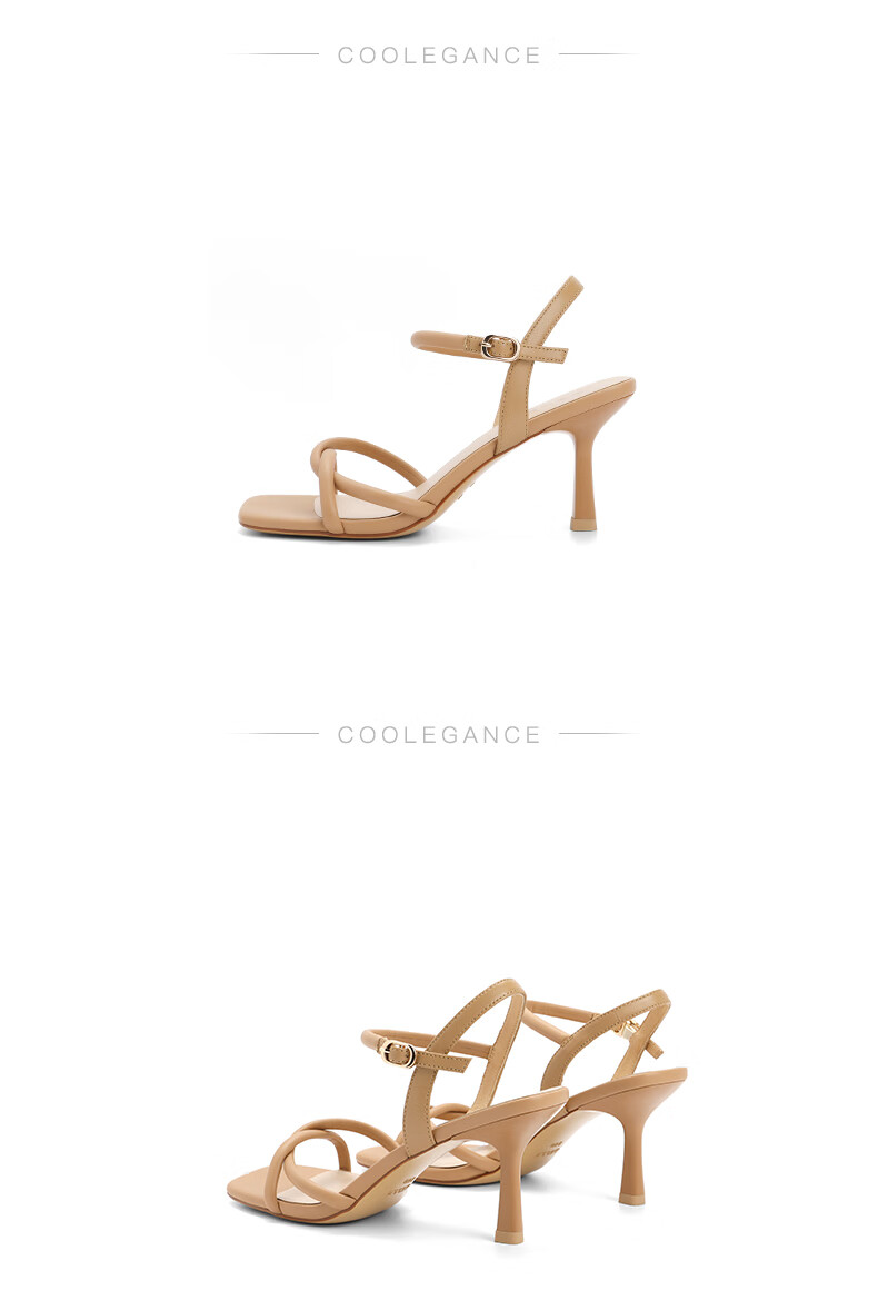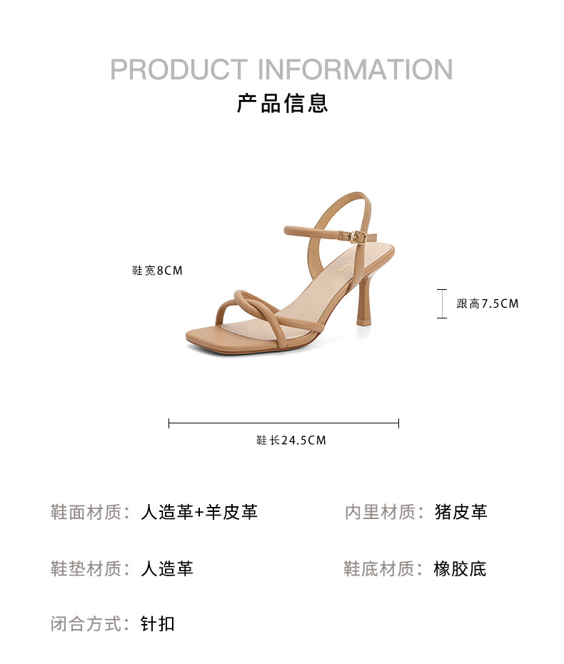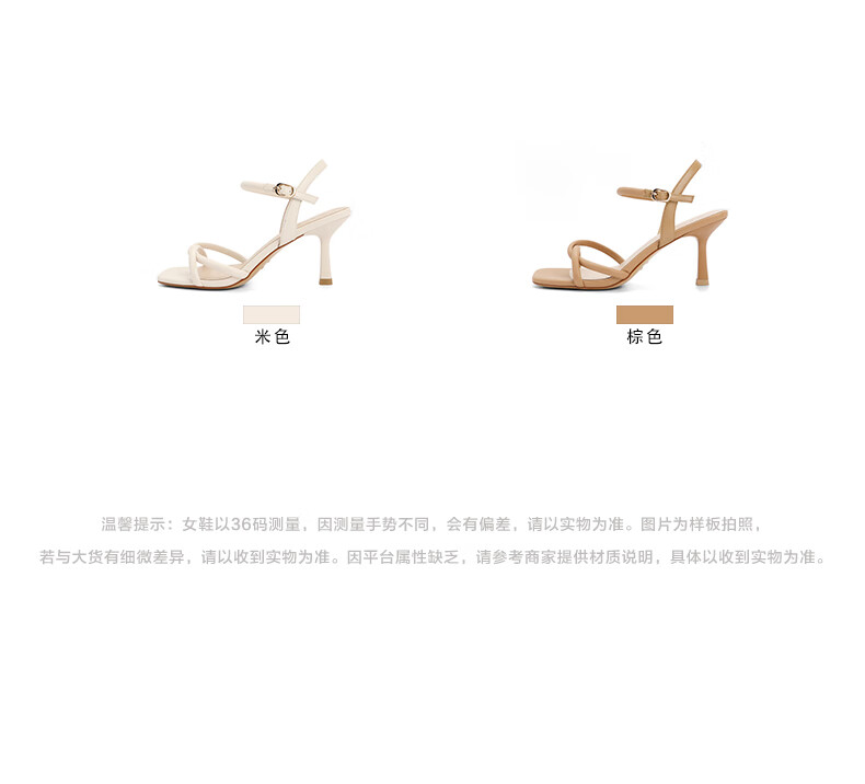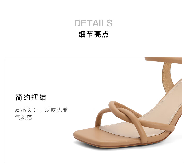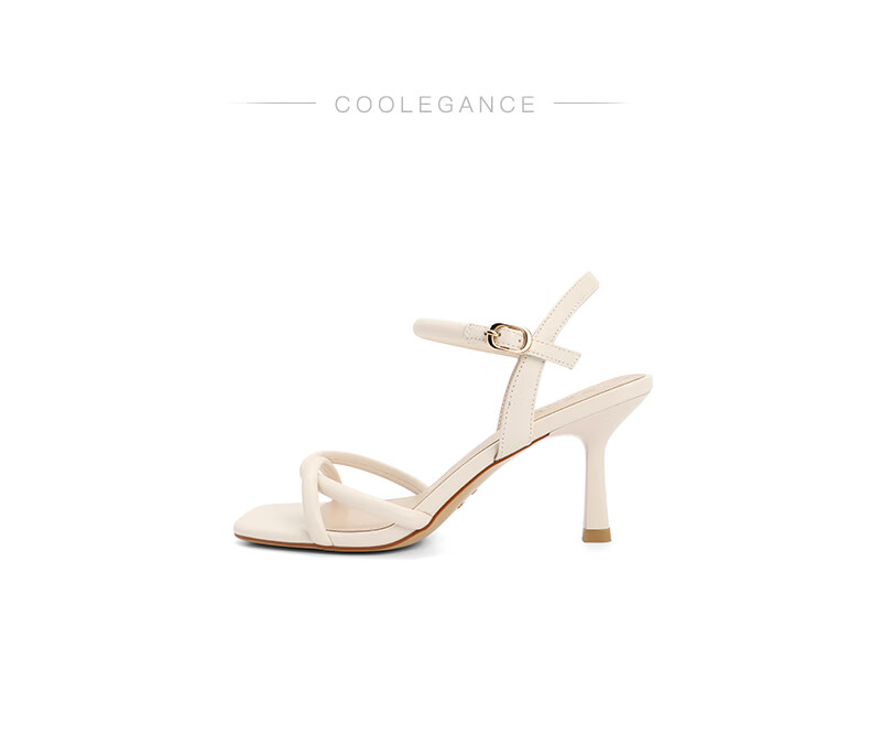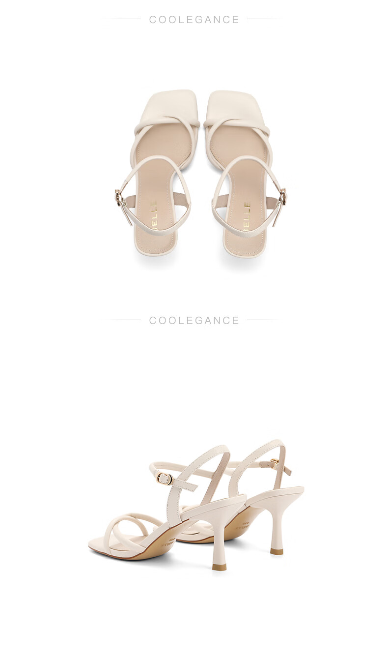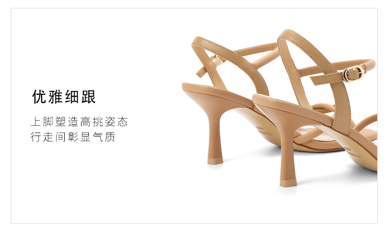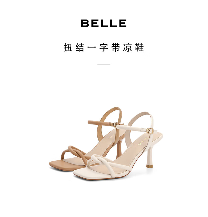 百丽气质一字带凉鞋女2023夏季新款法式简约高跟凉鞋3YTC5BL3 米色 36