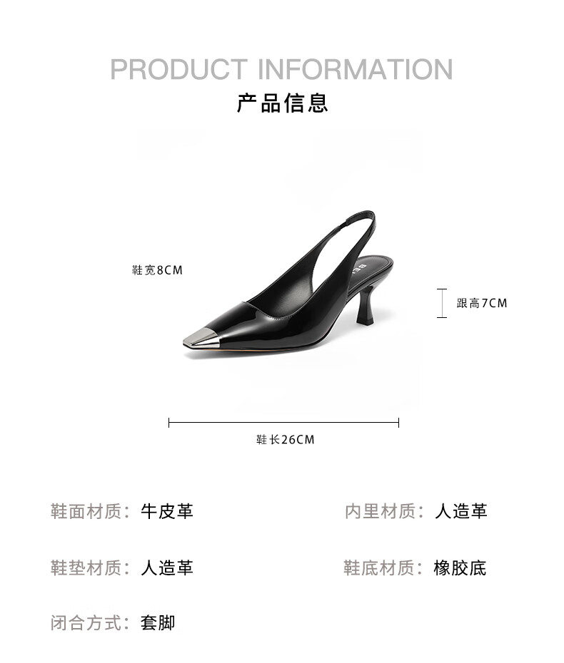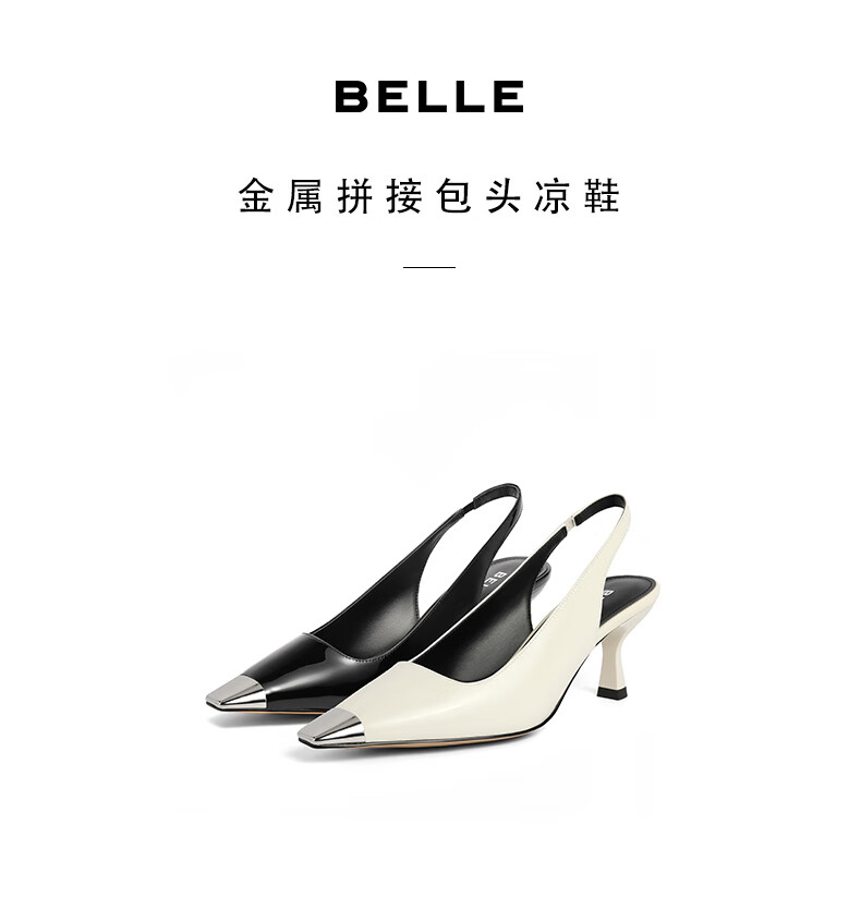 百丽金属头凉鞋女2023秋季新商场同款方头时装凉鞋 黑色 36
