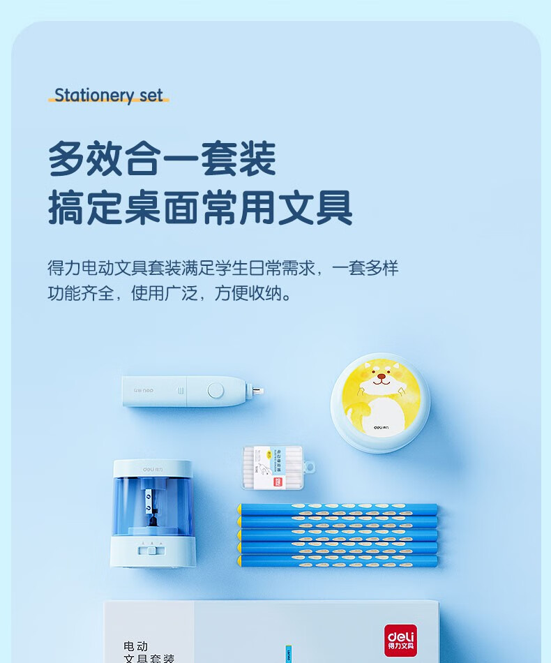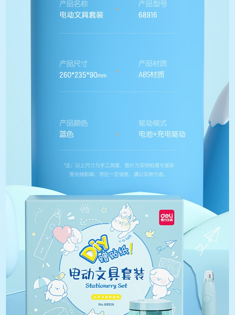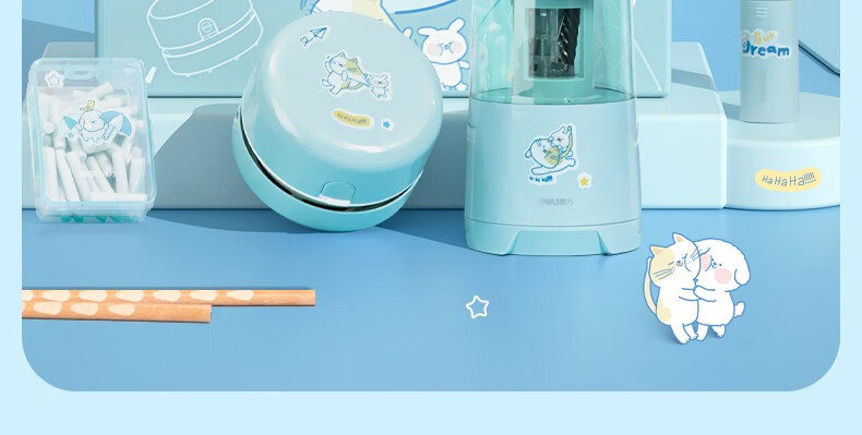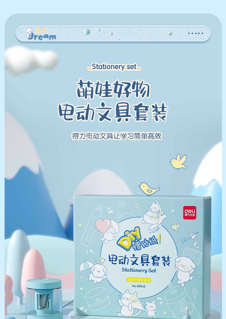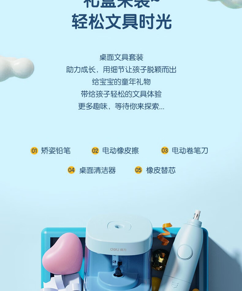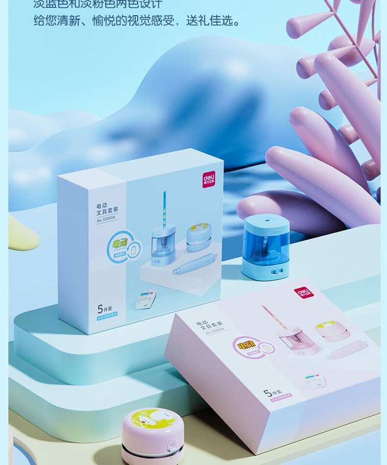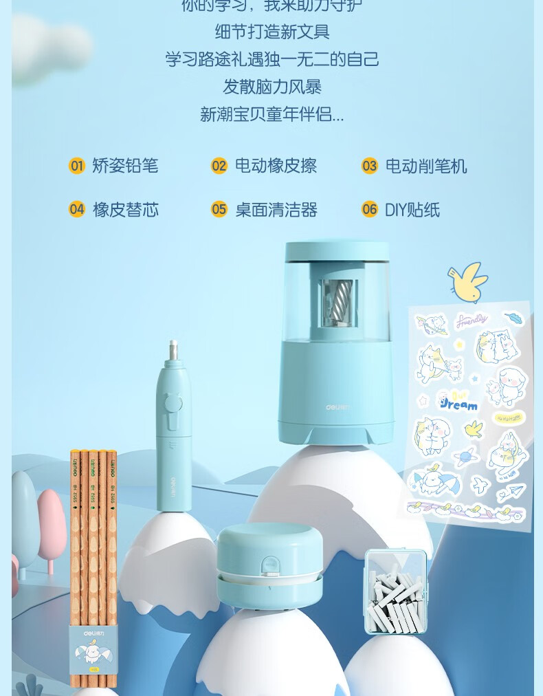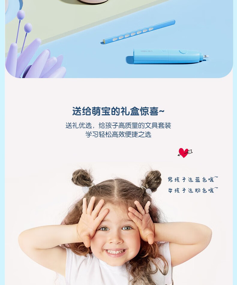 得力(deli)学生文具礼盒文具套装削笔机套装文具开学大礼包儿童节日礼物 居家学习用品 开学礼物 【小粉象】萌宠电动文具套装 VG808