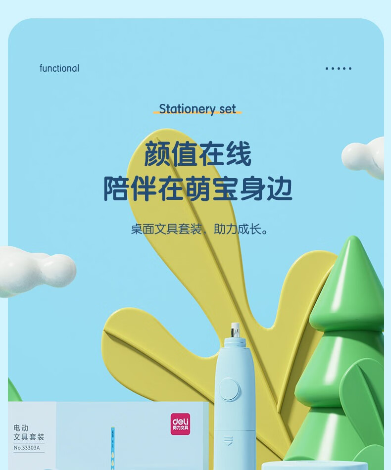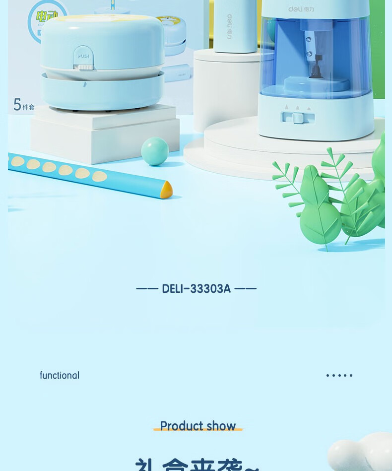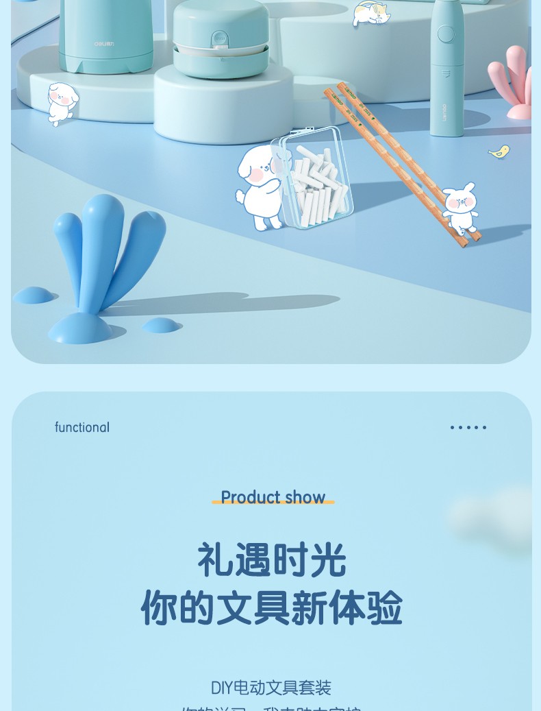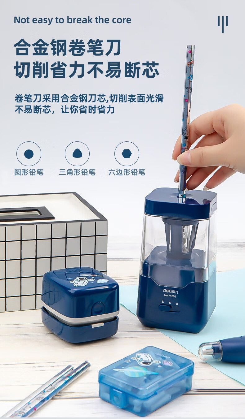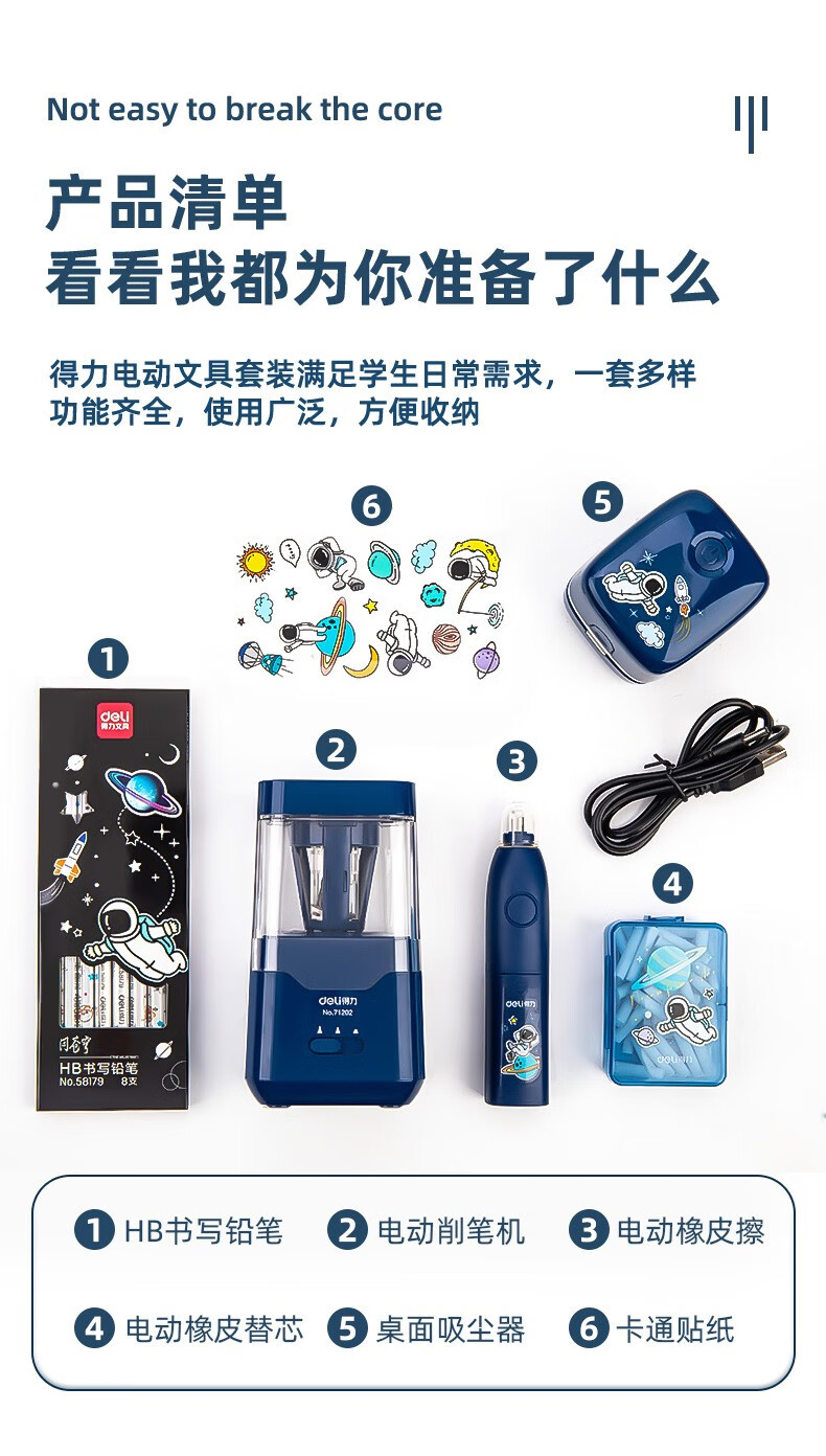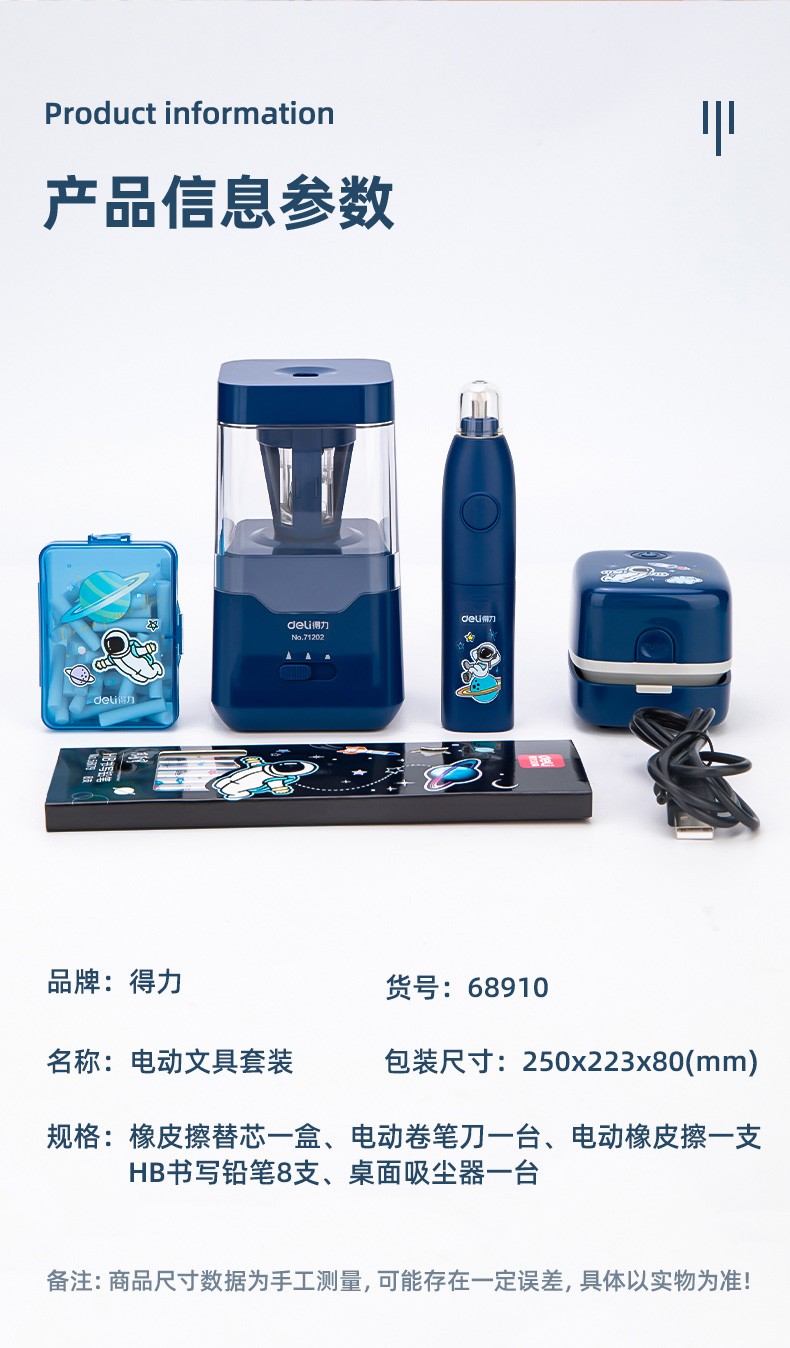 得力(deli)学生文具礼盒文具套装削笔机套装文具开学大礼包儿童节日礼物 居家学习用品 开学礼物 【小粉象】萌宠电动文具套装 VG808