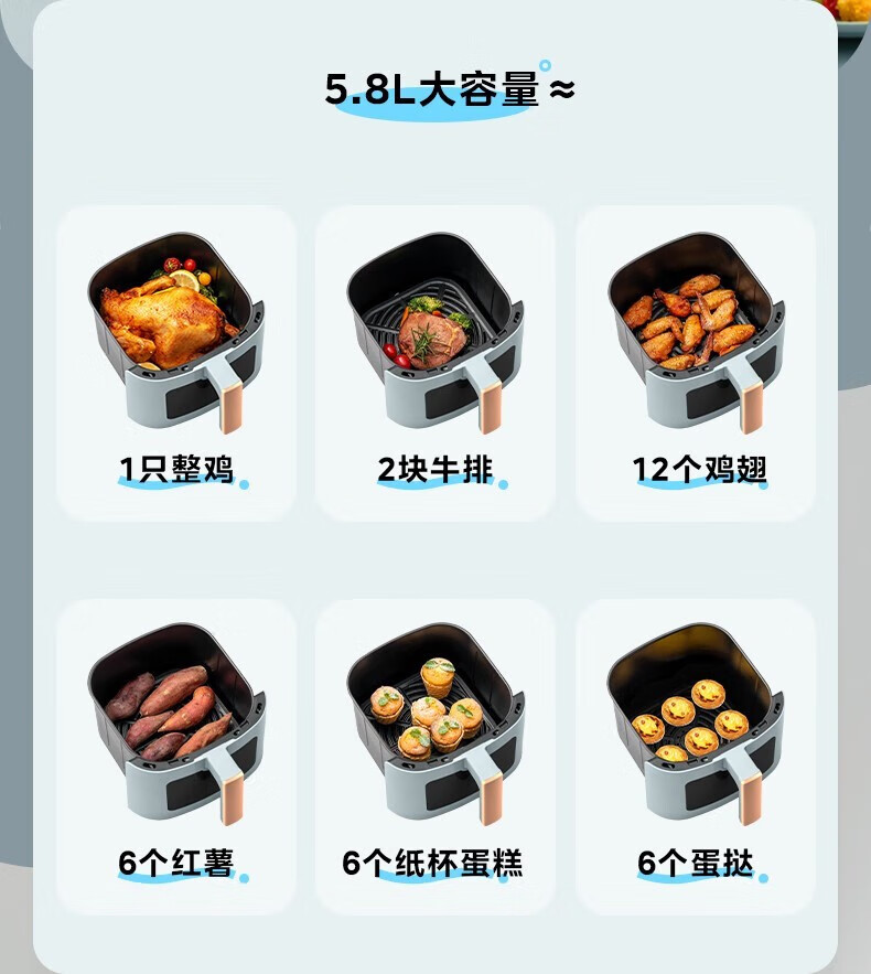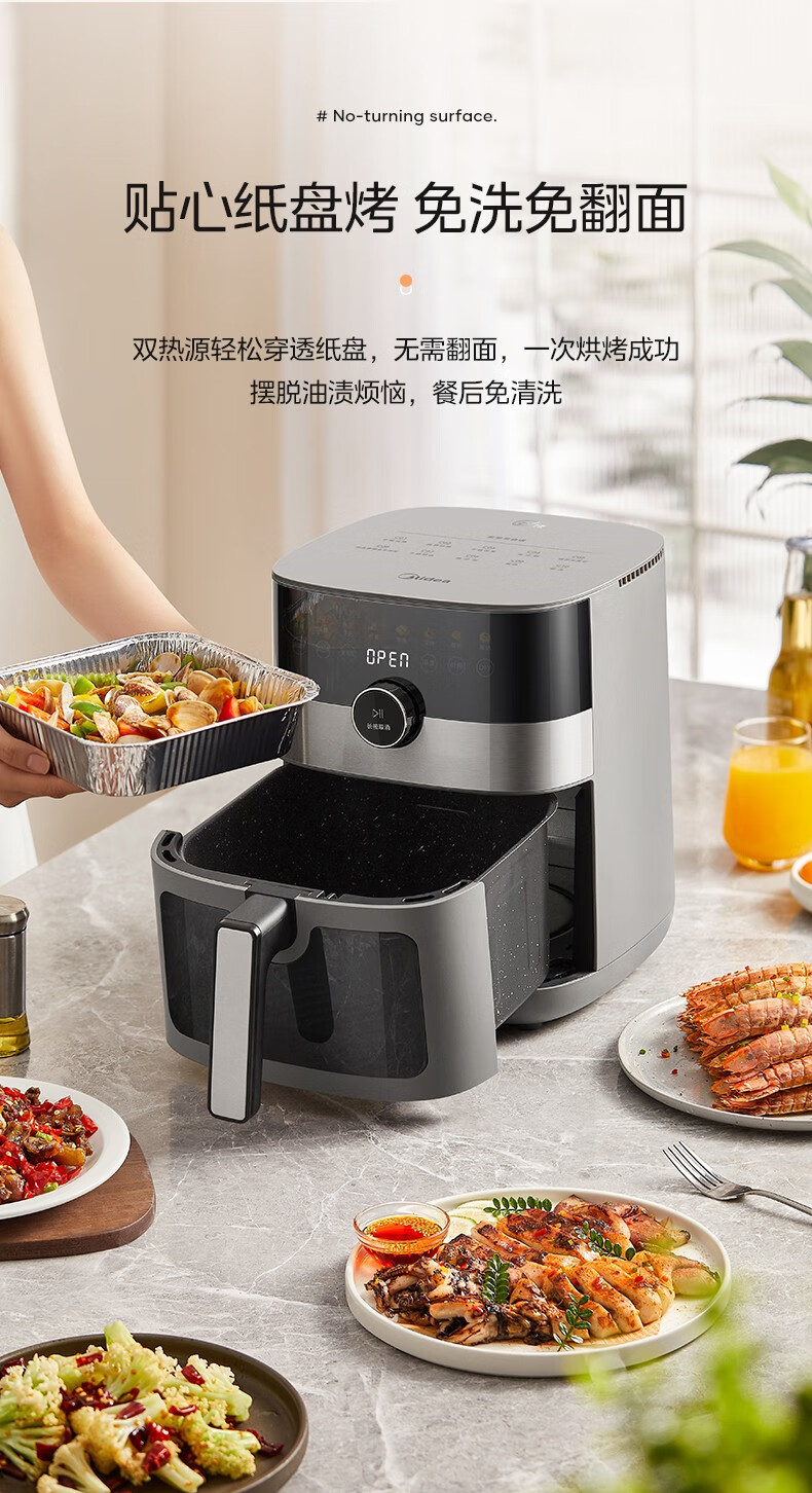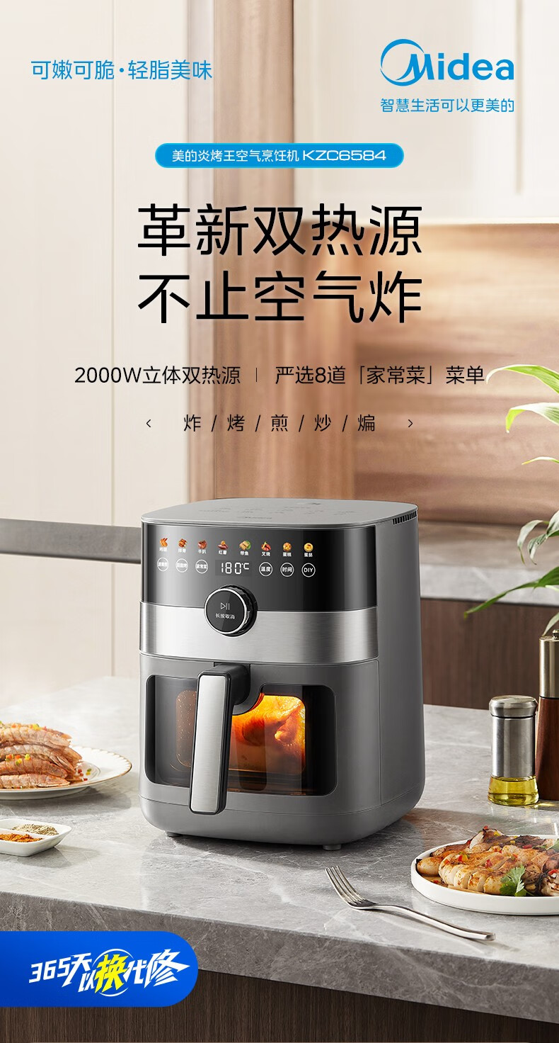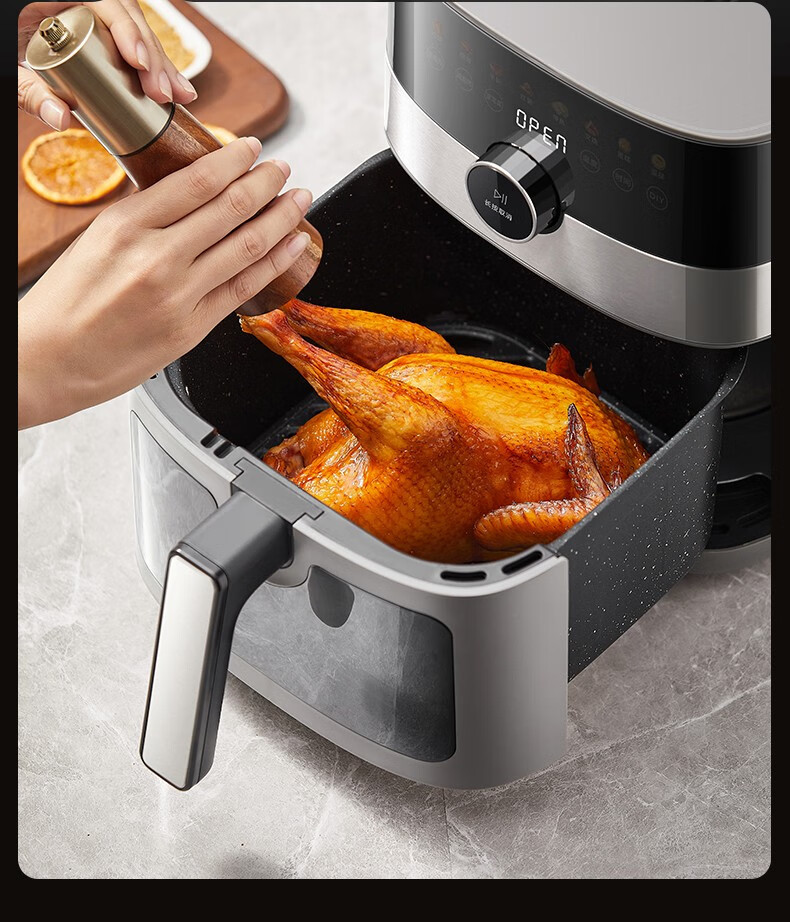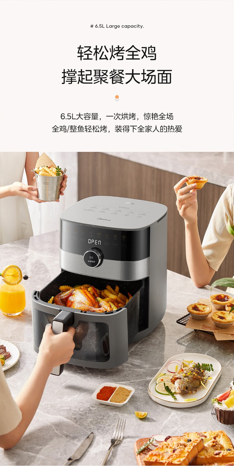 美的(Midea) 空气炸锅家用可视化温度时间双控新款智能多功能电气炸锅机大容量薯条机 MF-KZE5881(5.8升可视化窗口)