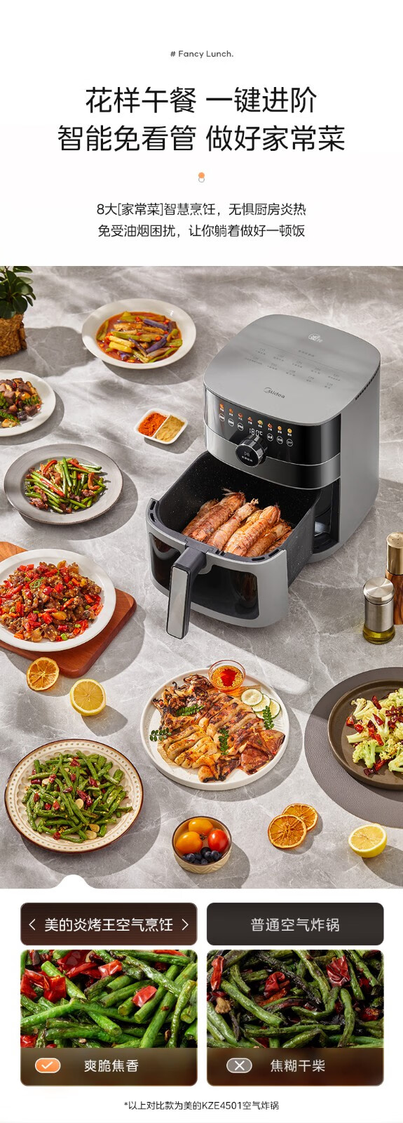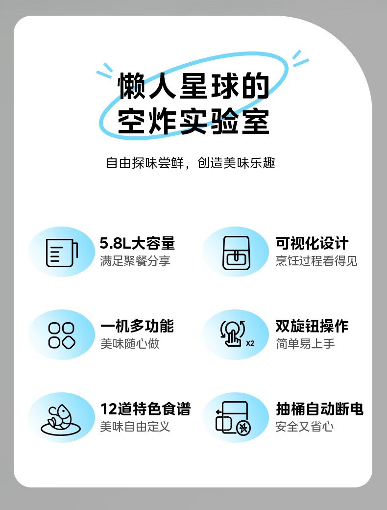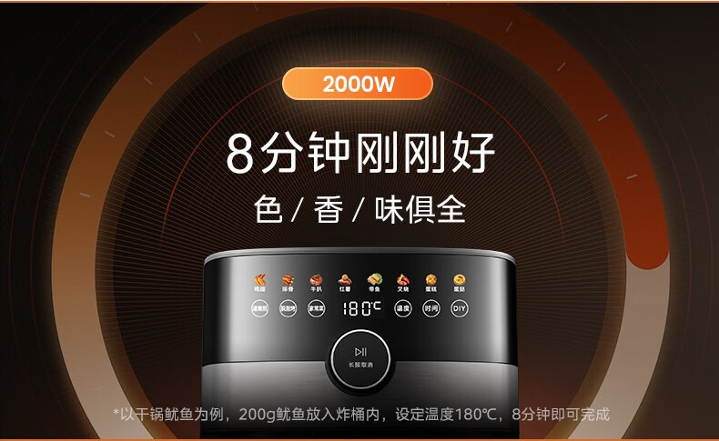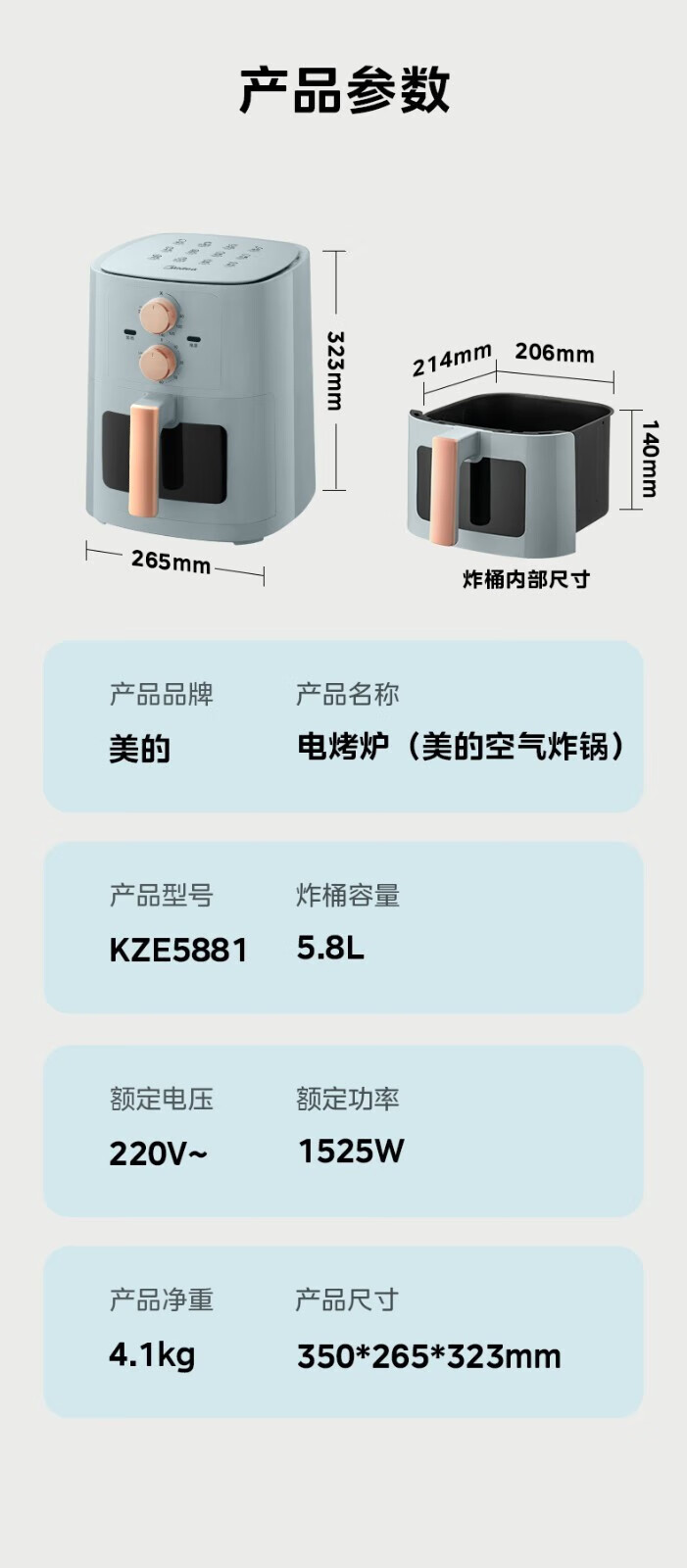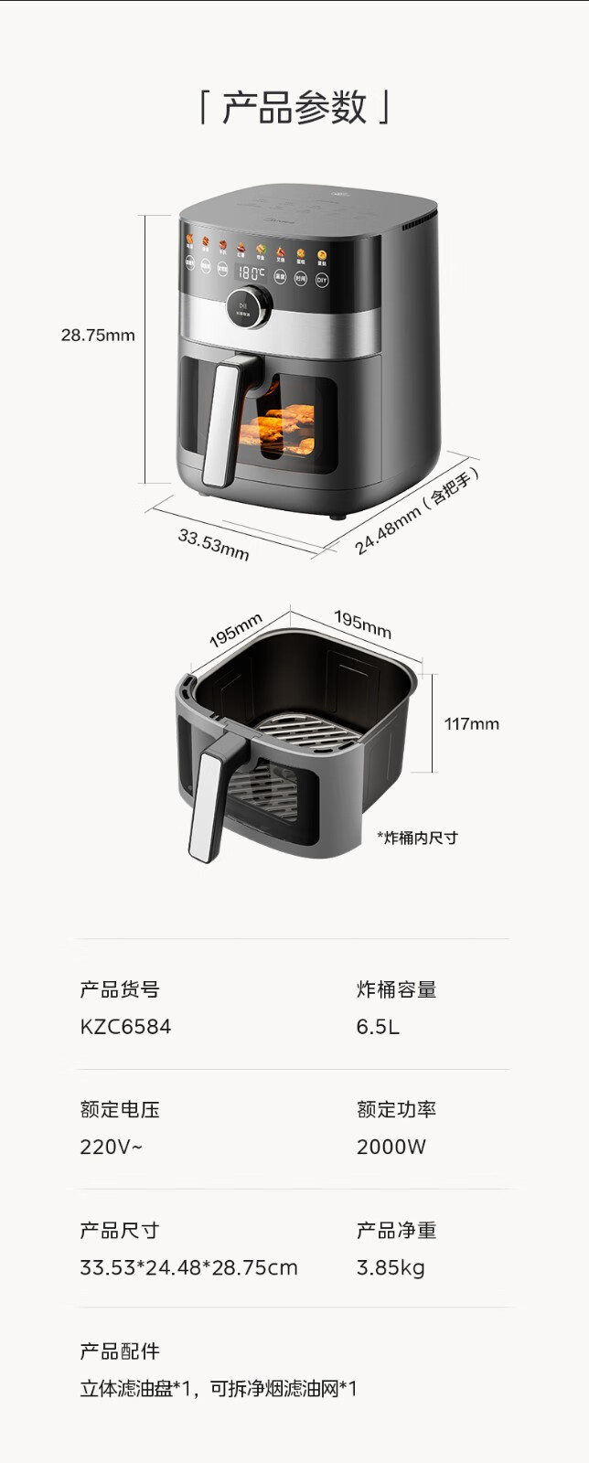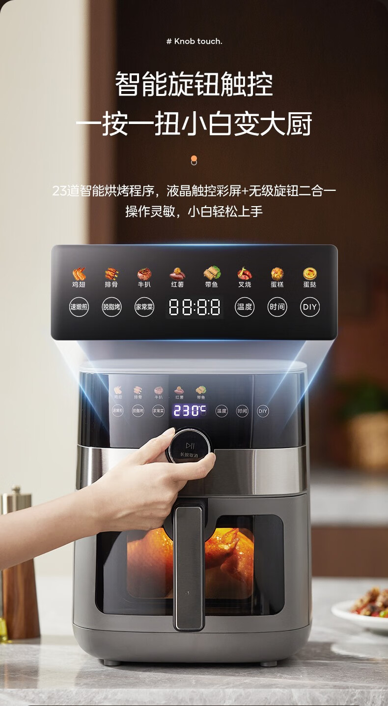 美的(Midea) 空气炸锅家用可视化温度时间双控新款智能多功能电气炸锅机大容量薯条机 MF-KZE5881(5.8升可视化窗口)