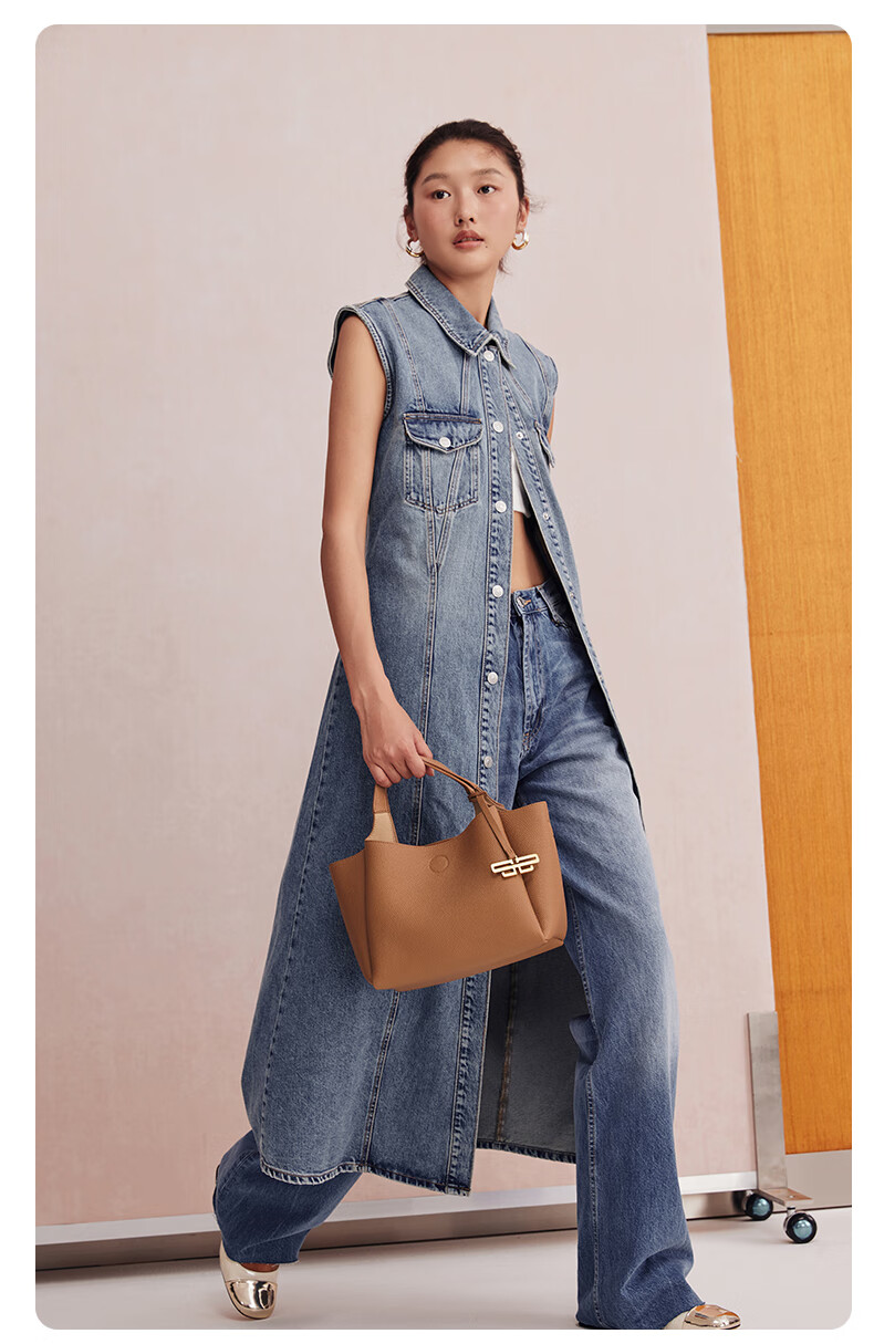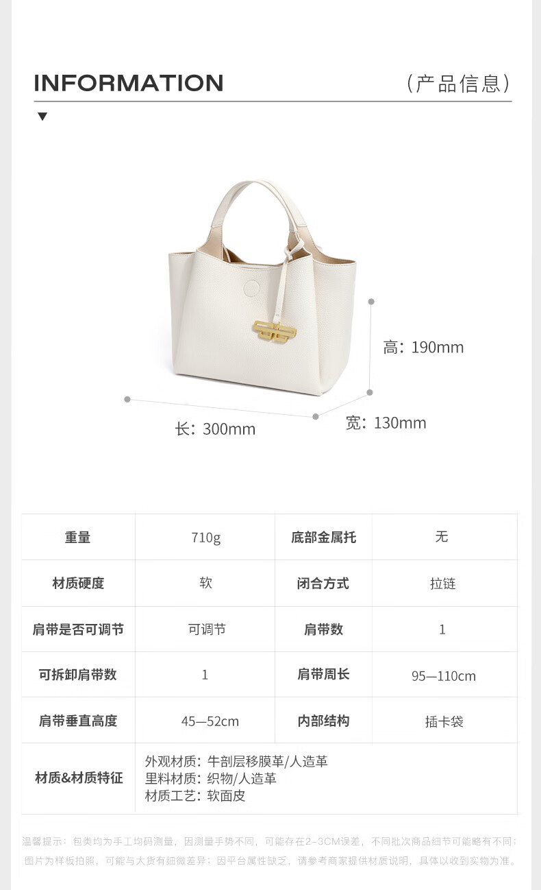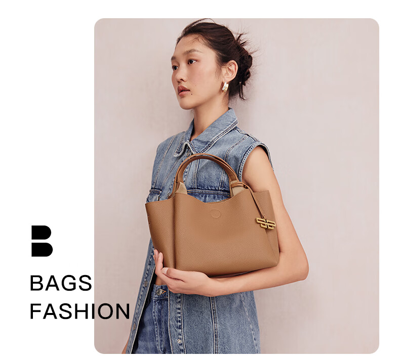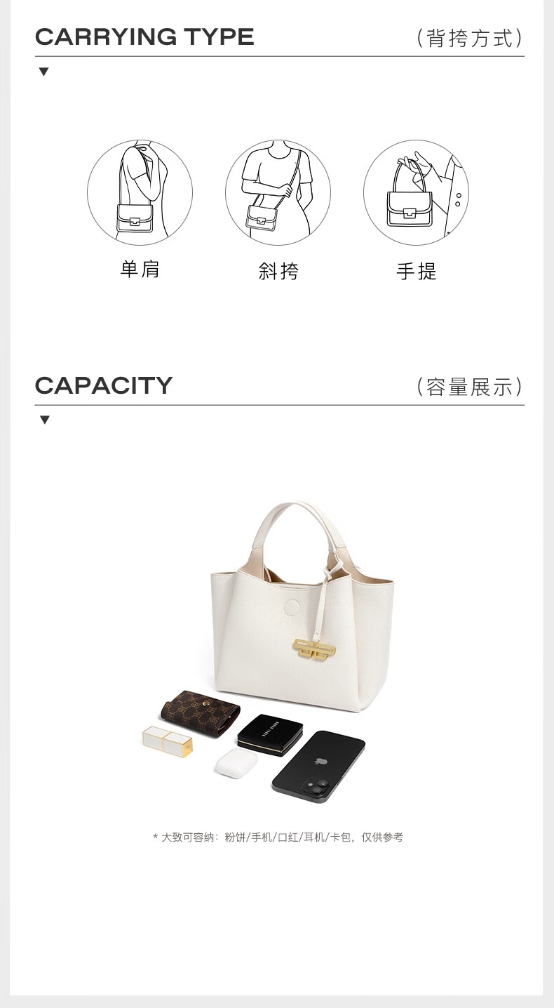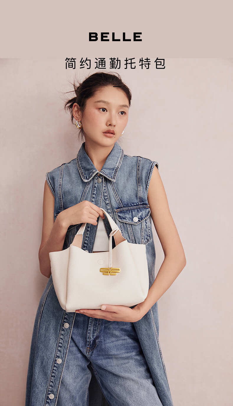 百丽2023秋季新款简约通勤单肩斜挎手提小托特包X9144CX3预售 米色 F