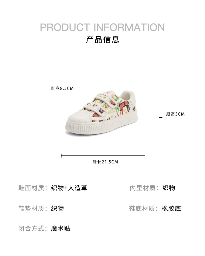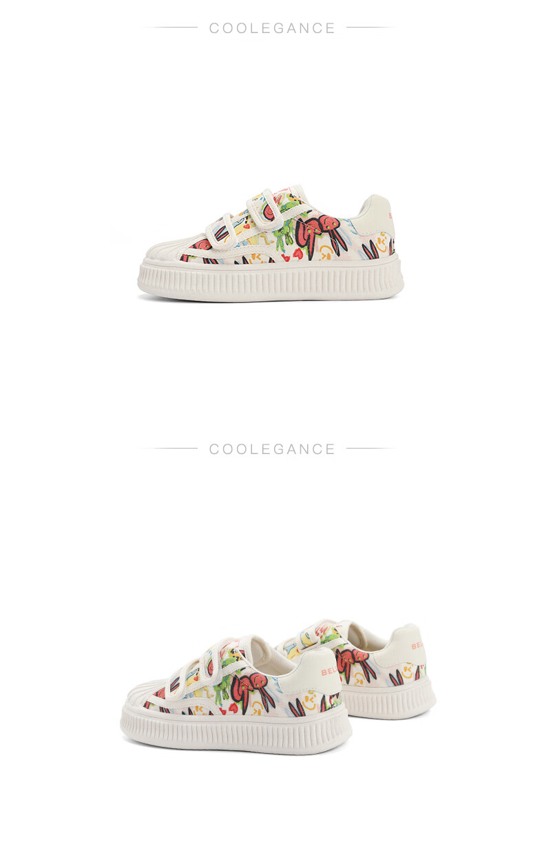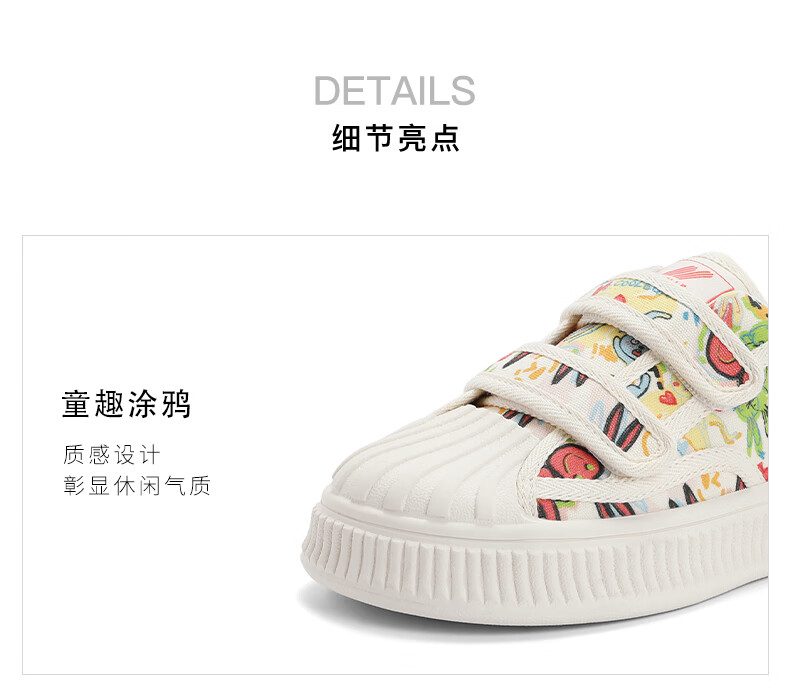 百丽涂鸦帆布鞋童鞋2023秋季新商场同款童趣贝壳头休闲鞋35330C83 米白 32