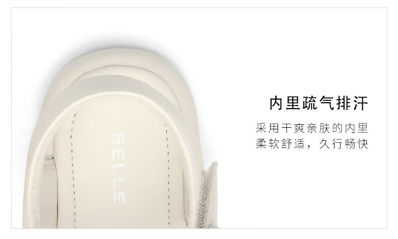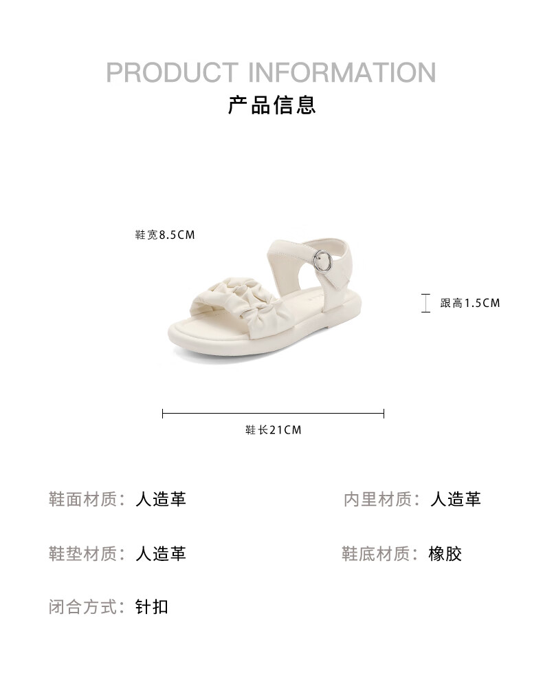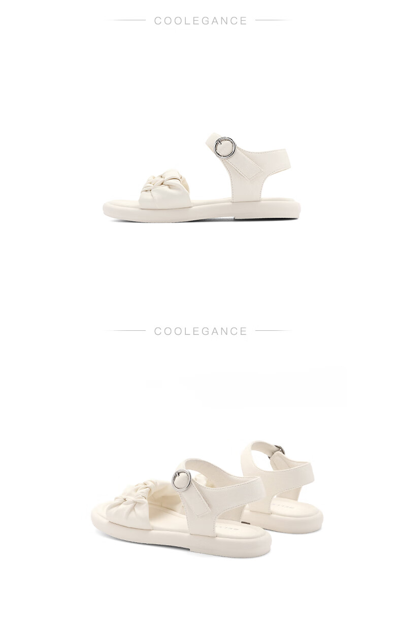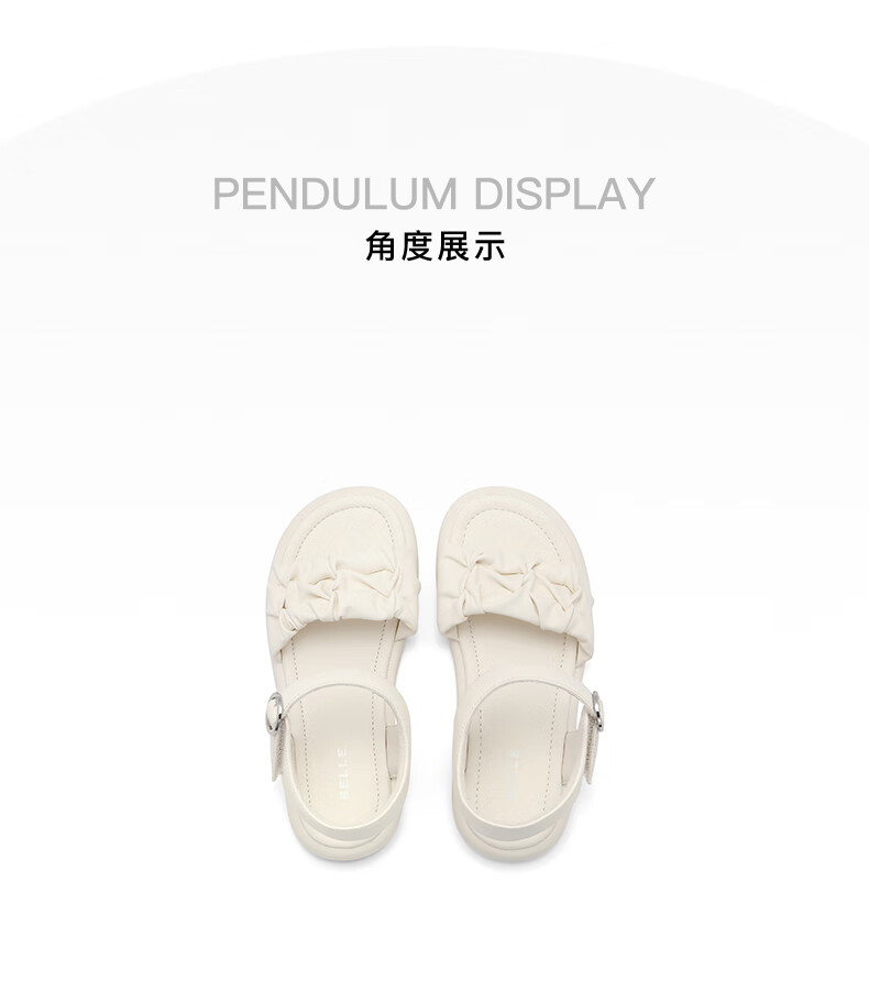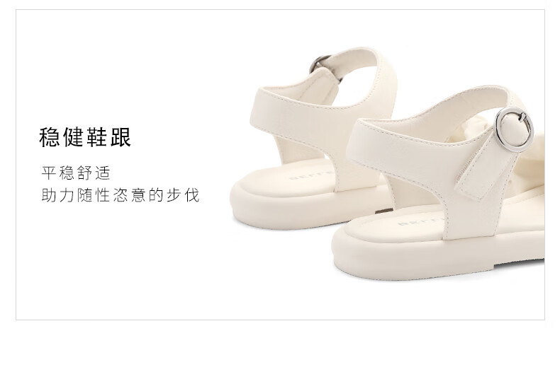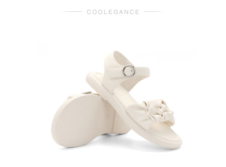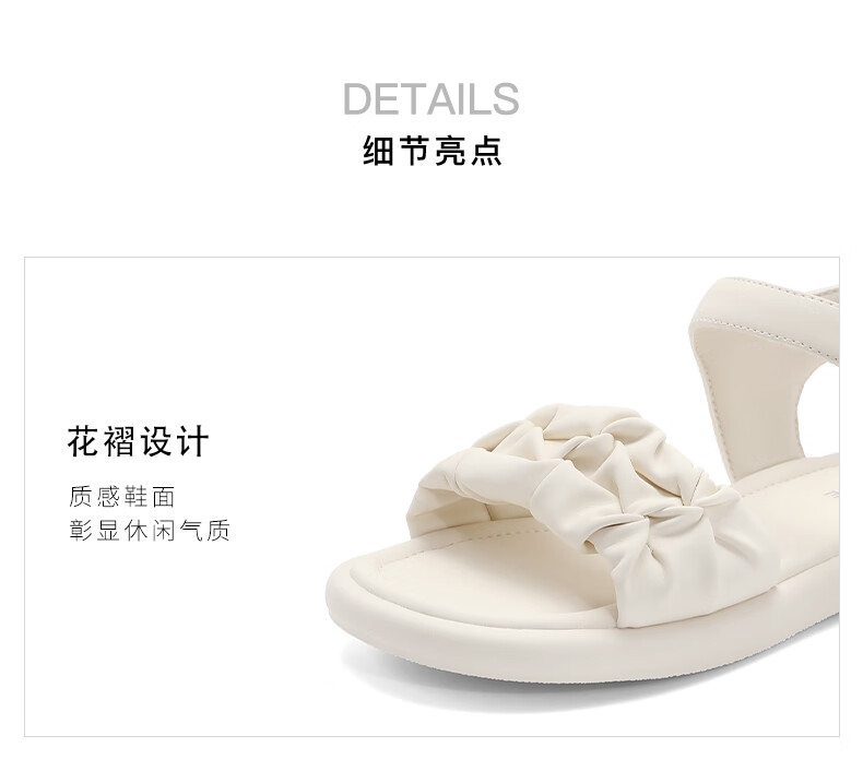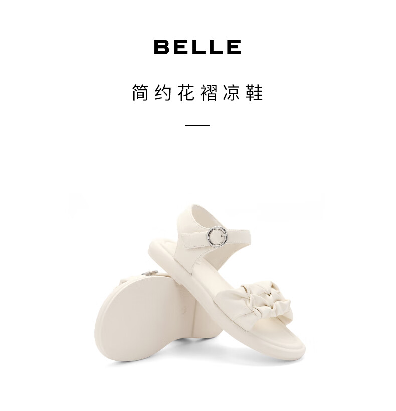 百丽褶皱一字带凉鞋童鞋2023夏季新商场同款简约休闲凉鞋92358B63 米色 32
