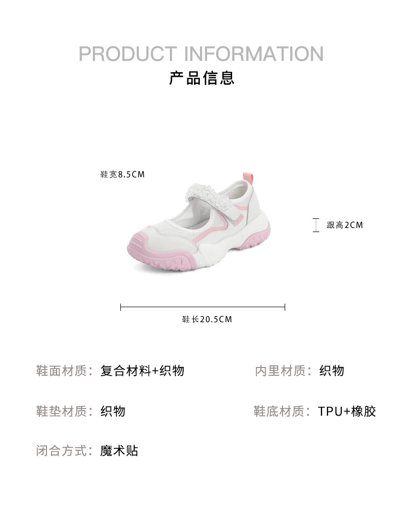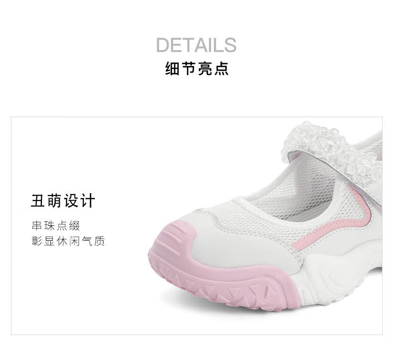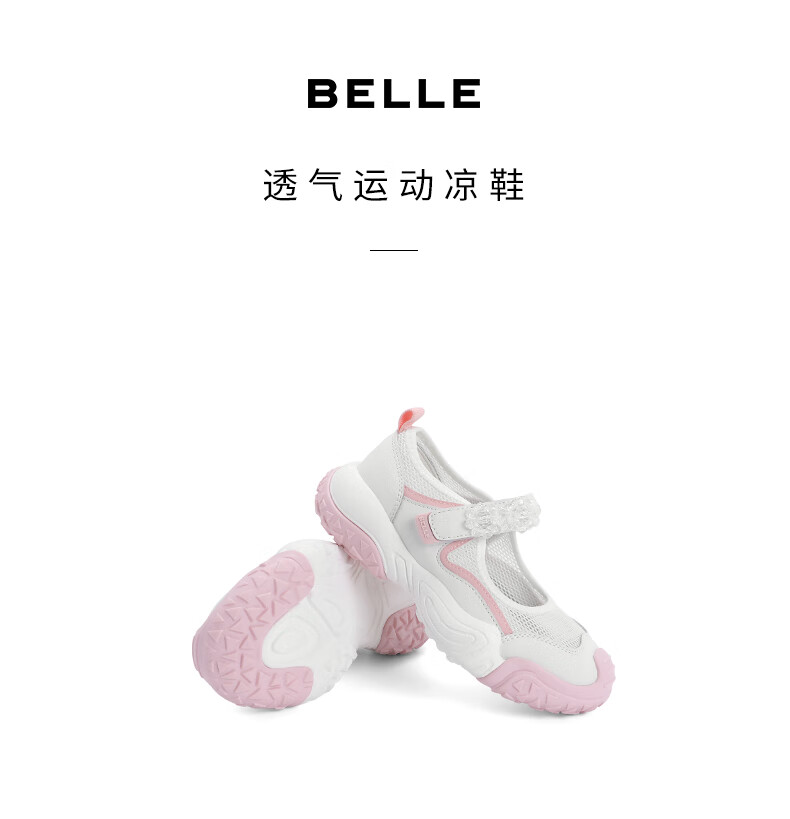 百丽丑萌运动鞋童鞋2023夏季新商场同款透气魔术贴凉鞋A2330B83 白色 28