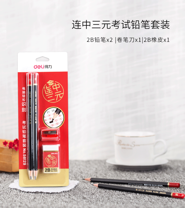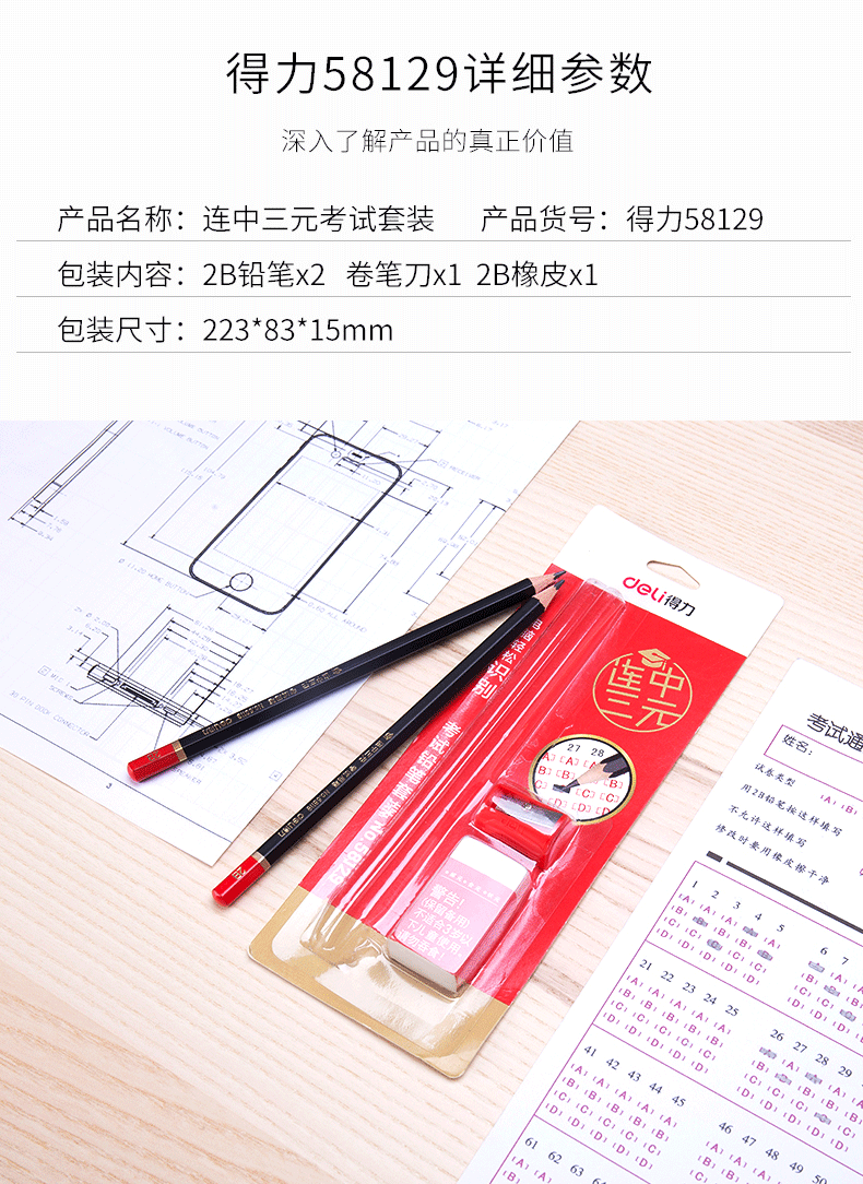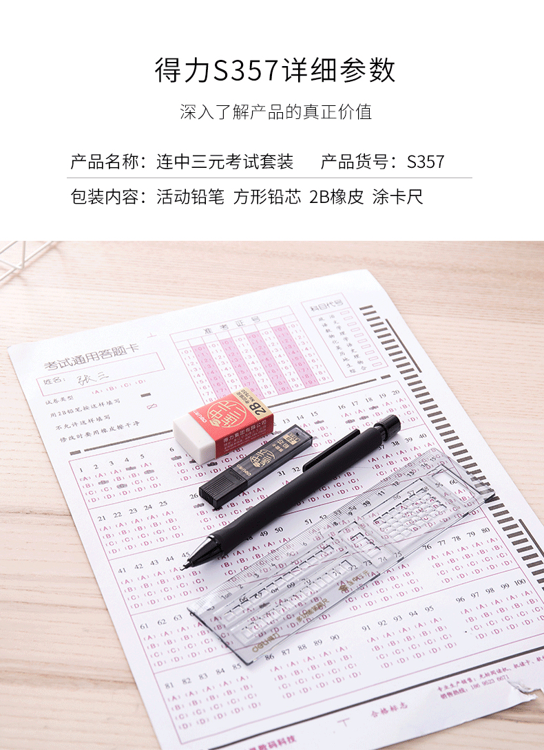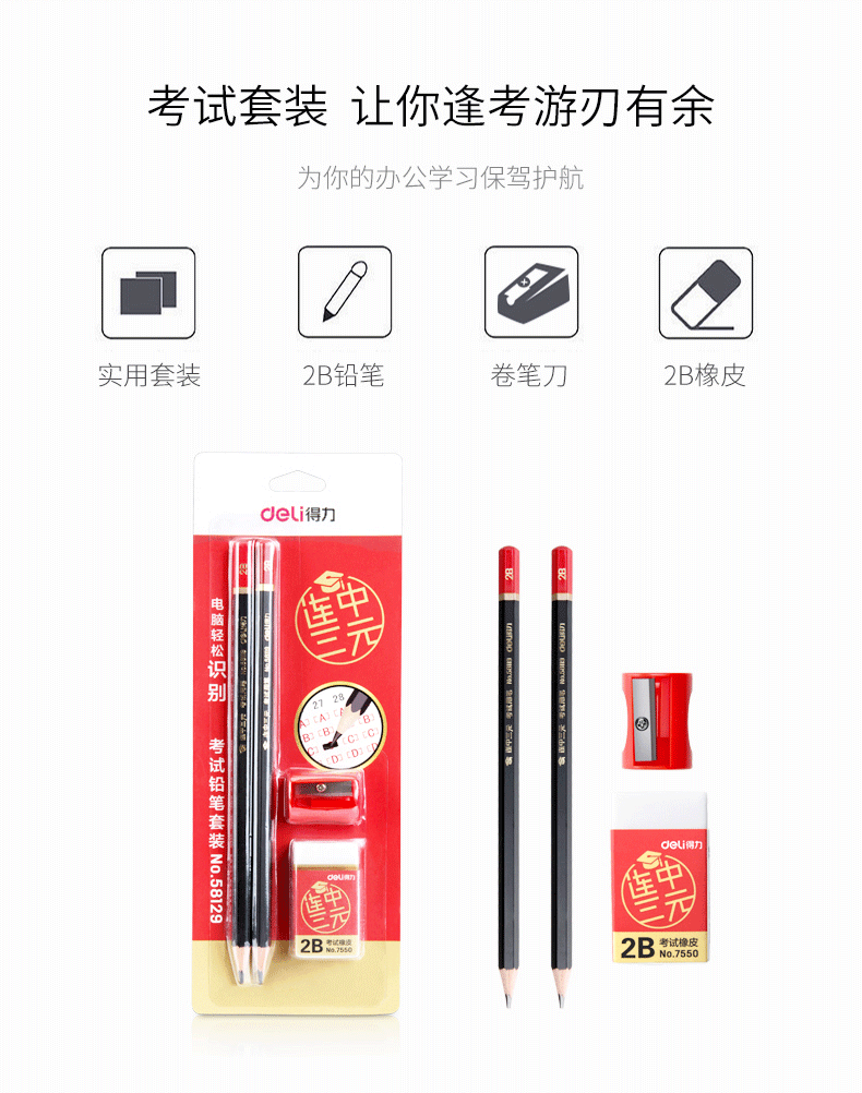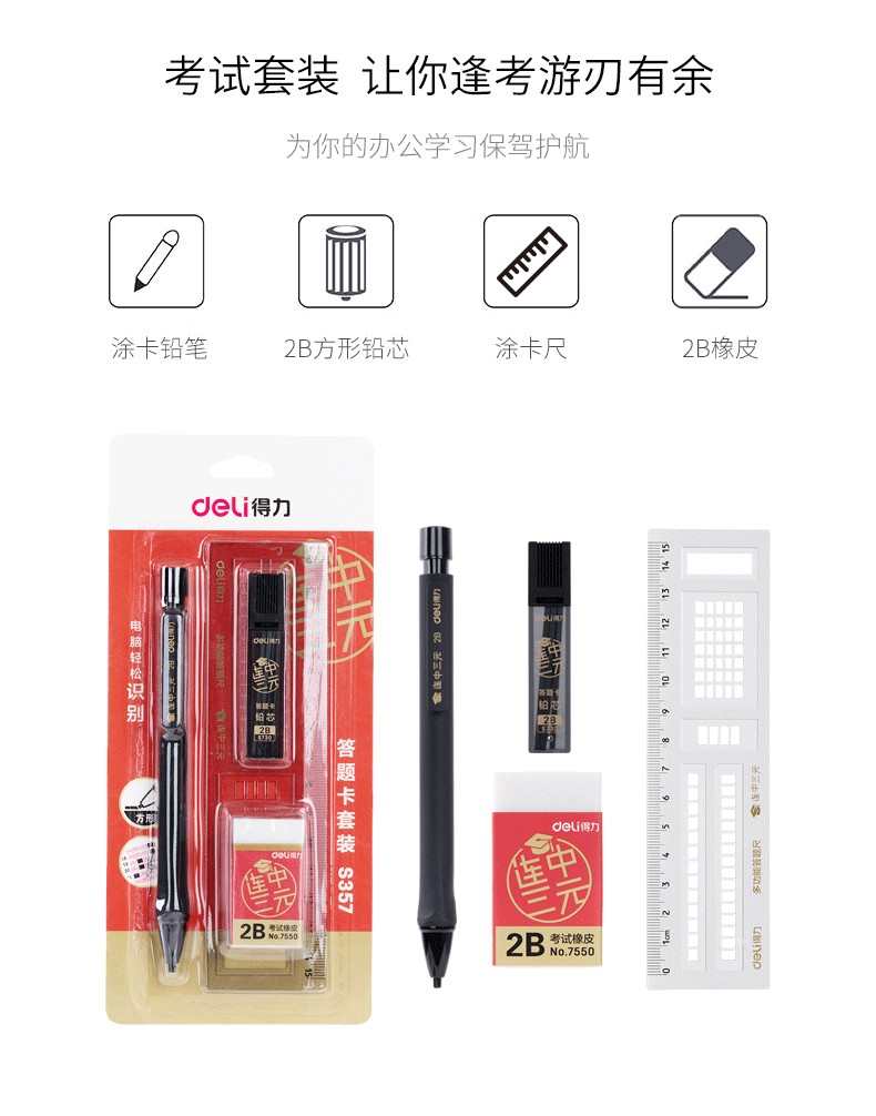 得力(deli)连中三元考试活动铅笔涂卡铅笔套装涂卡笔 高考加油礼物 考试专用文具套装 【12件套】中性笔+替芯+答题卡套装+套尺