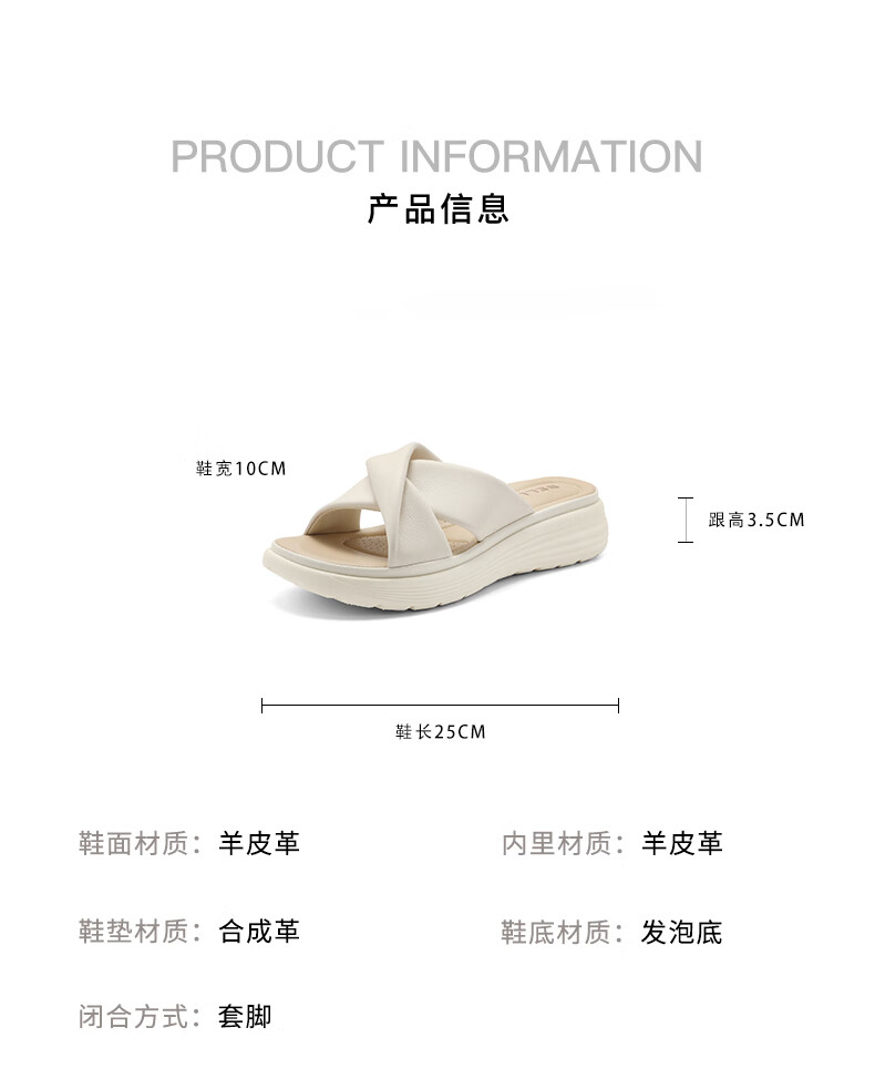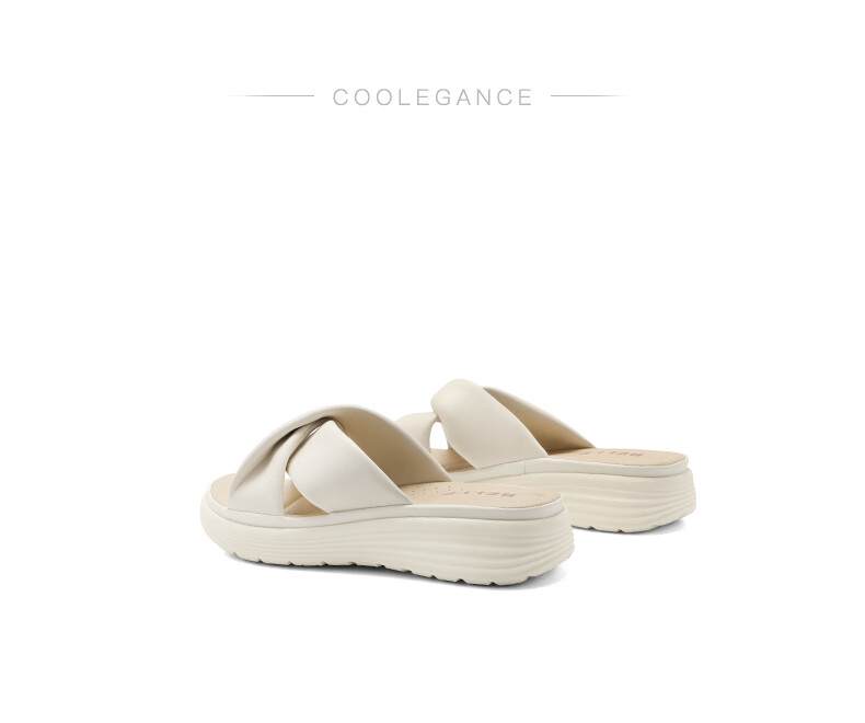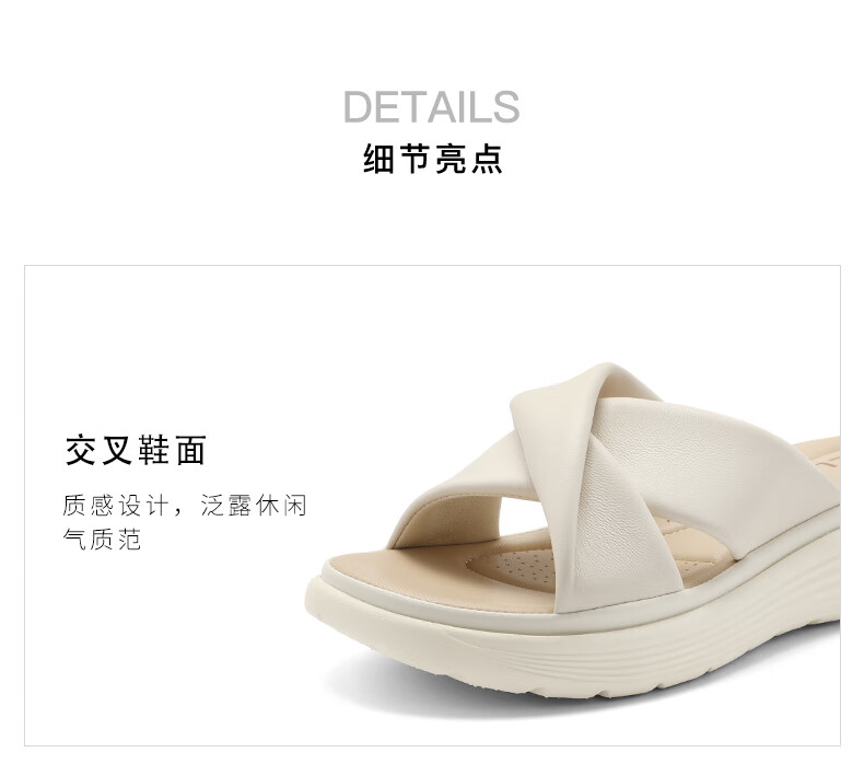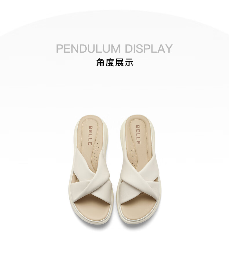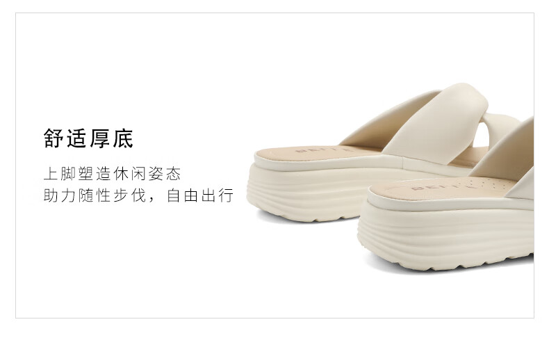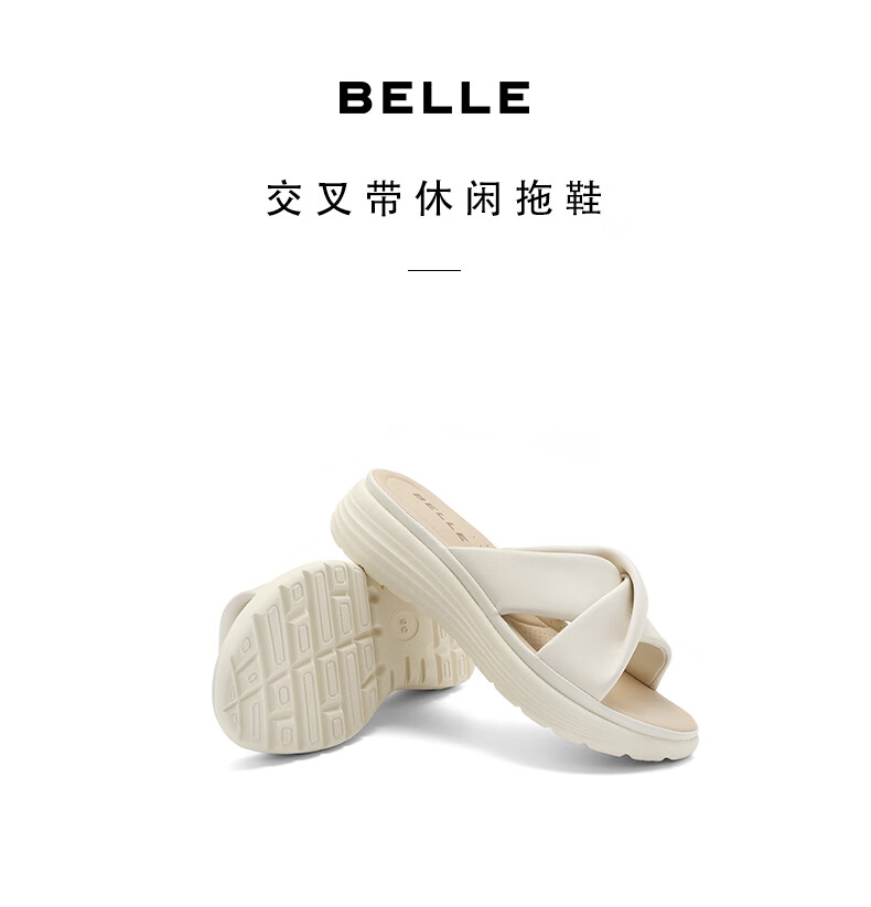 百丽交叉带休闲拖鞋女2023夏季新商场同款舒适凉拖Z9M1DBT3 米白 35