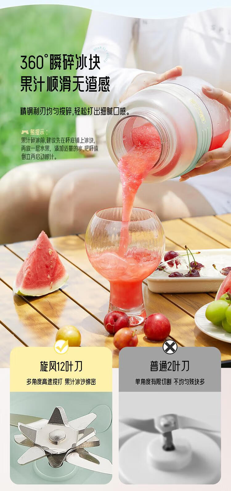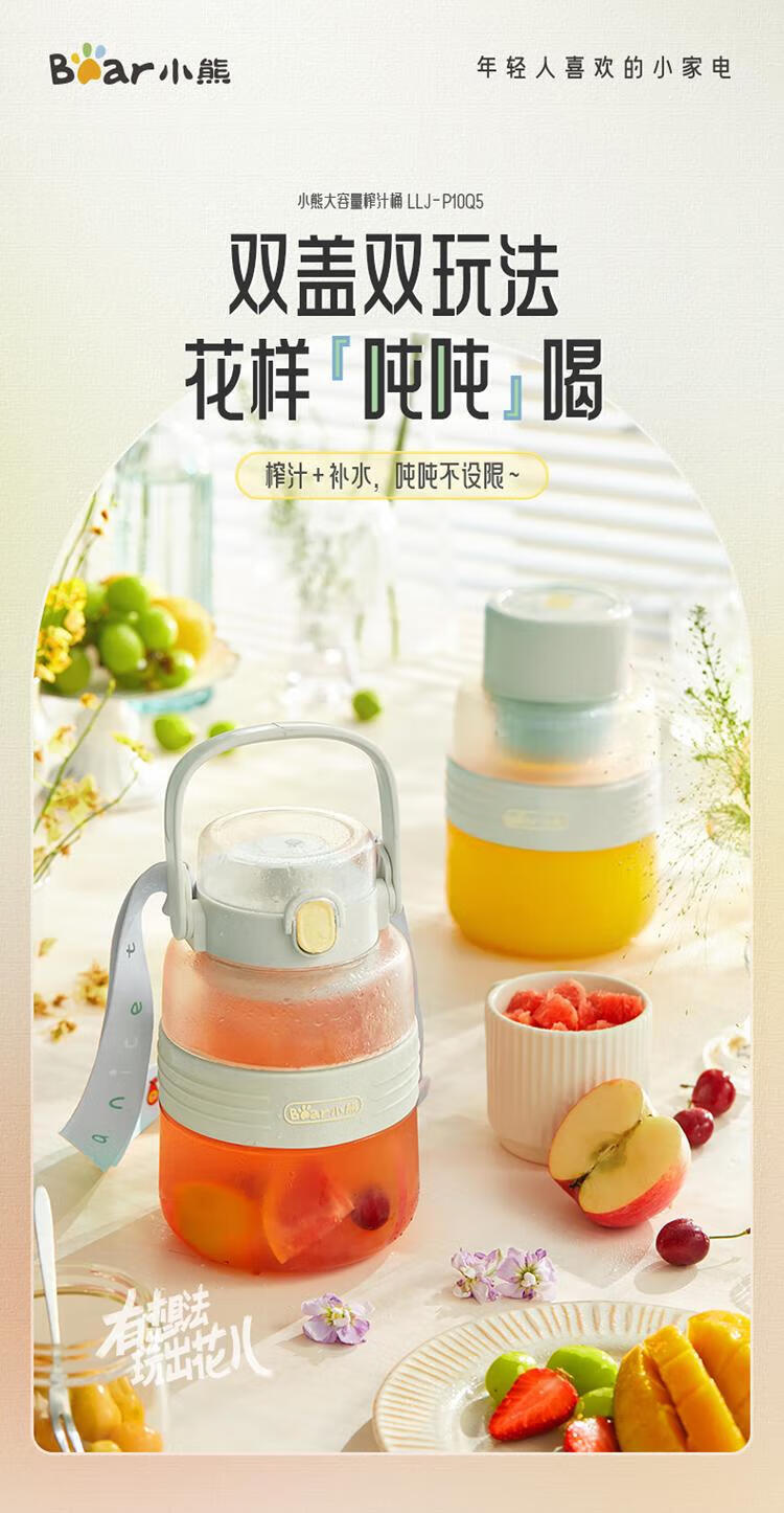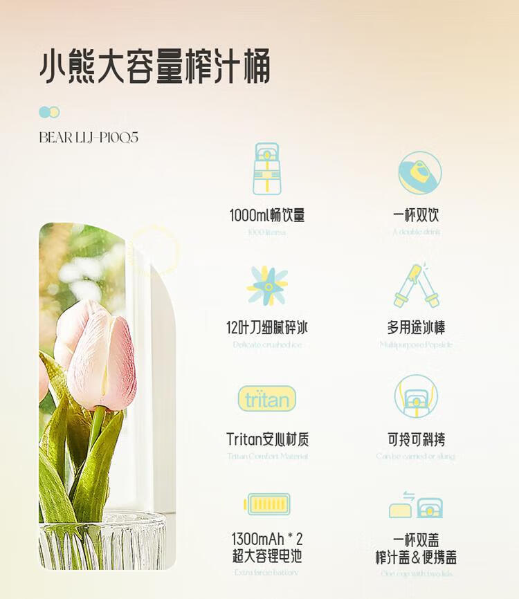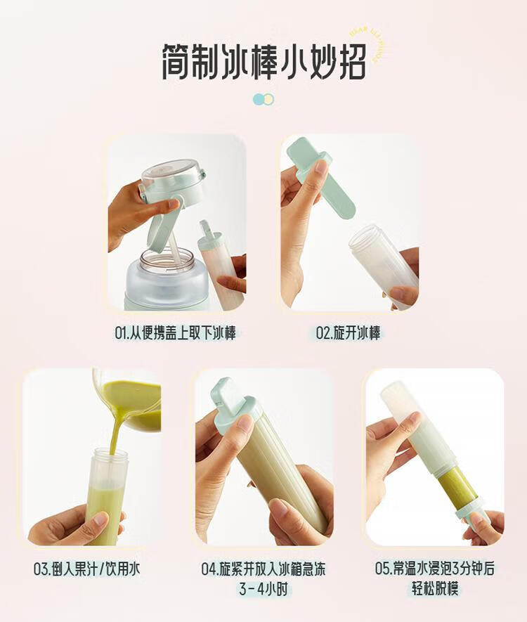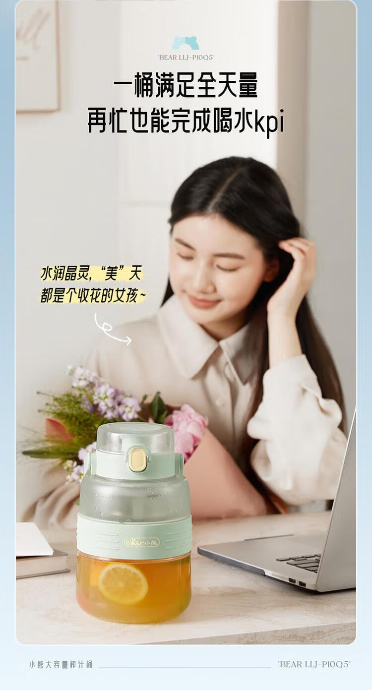 小熊(Bear)榨汁杯 家用便携式榨汁机 果汁机 秒碎冰打汁机 迷你小型果汁杯吨吨杯 LLJ-P10Q5【ZMD安心系列】