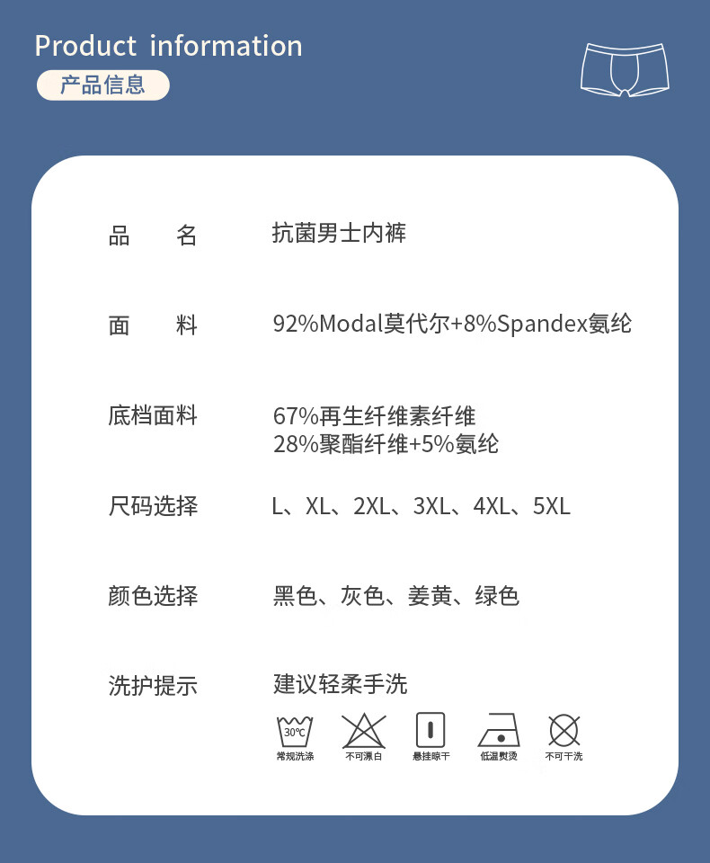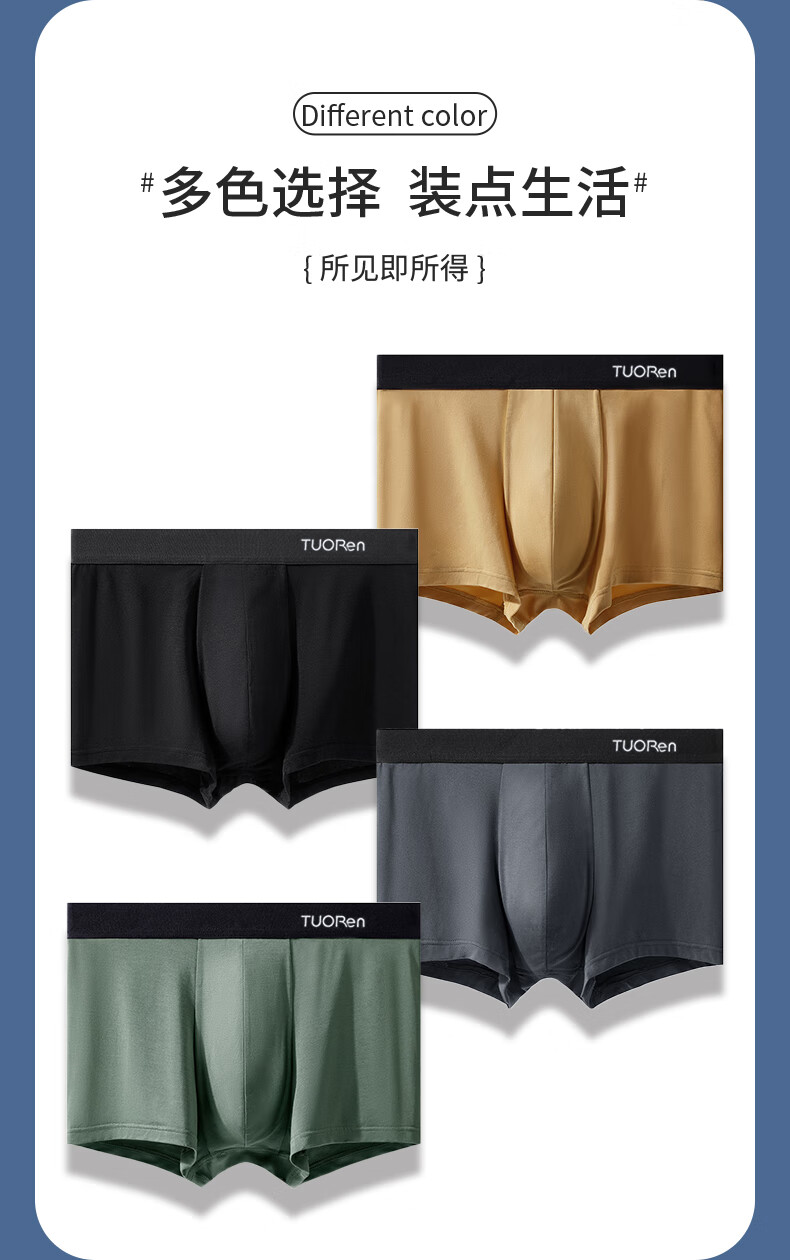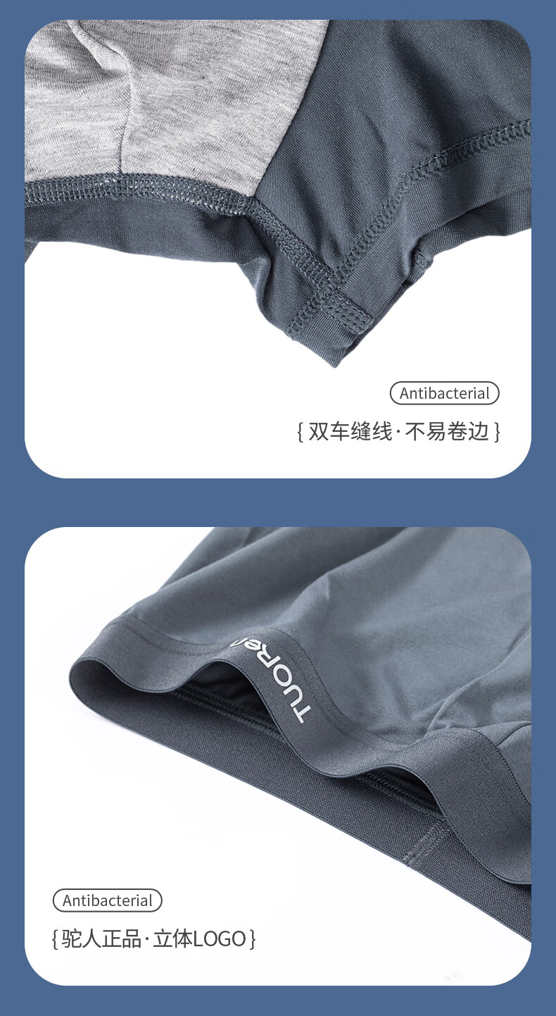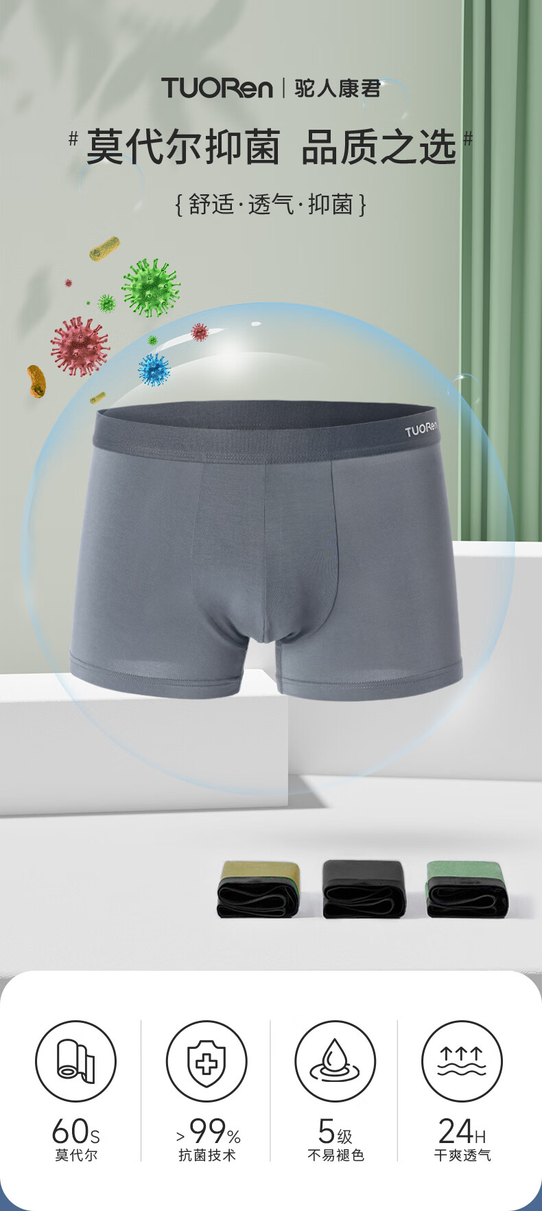 TUORen驼人康君内裤男宽松男士内裤莫代尔夏季舒爽抑菌内裆无异味4条装 黑+灰+黄+绿 5XL