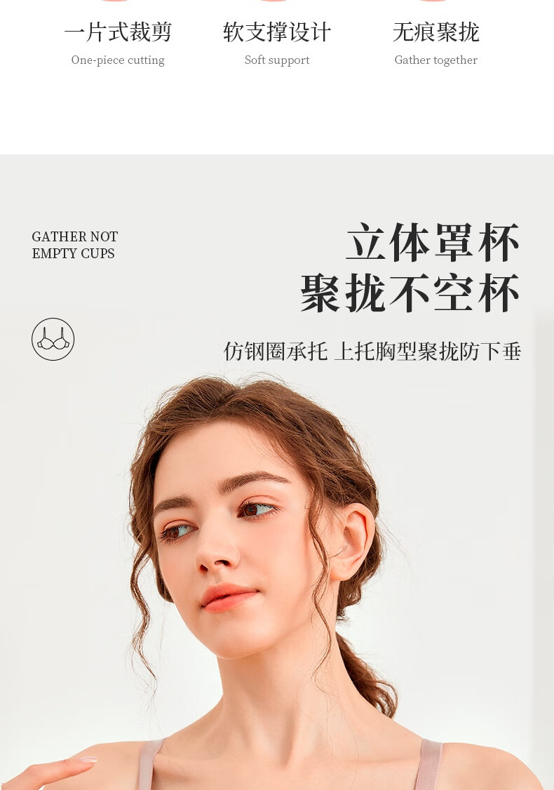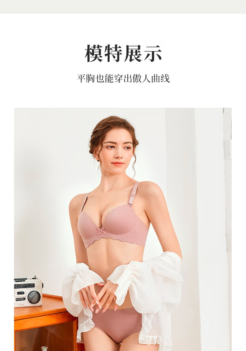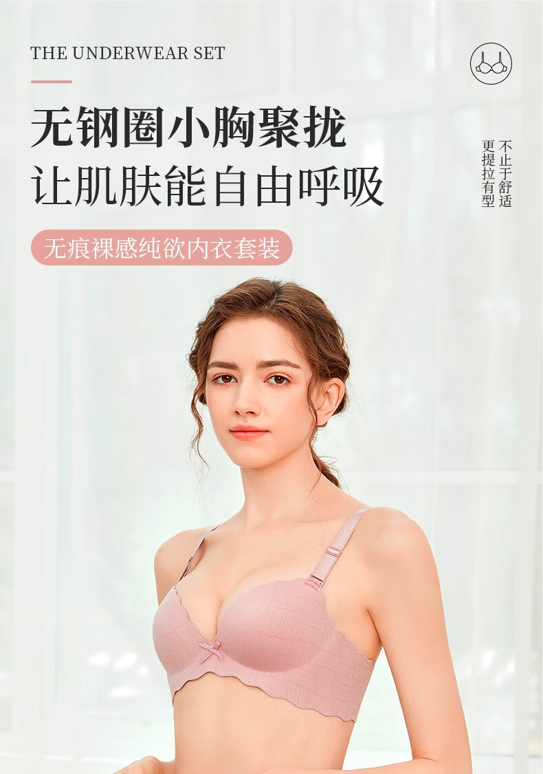驼人康君内衣女一片式无痕文胸套装无钢圈薄款小胸聚拢承托胸罩送女友礼物 豆沙粉 70AB