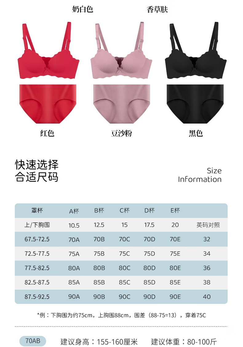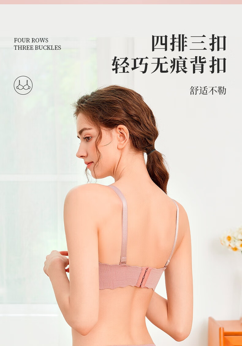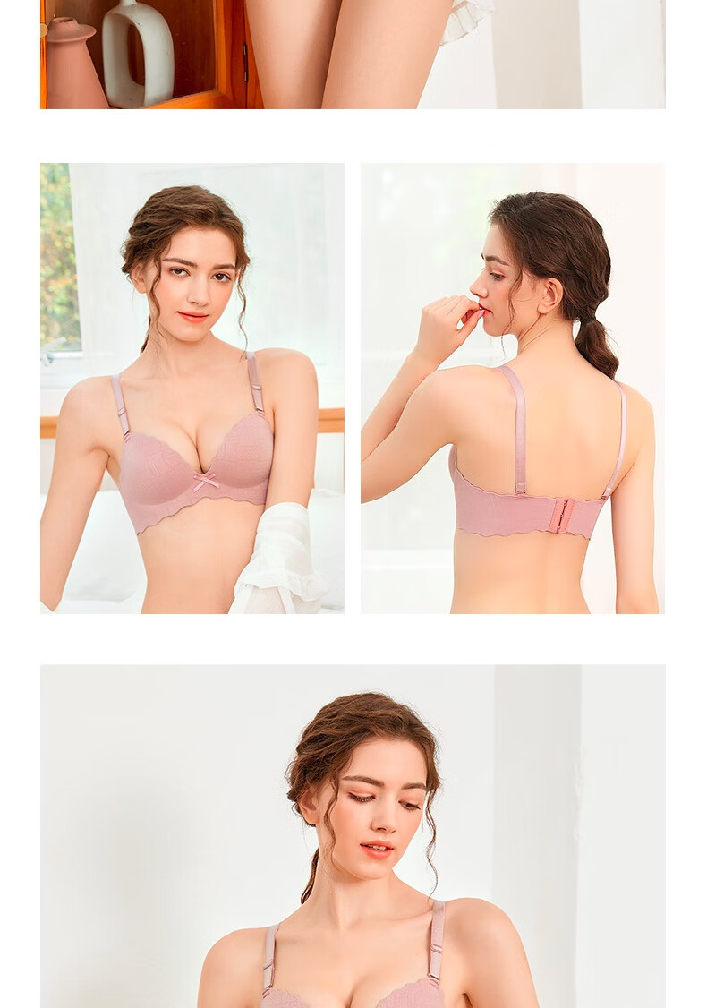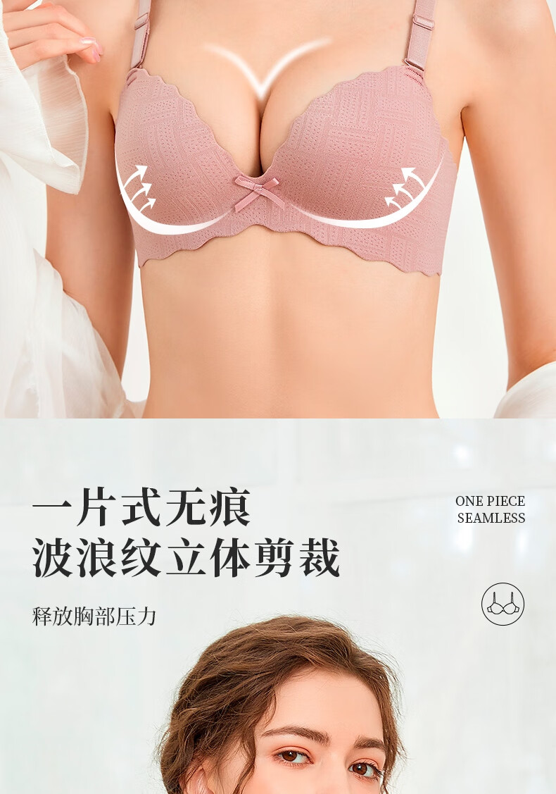 驼人康君内衣女一片式无痕文胸套装无钢圈薄款小胸聚拢承托胸罩送女友礼物 豆沙粉 70AB