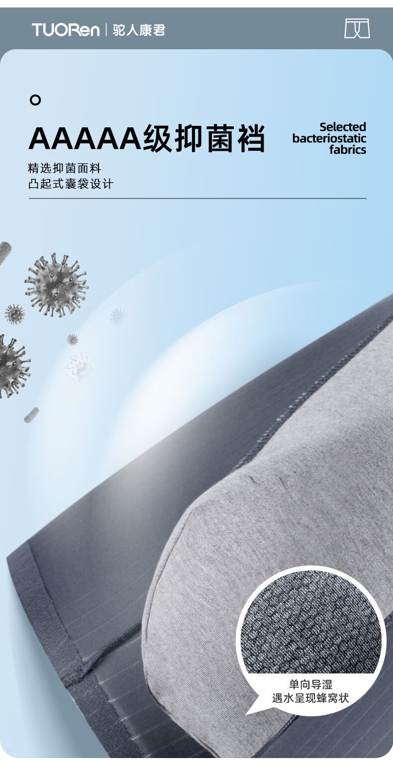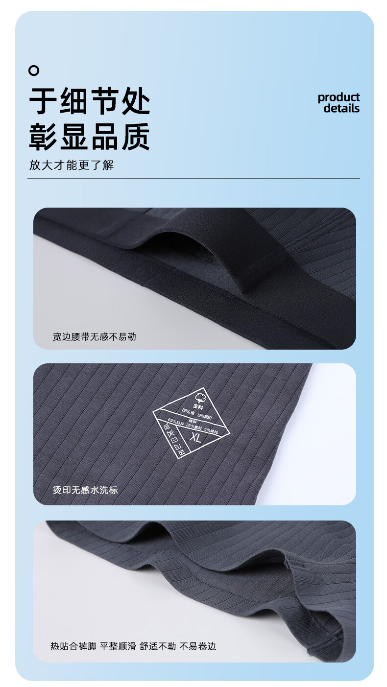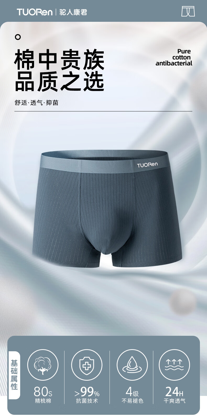 驼人康君男士内裤抽针纺织舒适柔软男士平角裤高棉抑菌内裆4条装送男朋友 中腰抽条款四条装 L