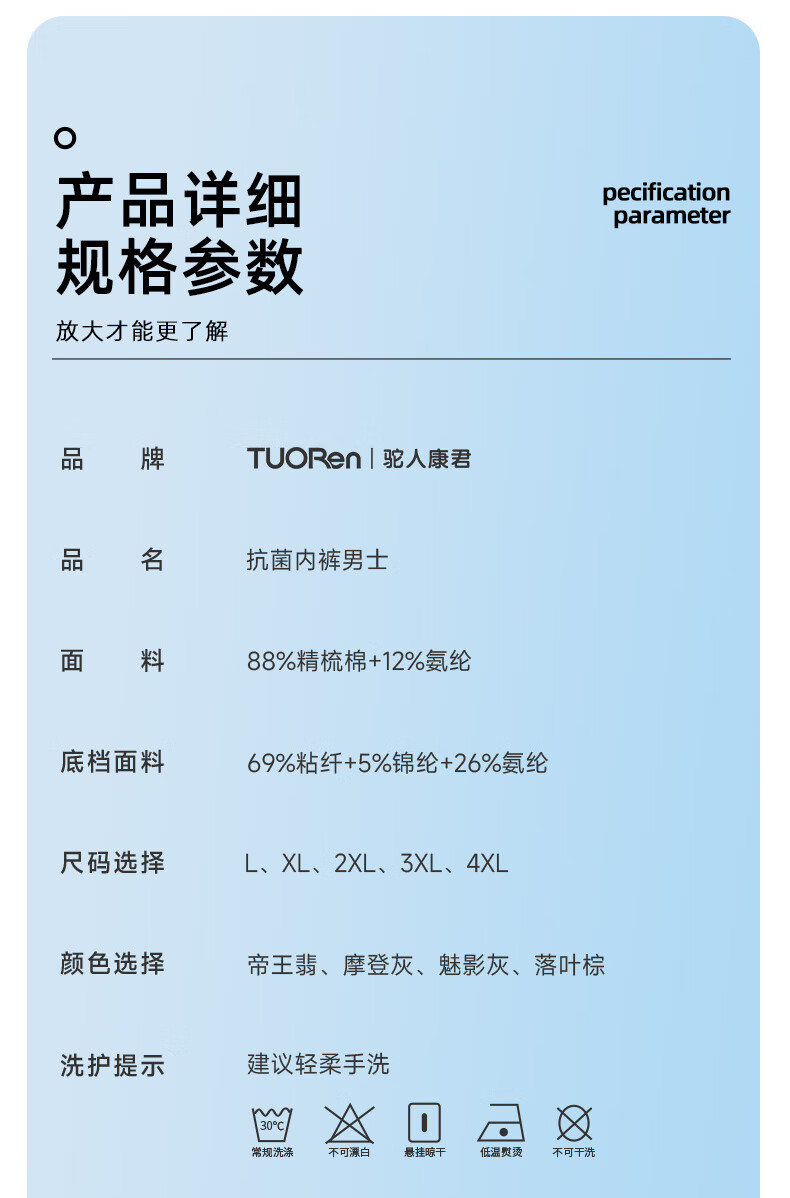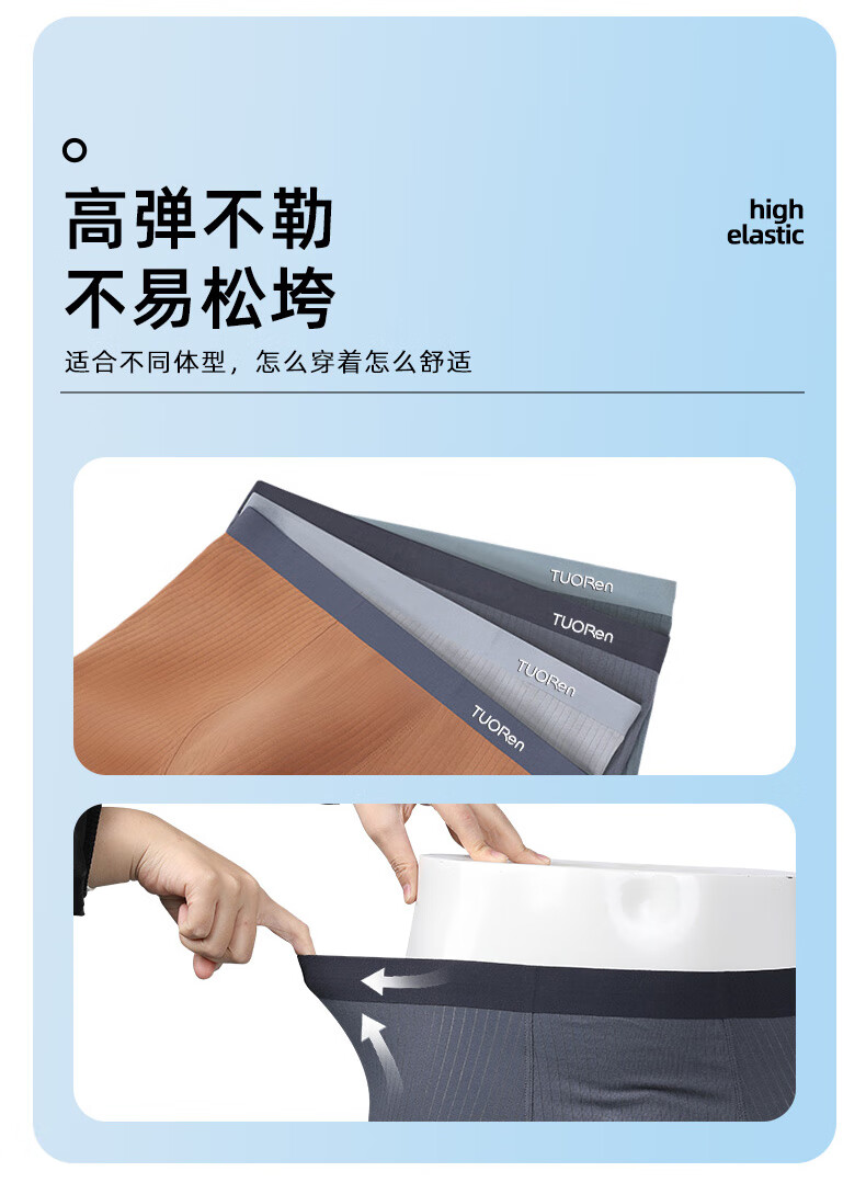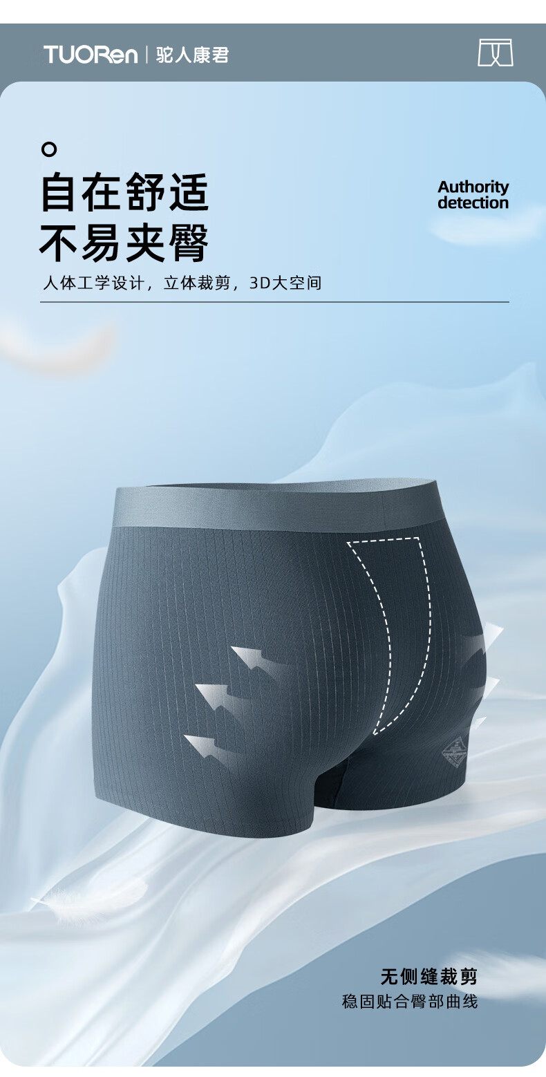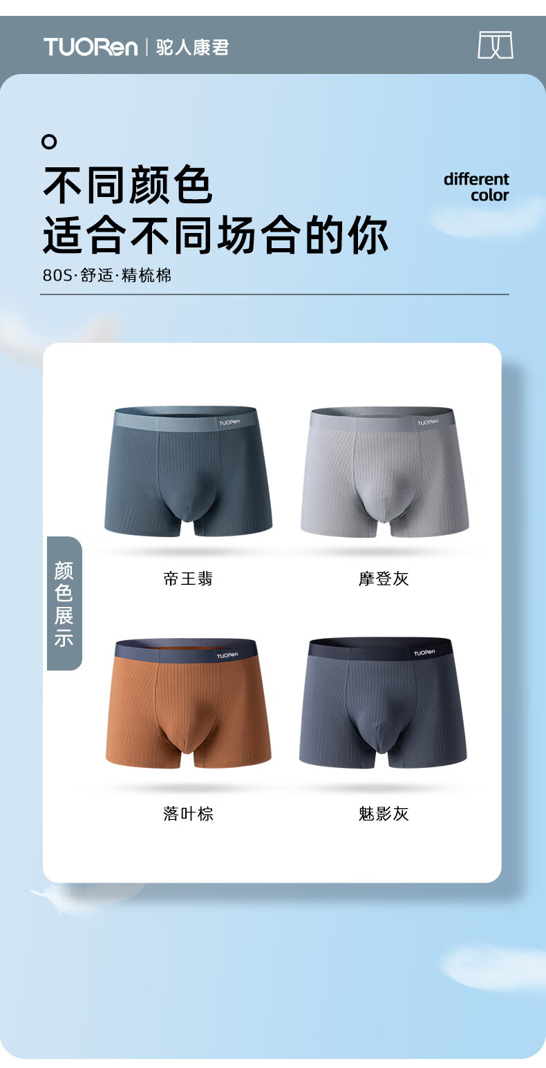 驼人康君男士内裤抽针纺织舒适柔软男士平角裤高棉抑菌内裆4条装送男朋友 中腰抽条款四条装 L