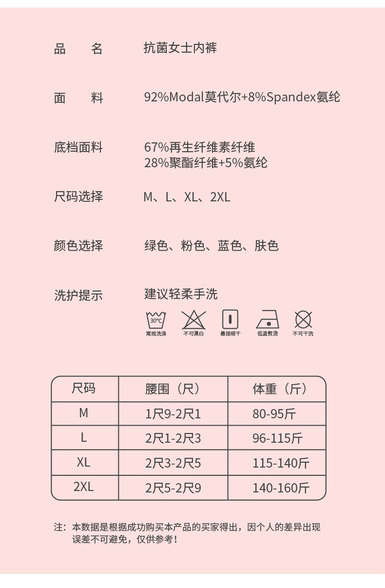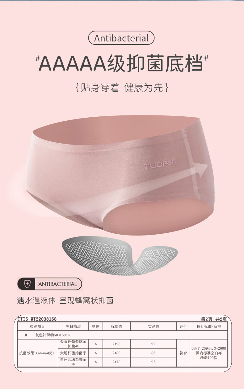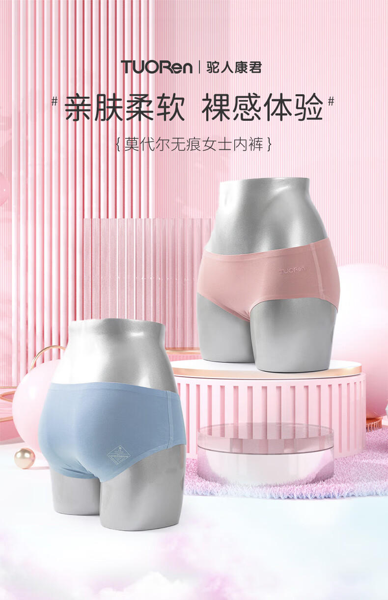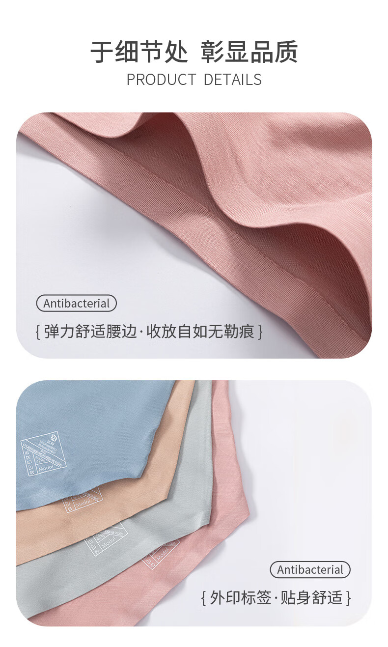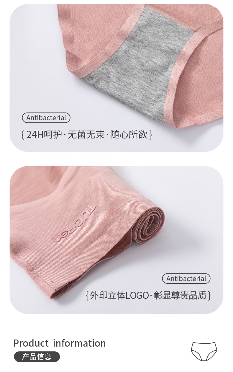 TUORen驼人康君女莫代尔无痕内裤5A抗菌女士内裤棉质底档舒适不勒4条装 四个颜色各一条 XXL