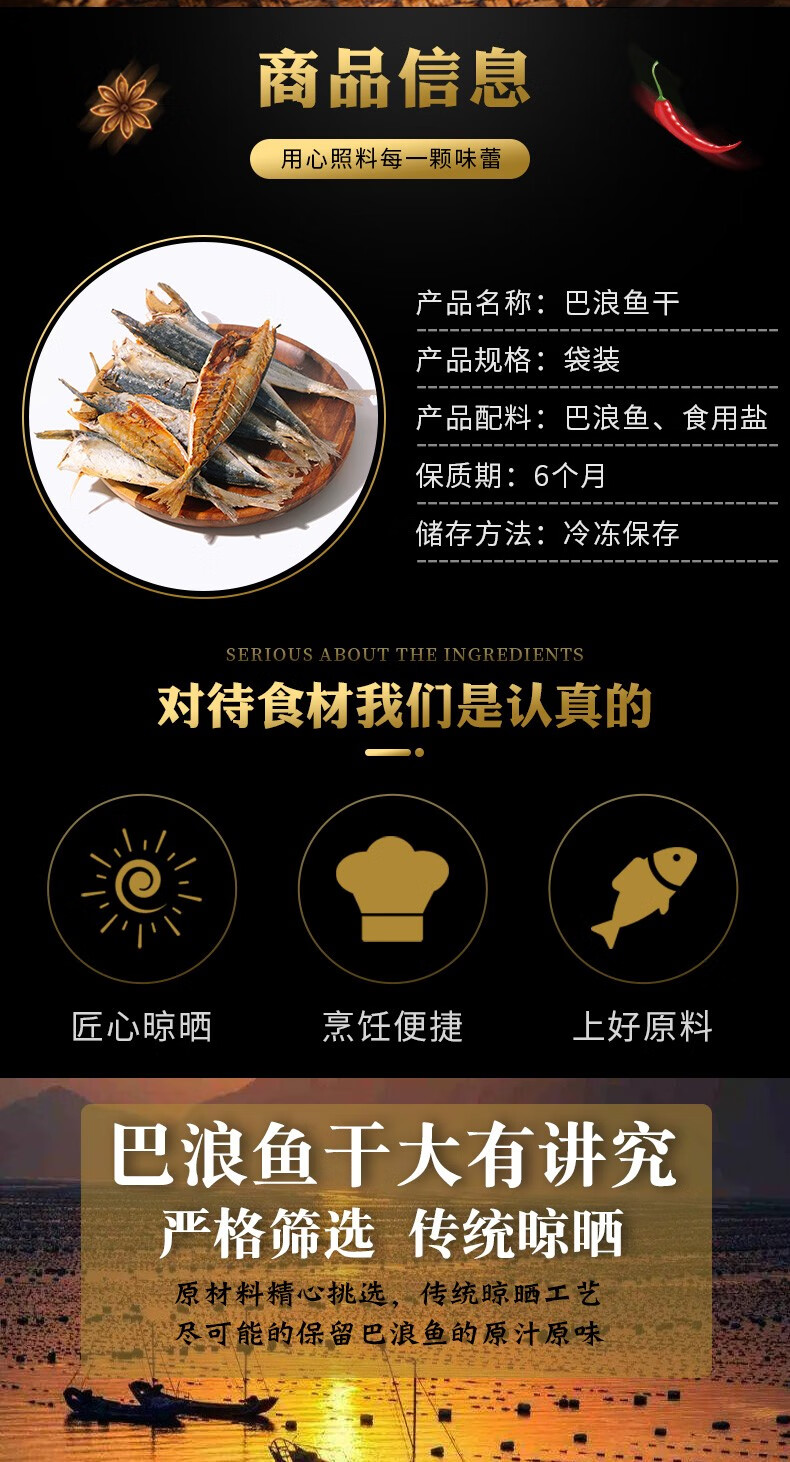 海佳晟福建特产巴浪鱼干咸鱼干货海鱼熟大小鱼干海鲜肉多刺少半成品1斤 巴浪鱼干500g
