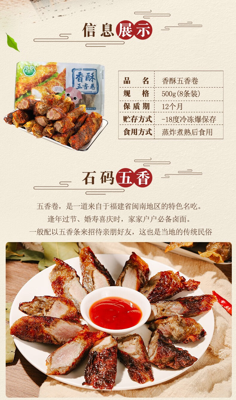 海佳晟厦门五香肉卷闽南漳州手工石码特产猪肉五香条豆皮早餐半成品商用 闽南五香卷8条/500g
