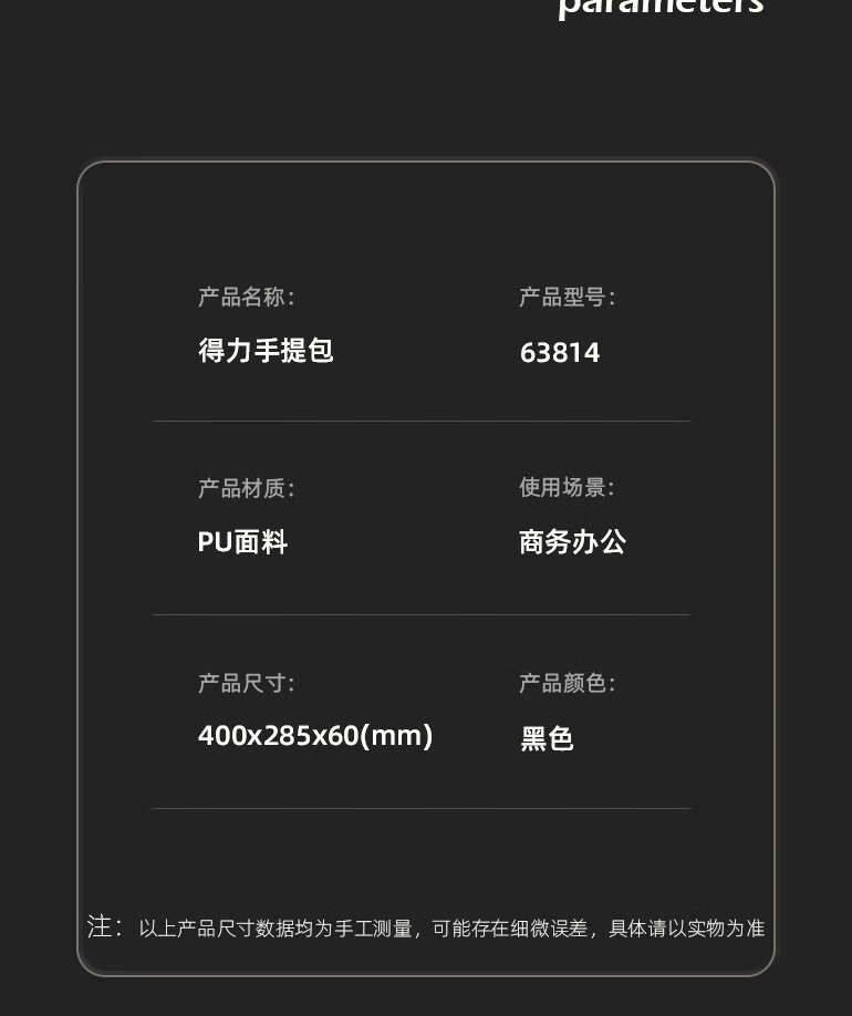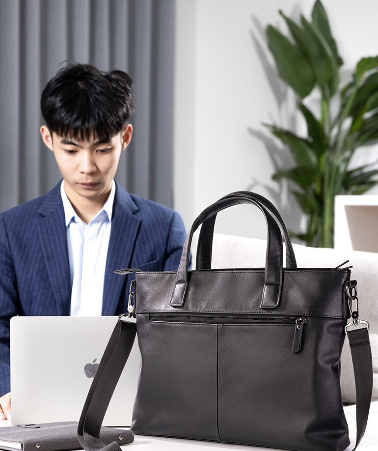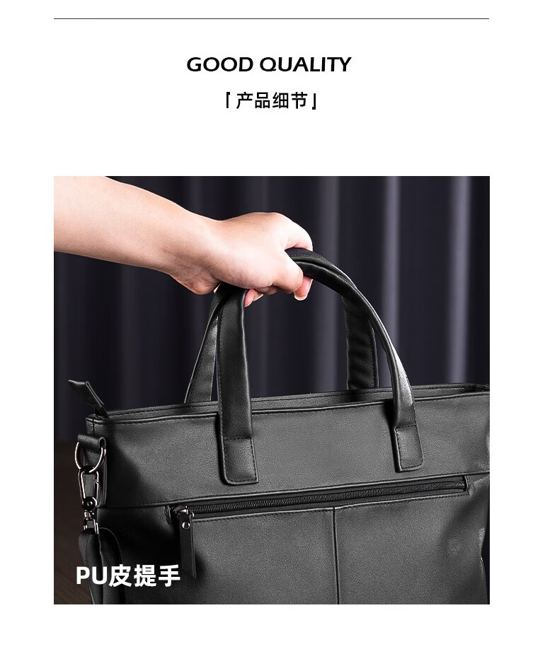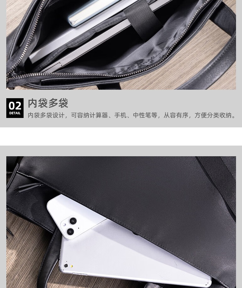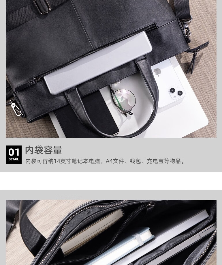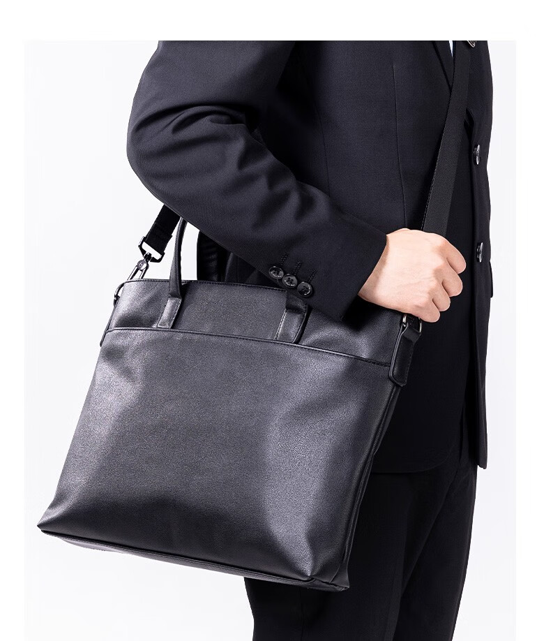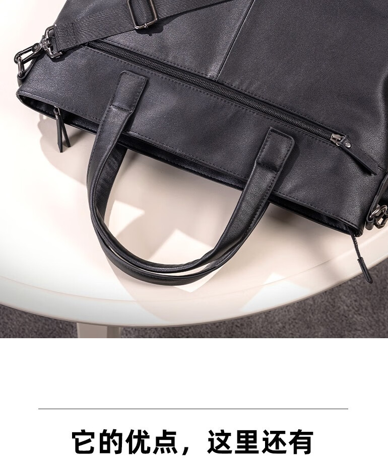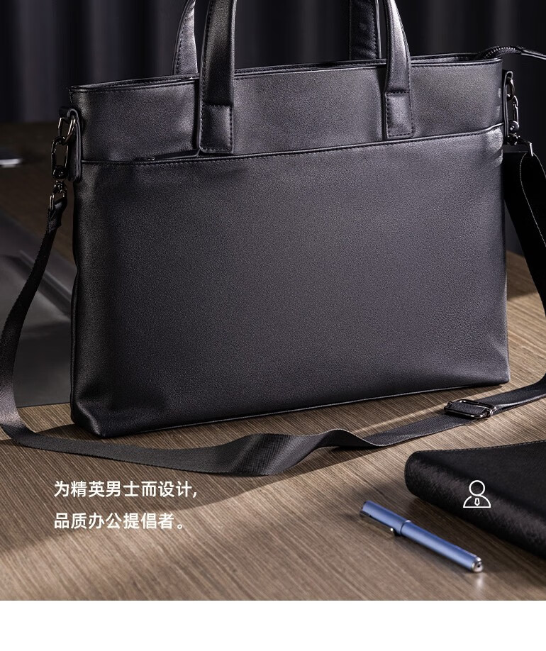 得力(deli) 皮质公手提袋//事务包 会议通勤公文包 商务办公电脑公文包 从容收纳 黑色单个 63757