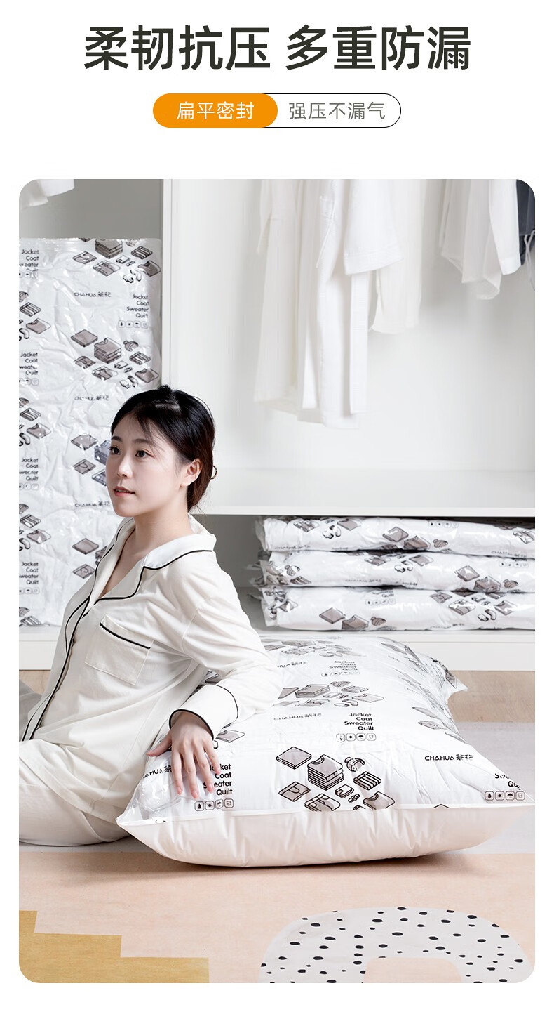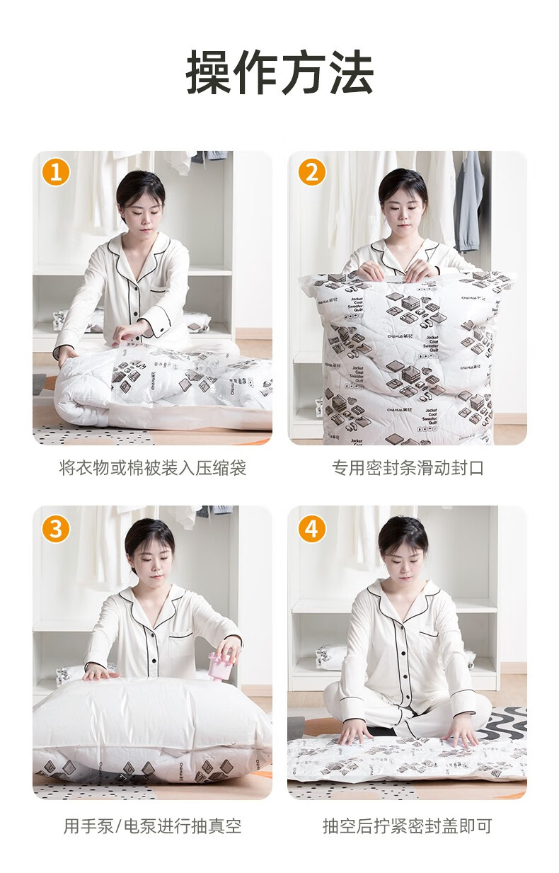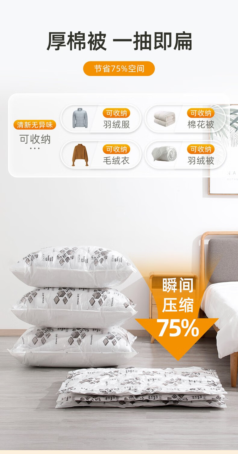 茶花(CHAHUA)衣服物抽空气真空收纳袋压缩袋家用被子棉服行李箱专用电动泵 【带电泵】大号压缩袋4个装