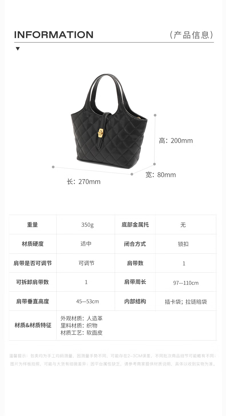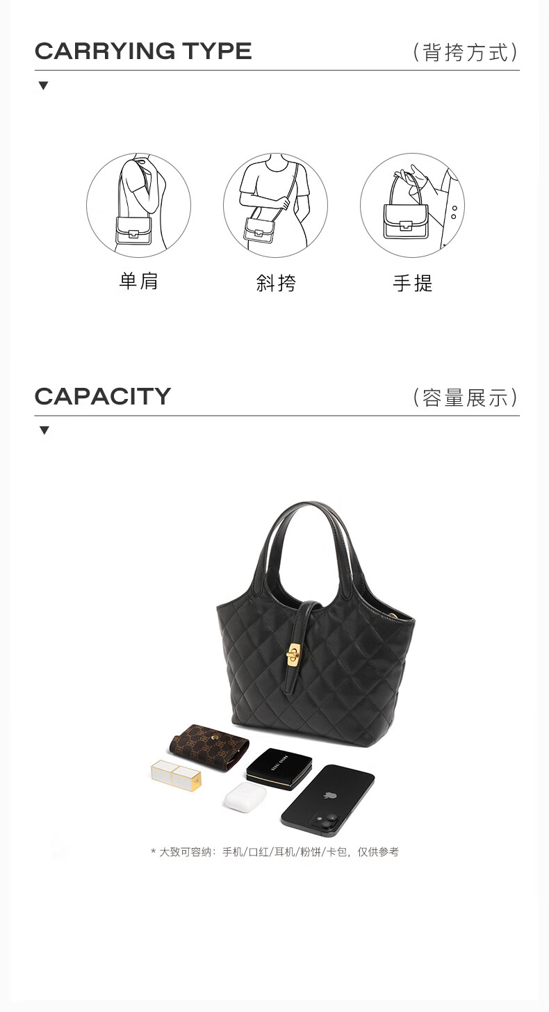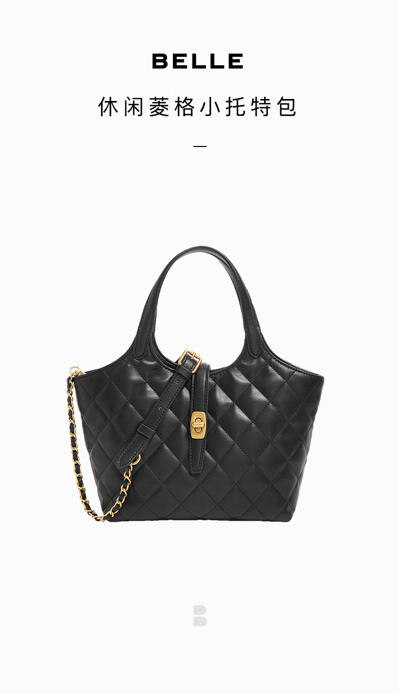 百丽2023冬季新商场同款简约休闲单肩斜挎手提托特包X6838DX3 黑色 F