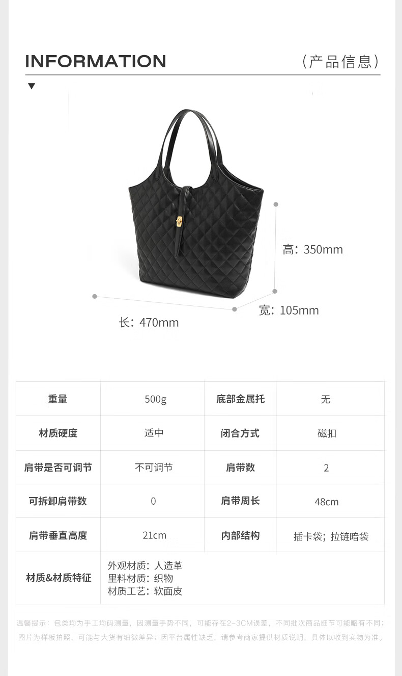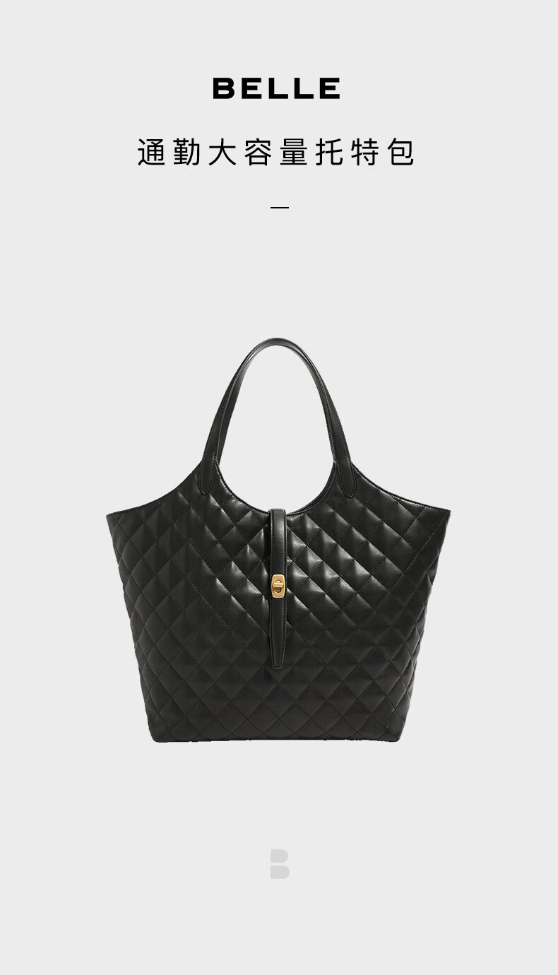 百丽2023冬季新商场同款大容量简约通勤小香风托特包X6856DX3 黑色 F
