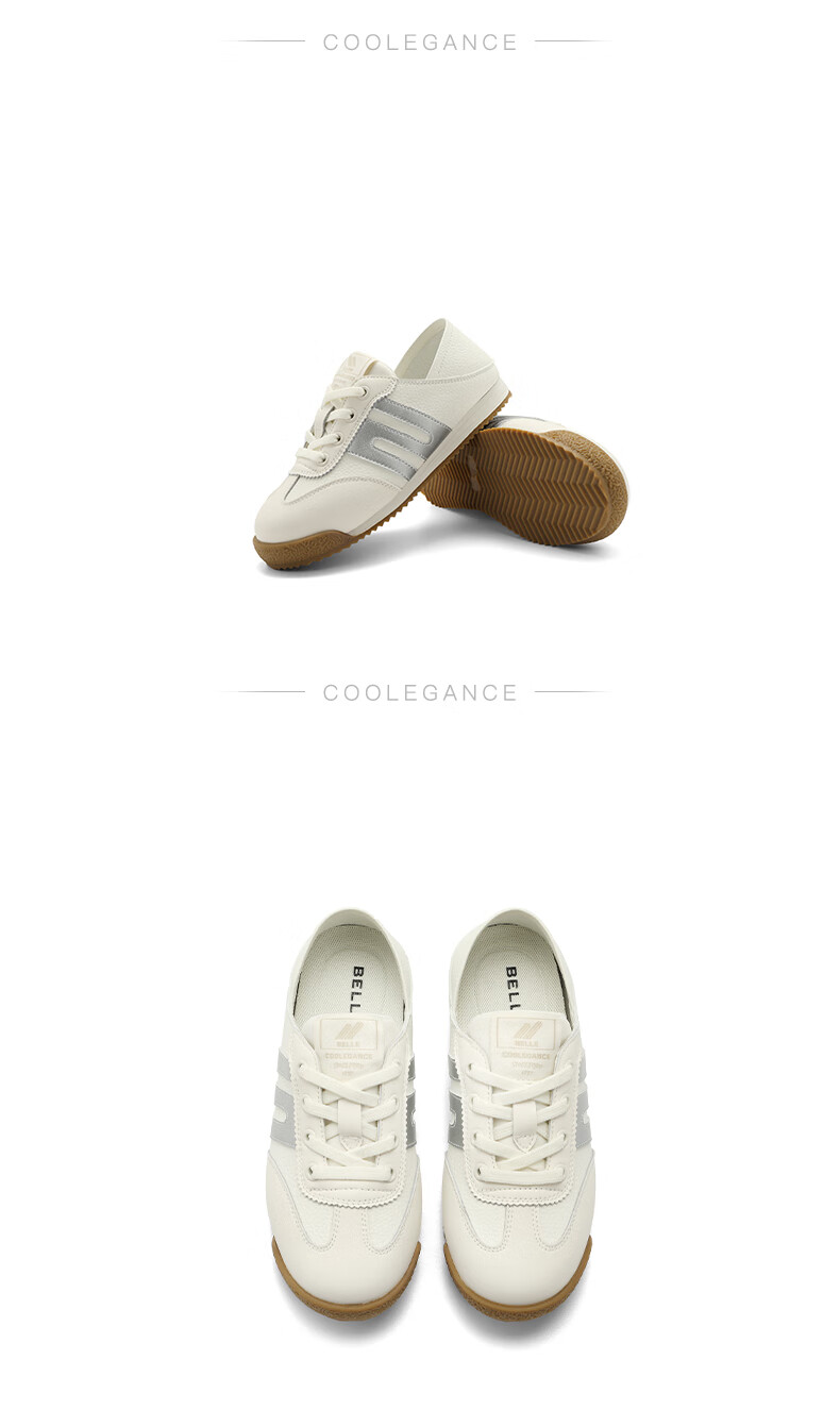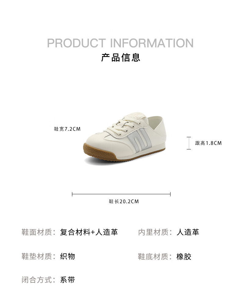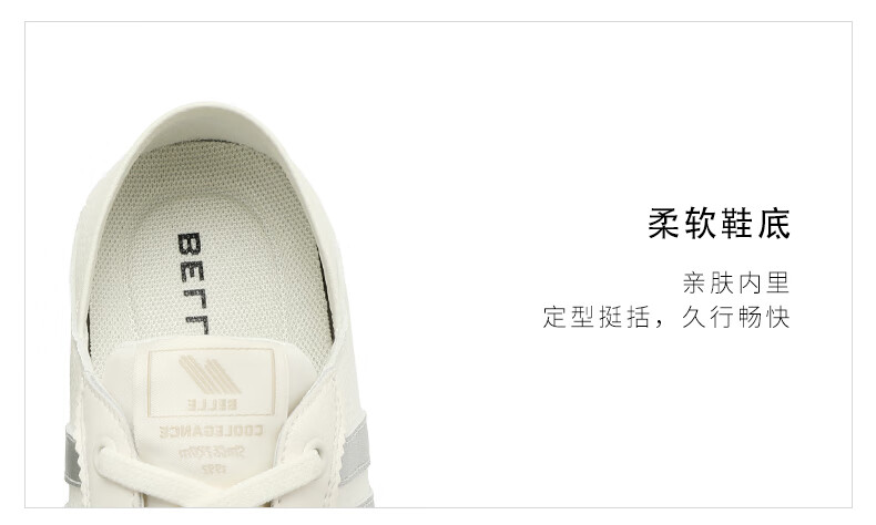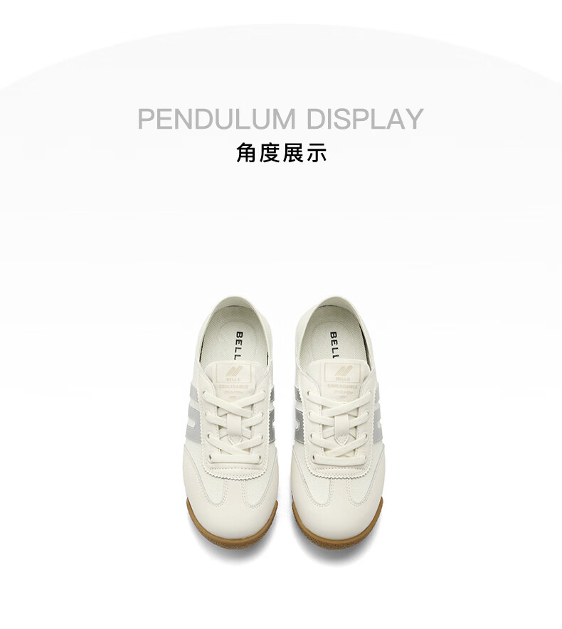 百丽童鞋复古运动徳训鞋2023秋季新商场同款轻便透气板鞋93600C83 白灰 28