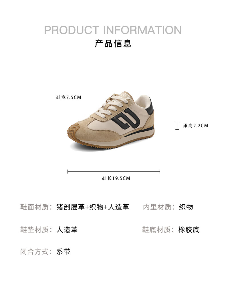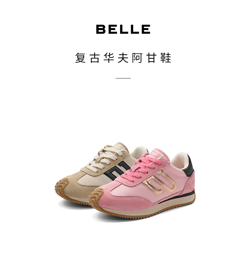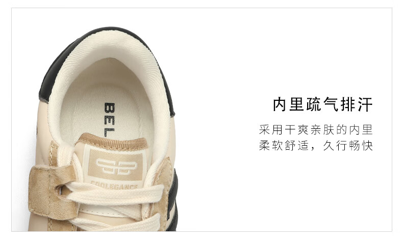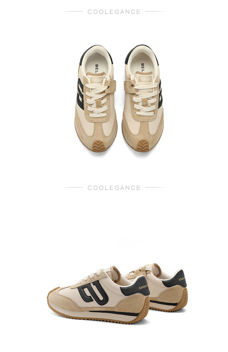 百丽童鞋拼色时尚阿甘鞋2023秋季新商场同款百搭休闲运动鞋36960C83 卡其色 31