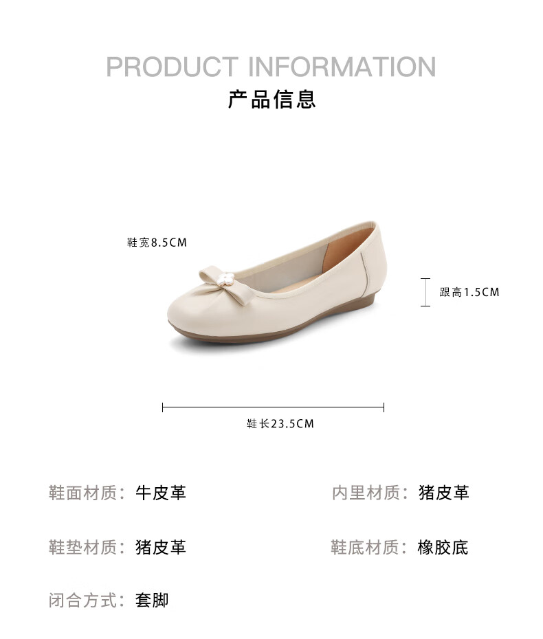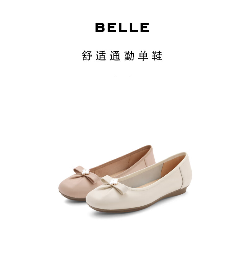 百丽晚晚风平底单鞋女2023春季新商场同款浅口鞋Z5H1DAQ3 米白色 38