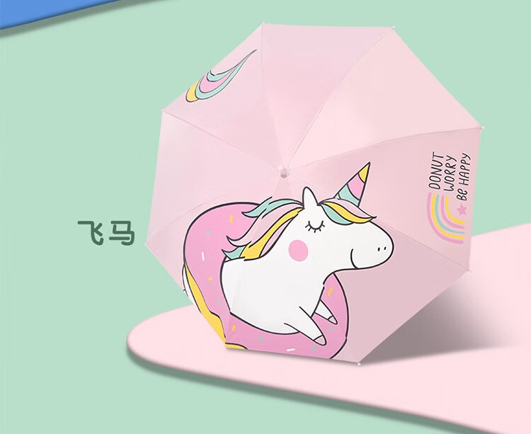天堂伞长杆直柄儿童伞小学生伞安全圆角折叠防晒晴雨伞两用男女童 飞马